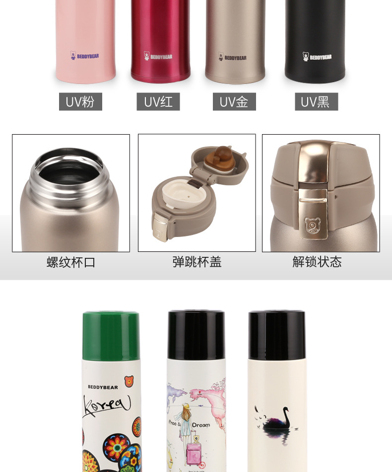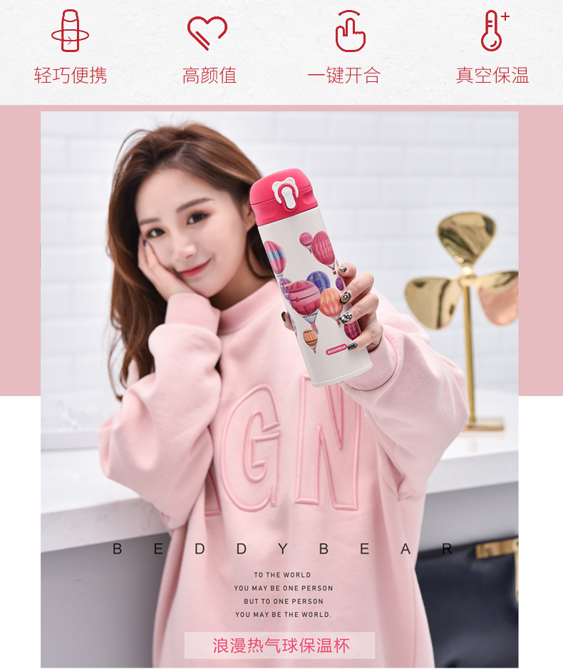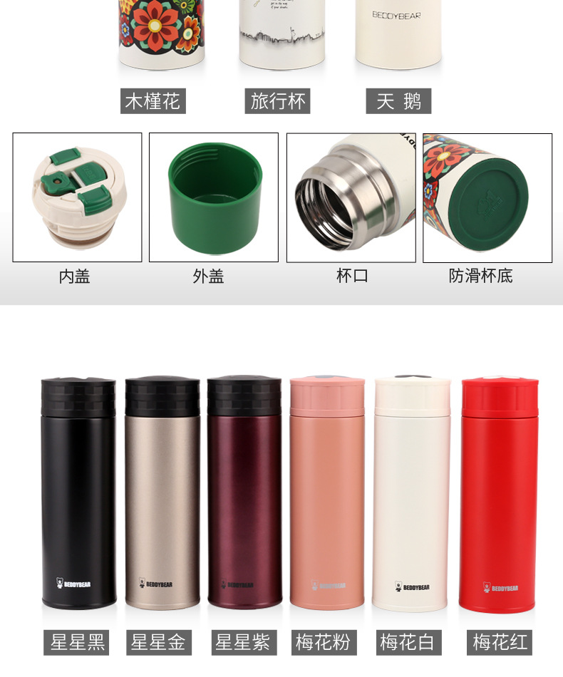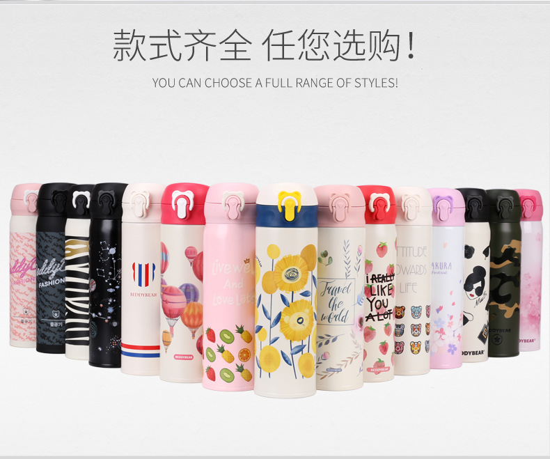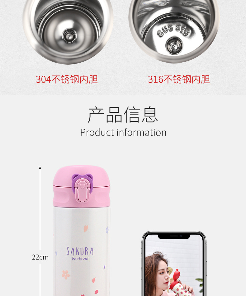 杯具熊大人樱花保温杯女士成人水杯牛油果黑白脸谱高颜值情侣直饮