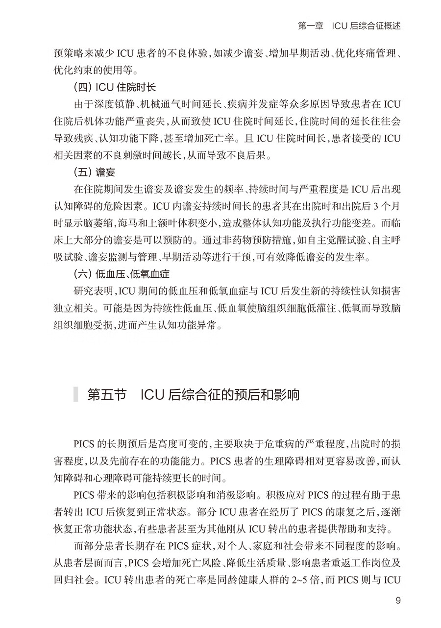 本书读者对象为临床医务工作者和医学院校师生。ICU后综合征(post-intensive care syndrome,PICS)是指危重症患者转出ICU后,在认知、心理、生理方面新出现或加重的一系列功能障碍,是ICU转出患者常见的并发症之一,在转出后3个月发生率*高,30%-80%的ICU转出患者有认知功能障碍,且不能恢复到入住ICU前的水平,10%-50%的ICU转出患者会经历抑郁、焦虑、PTSD等心理障碍,50%-70%的ICU转出患者一年后仍存在日常生活能力受限。本书通过整合PICS干预及康复方案,并重点阐述实施过程的难点和关键技术,使其能更好地指导临床实践。 主要目录: *一章PICS的概述 *二章 PICS的评估和诊断 *三章 PICS干预及康复管理概述 *四章 PICS干预及康复管理的难点 *五章 PICS干预及康复管理的关键技术
