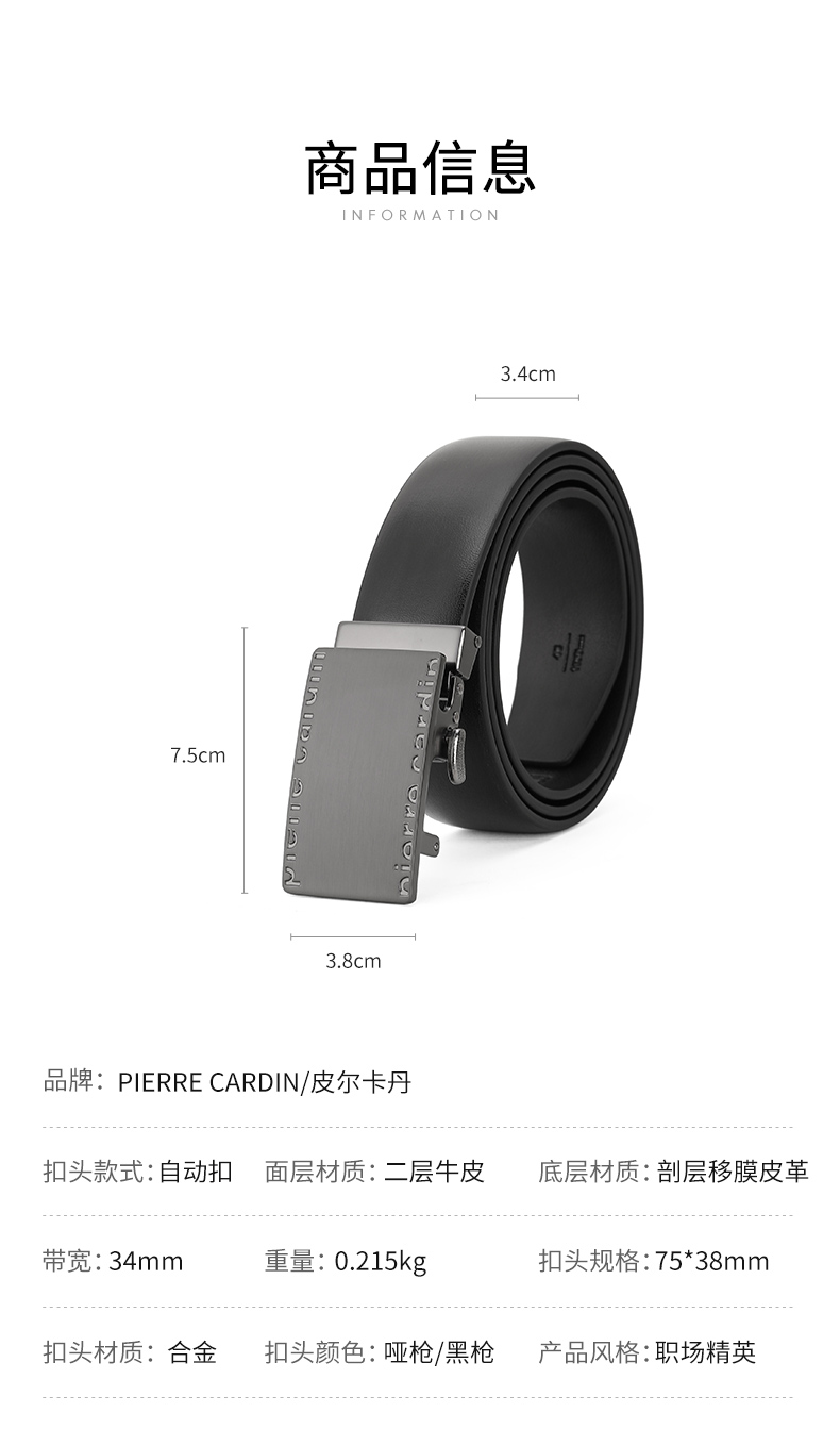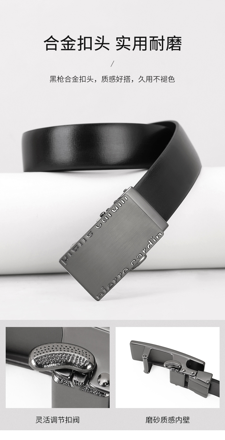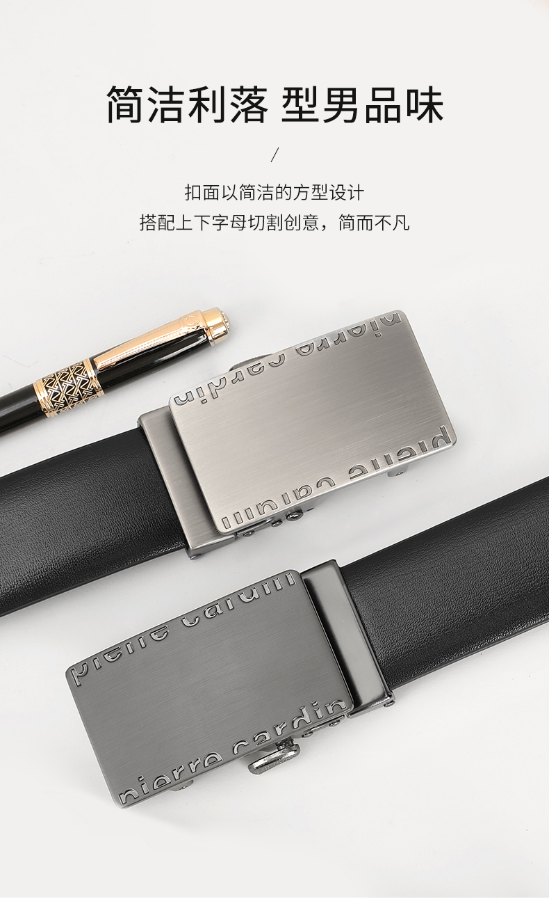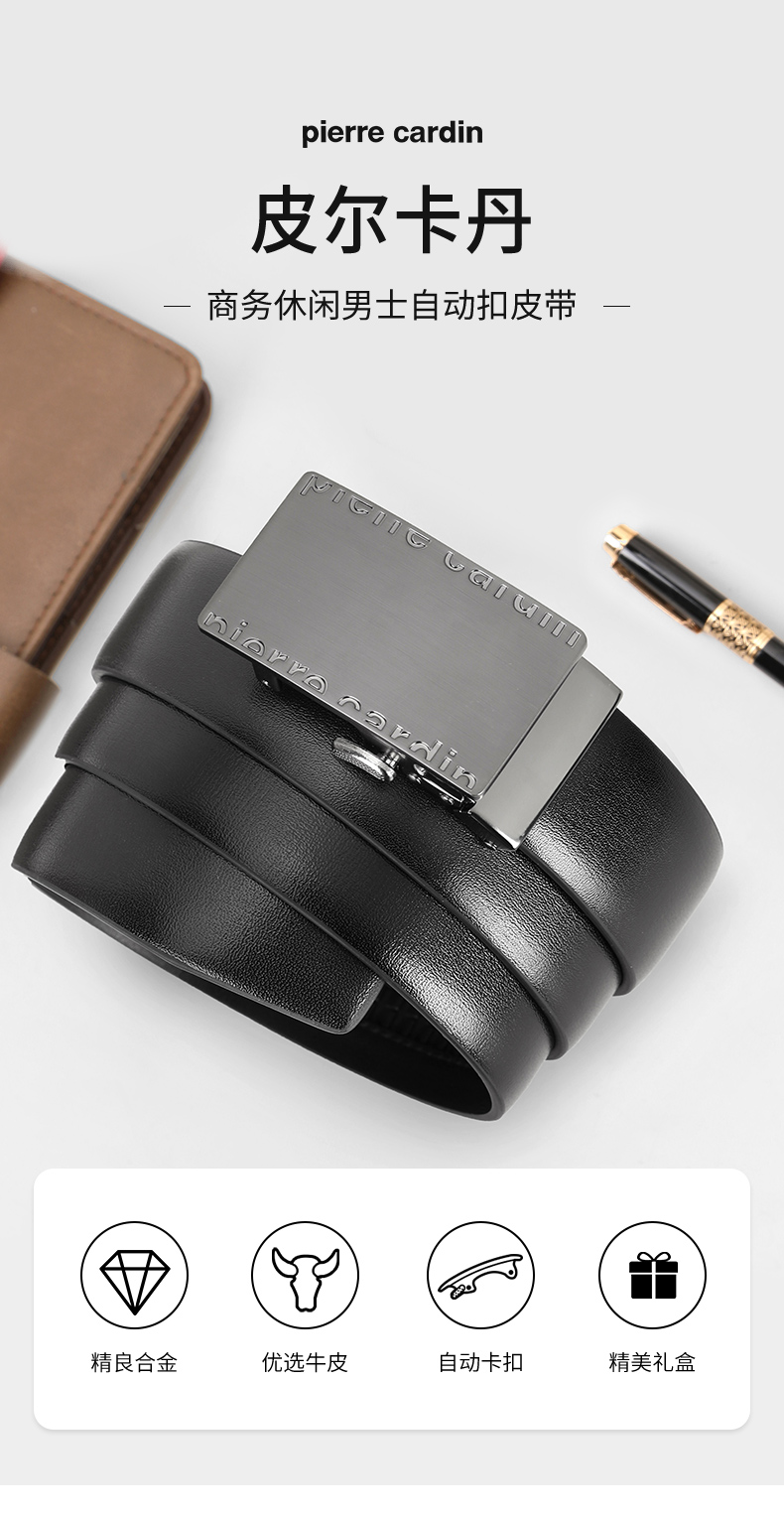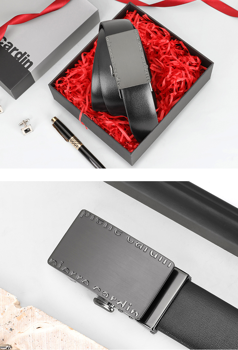 【实木礼盒包装】皮尔卡丹牛皮皮带自动扣男士腰带高档木礼盒送礼