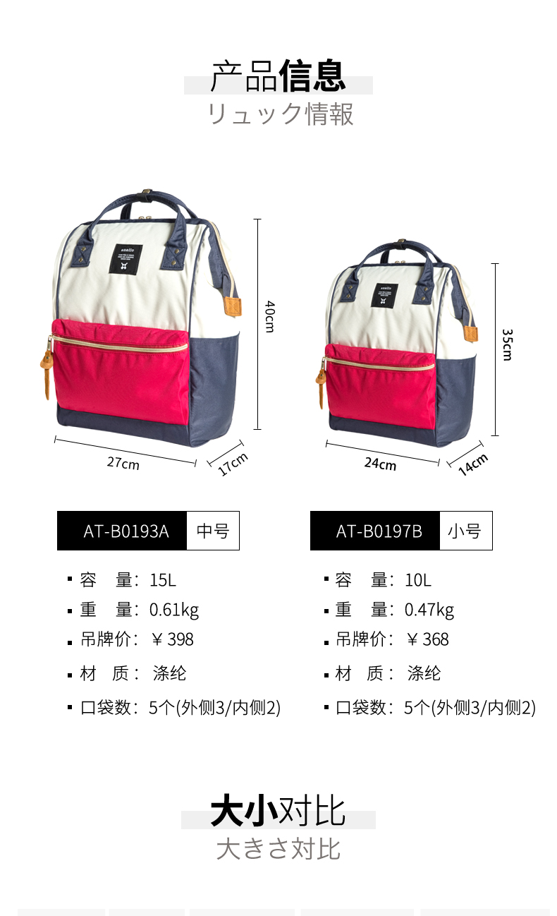 【一般贸易】anello经典款式双肩包深橙色B0197B 小号