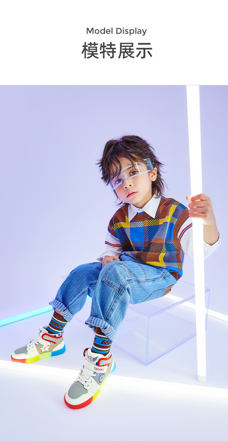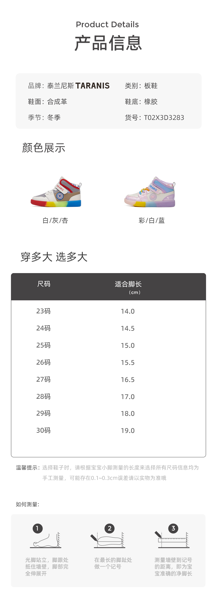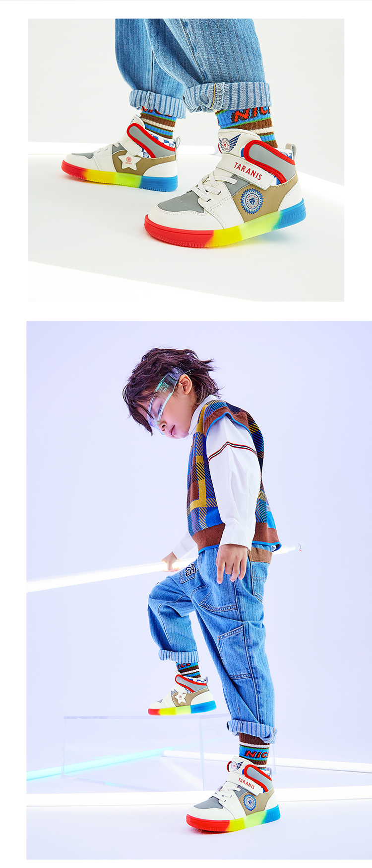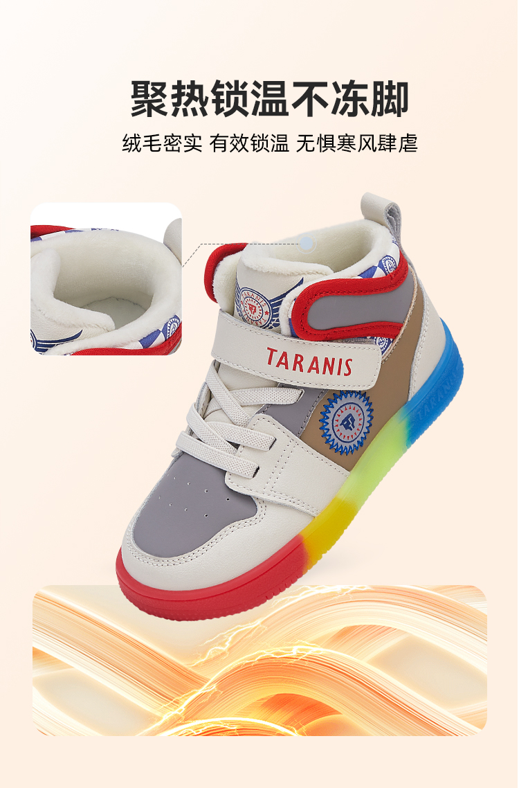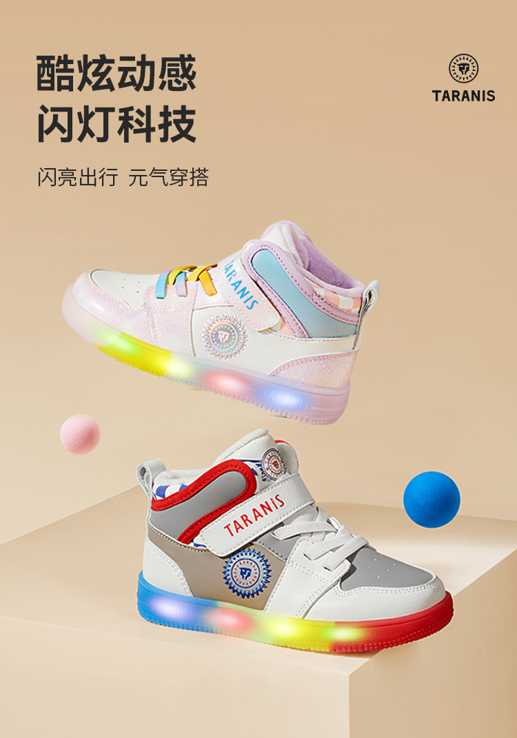 泰兰尼斯小童段冬款加绒保暖炫酷闪灯鞋中帮运动鞋T02X3D3283