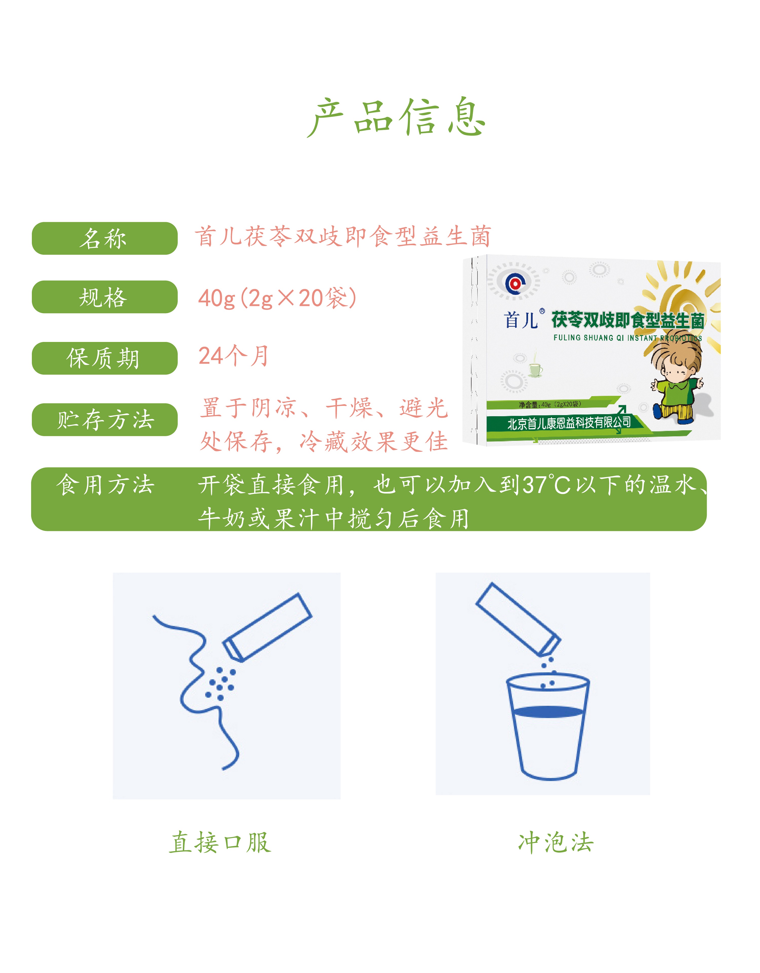 首儿 茯苓双歧即食型益生菌 40g(2g/袋x20袋)