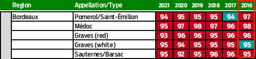 2016 年份:波尔多大年,获 WE 98、RP 97 分肯定;
