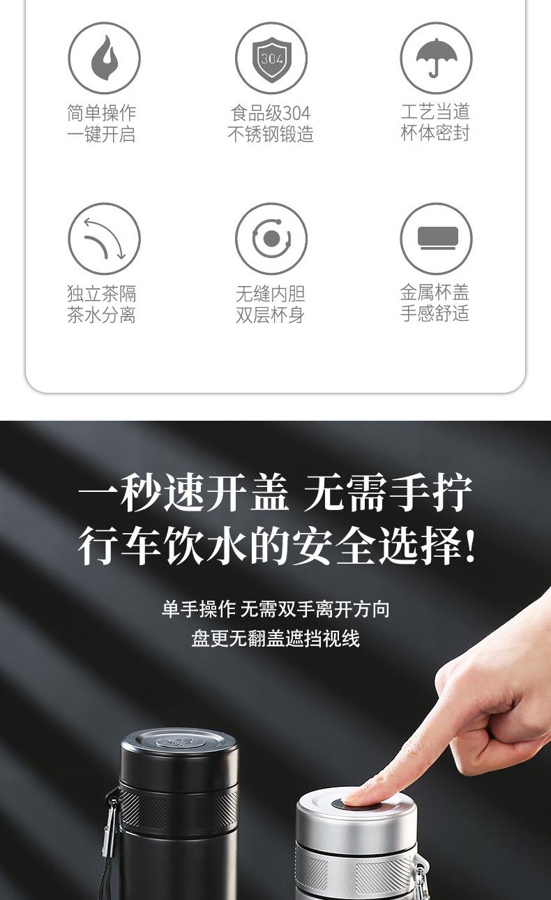 一键开盖速开杯茶水分离杯玻璃杯高硼硅商务泡茶杯车载礼品杯