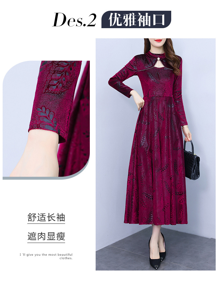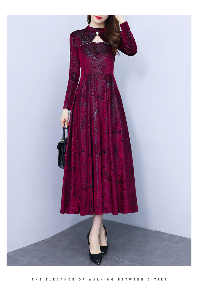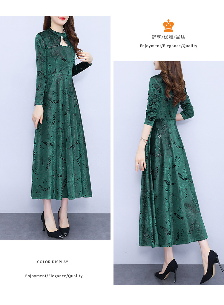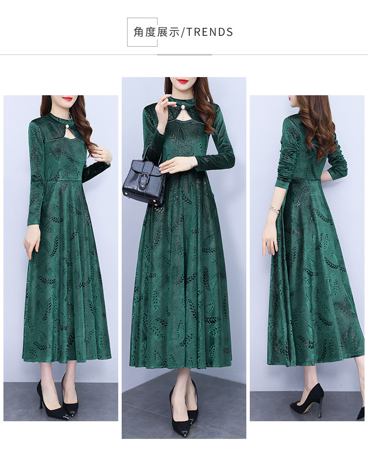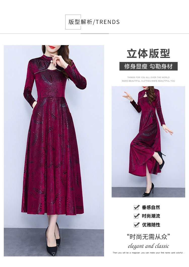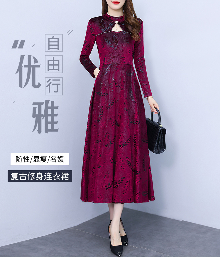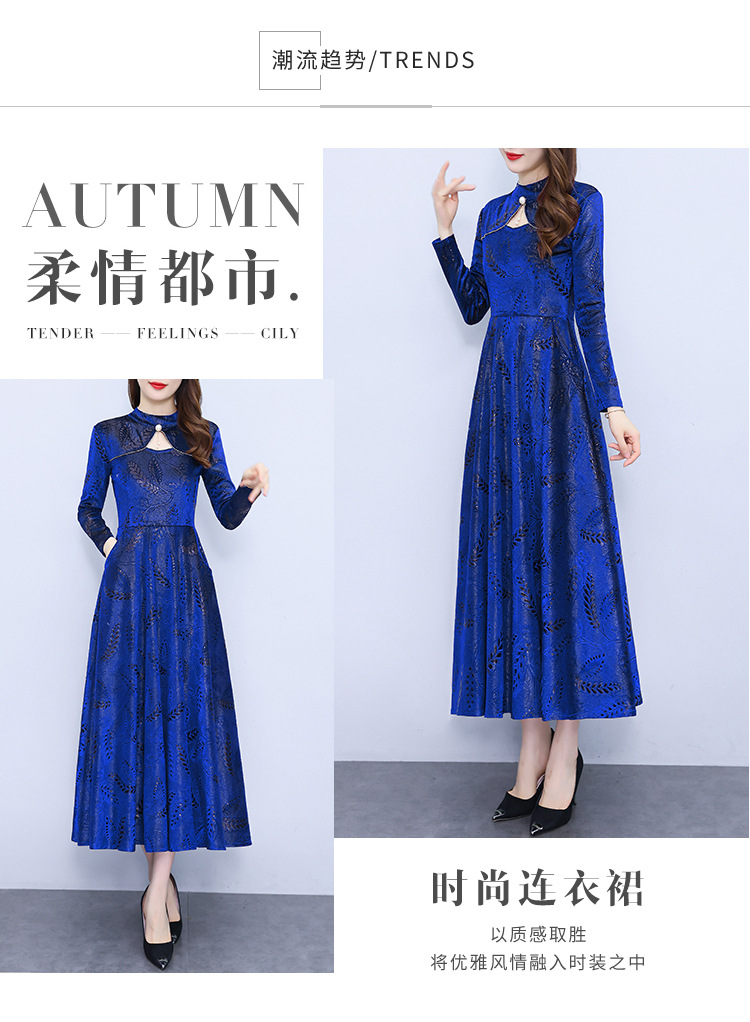 秋季新款,时尚洋气半高领显瘦减龄过膝长裙碎花连衣裙AHM-xrxm3402