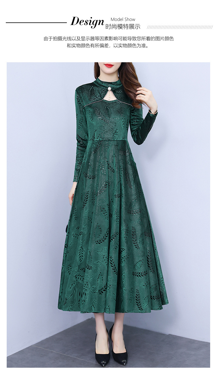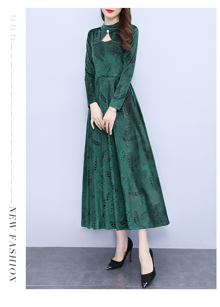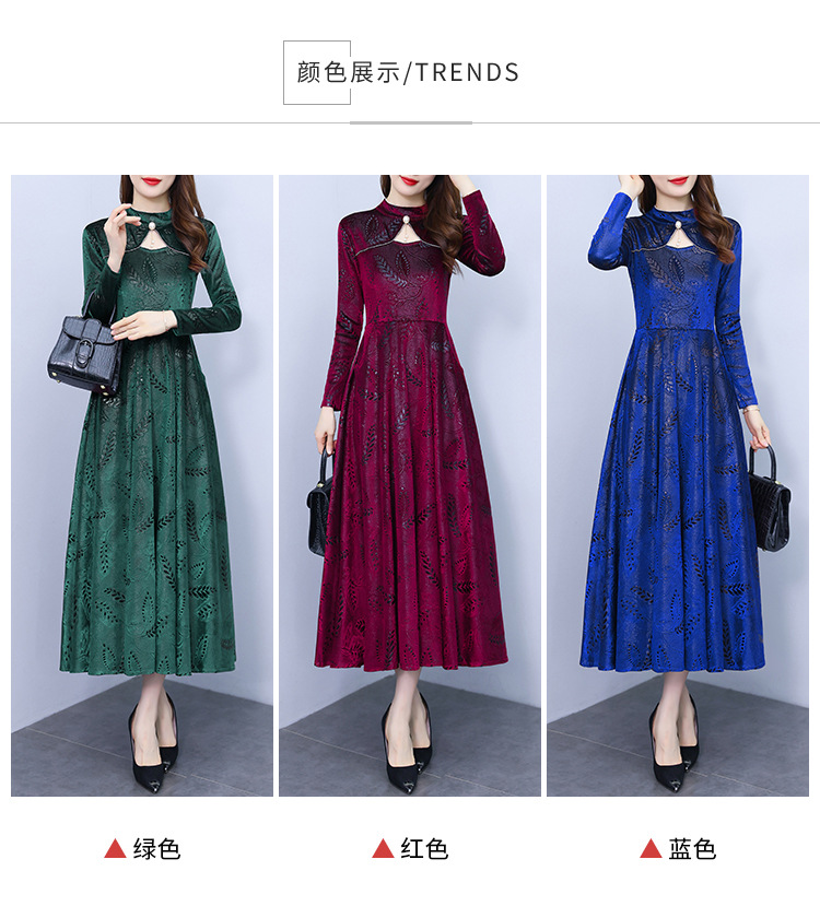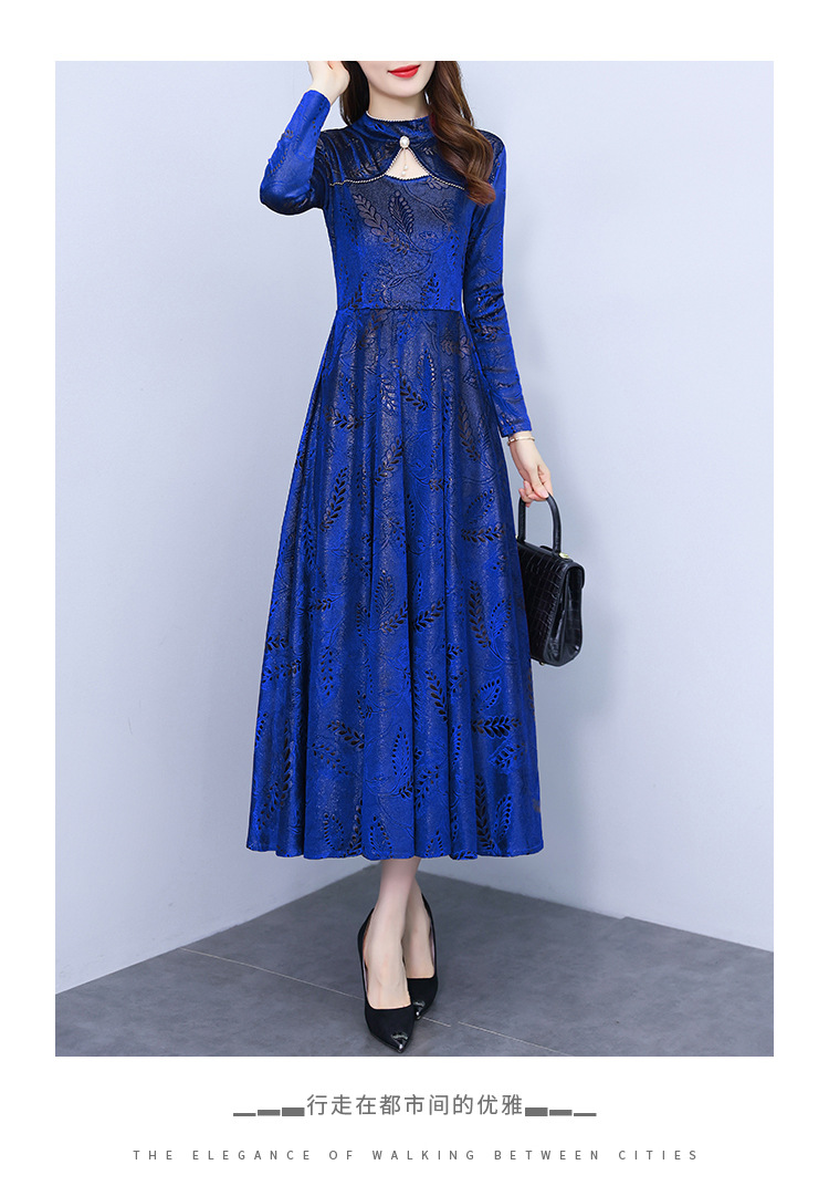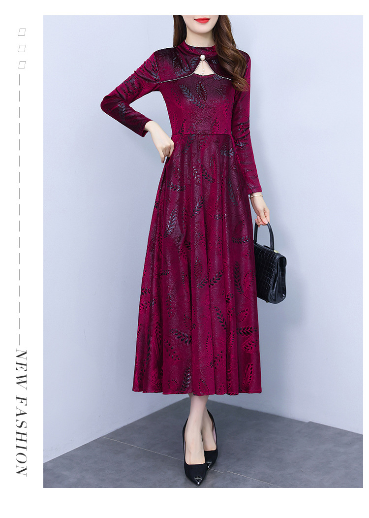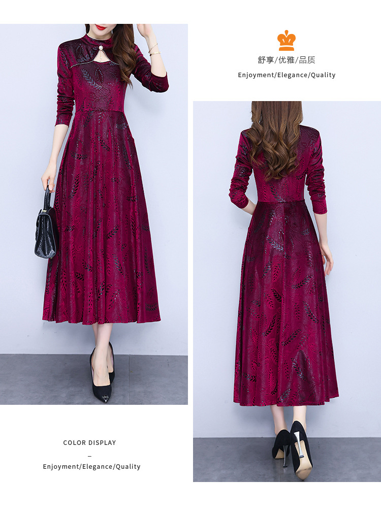 秋季新款,时尚洋气半高领显瘦减龄过膝长裙碎花连衣裙AHM-xrxm3402