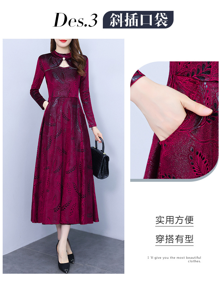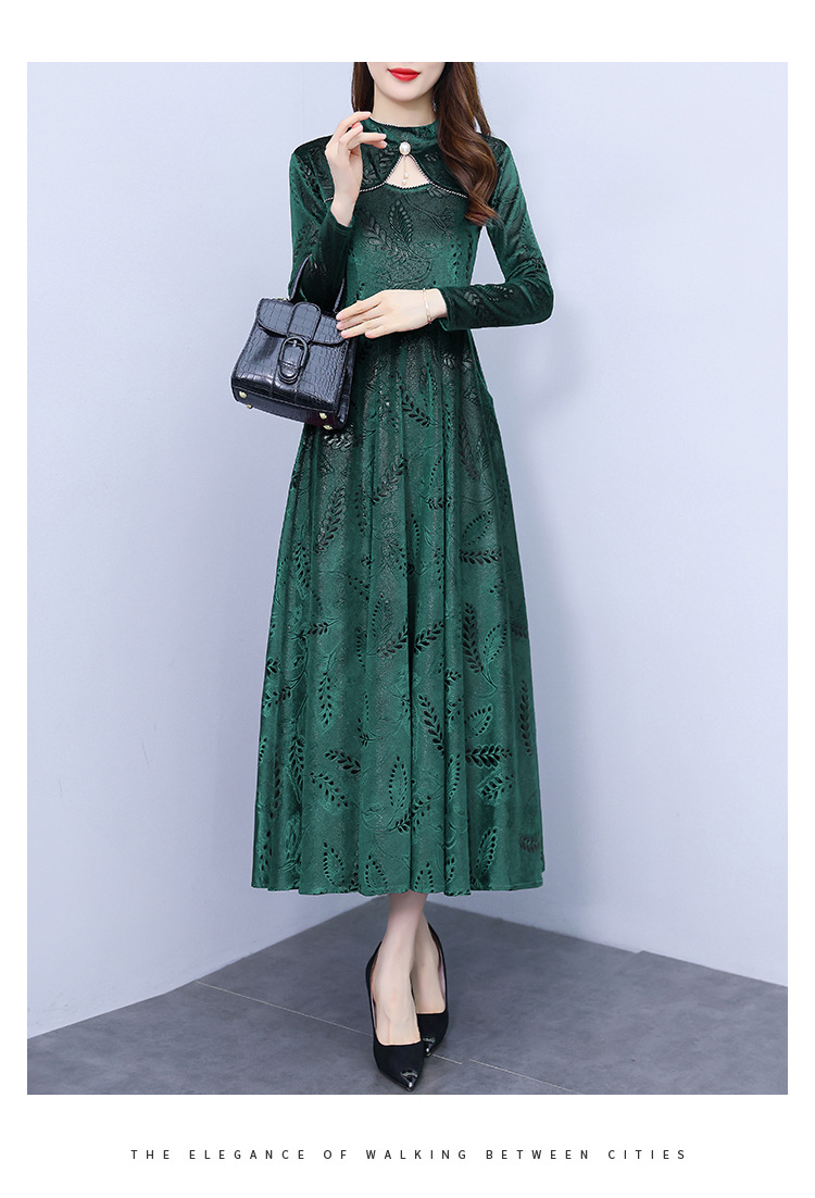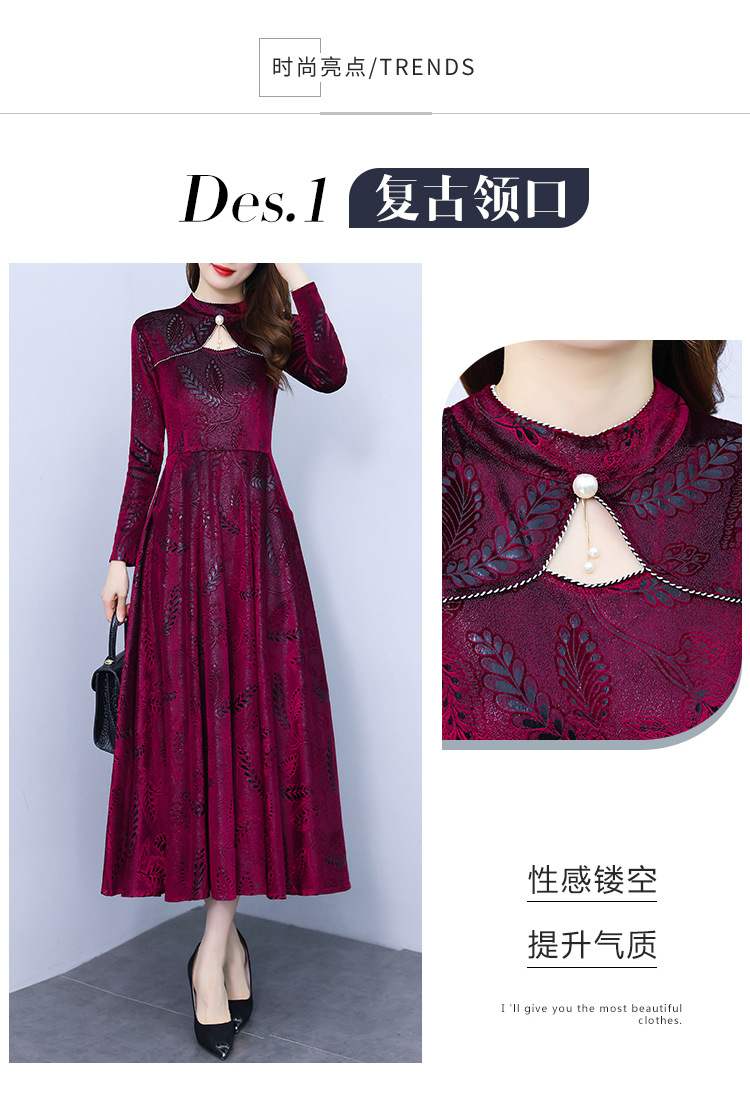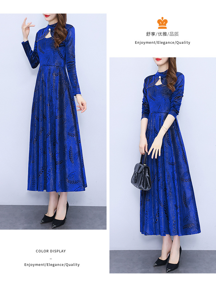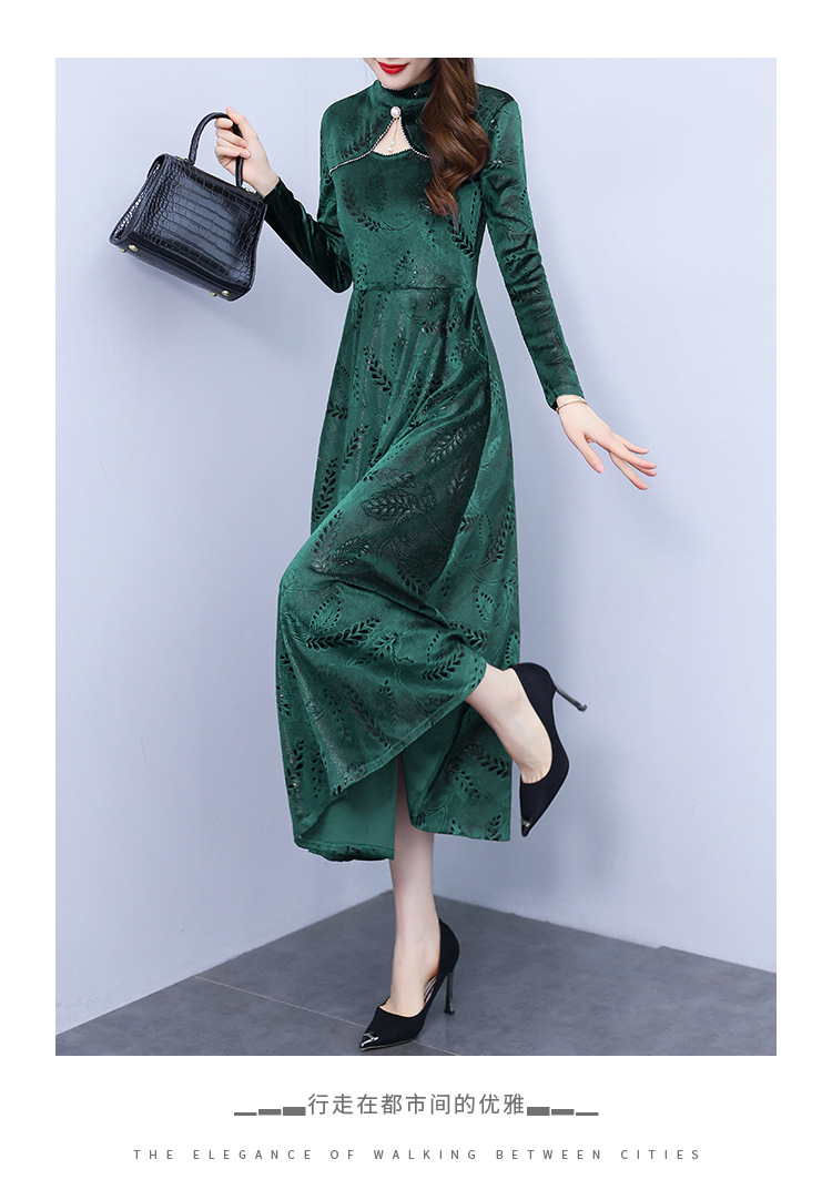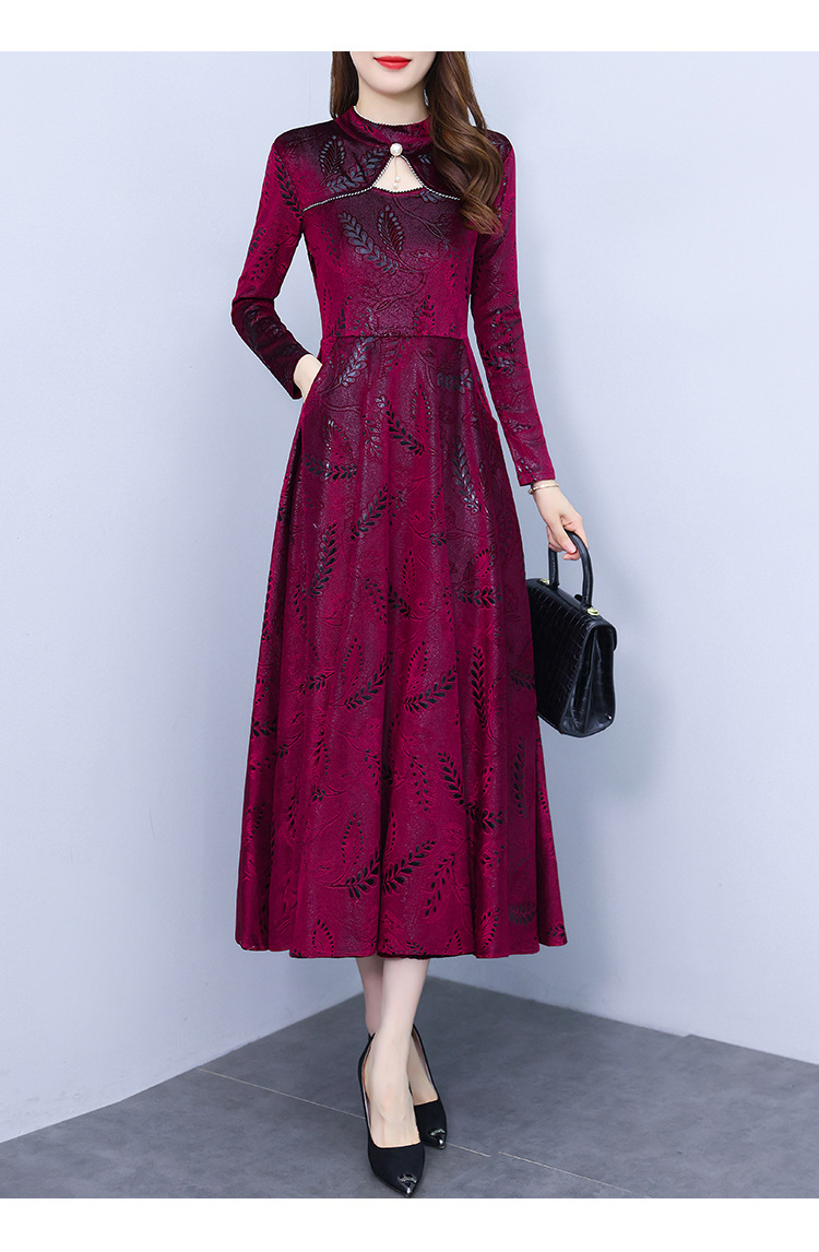 秋季新款,时尚洋气半高领显瘦减龄过膝长裙碎花连衣裙AHM-xrxm3402