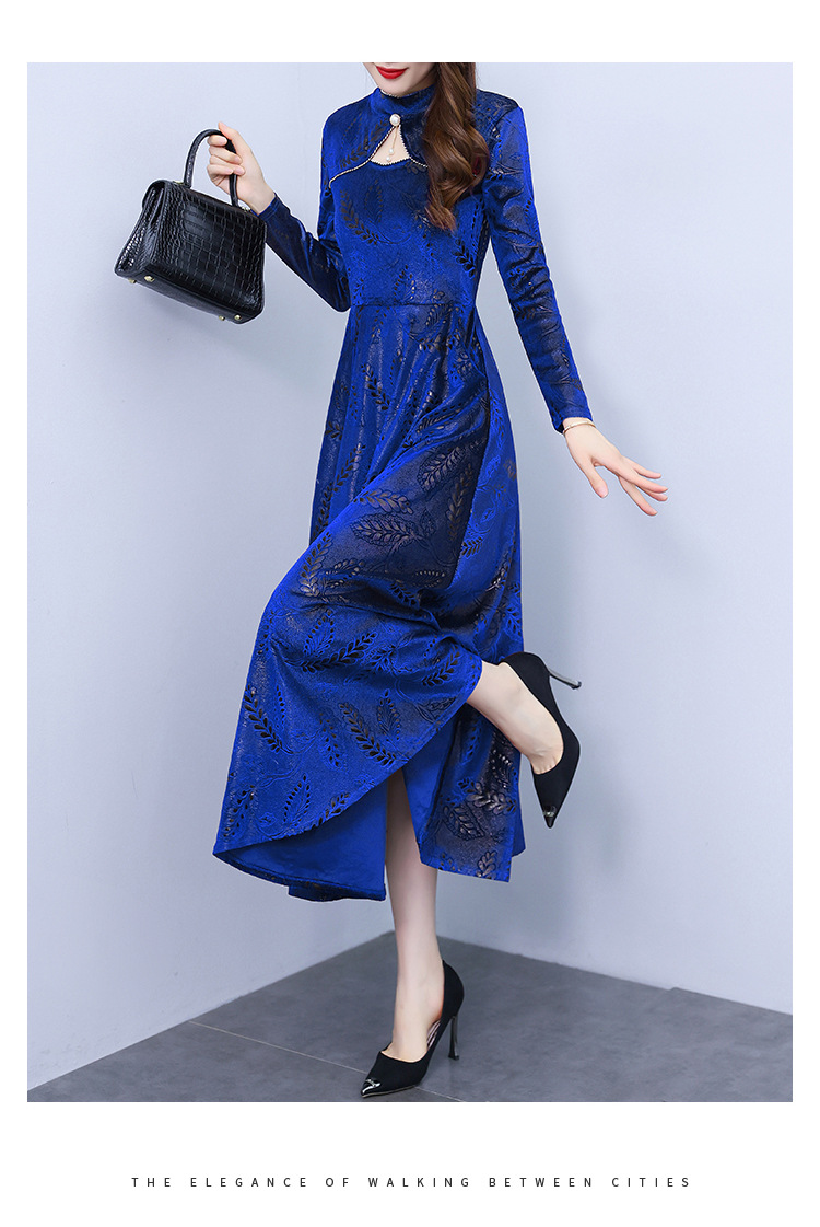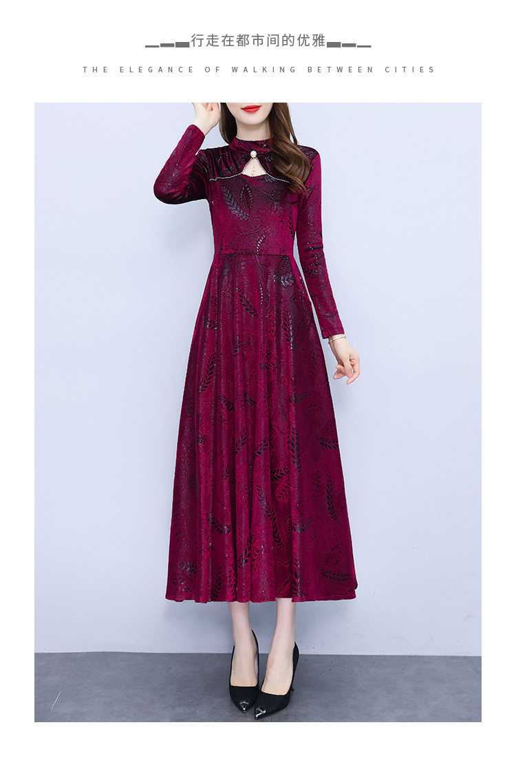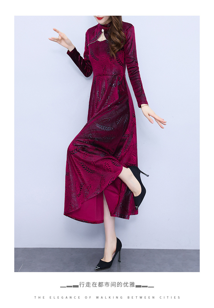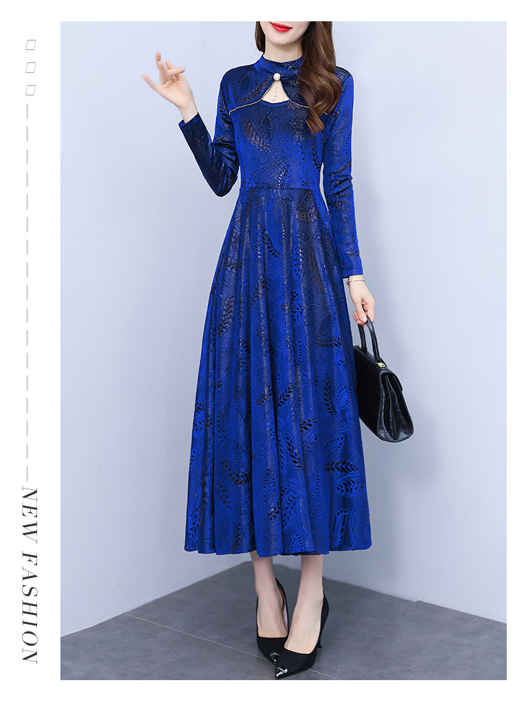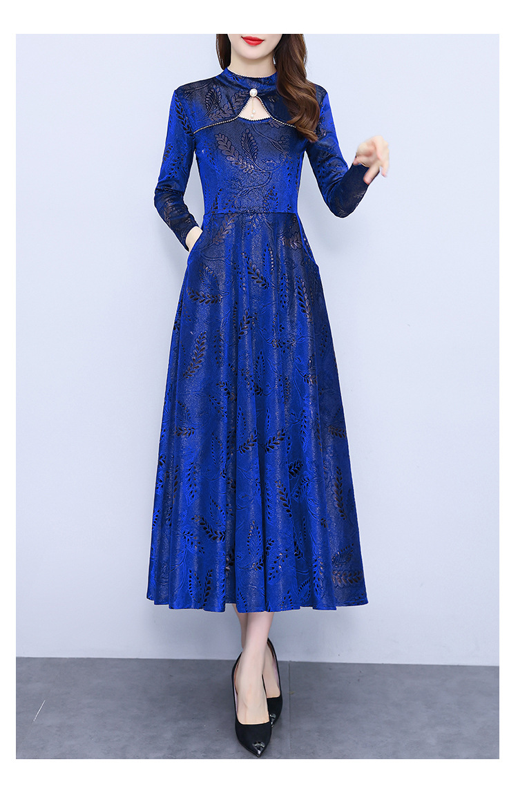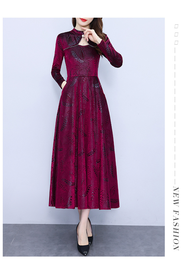 秋季新款,时尚洋气半高领显瘦减龄过膝长裙碎花连衣裙AHM-xrxm3402