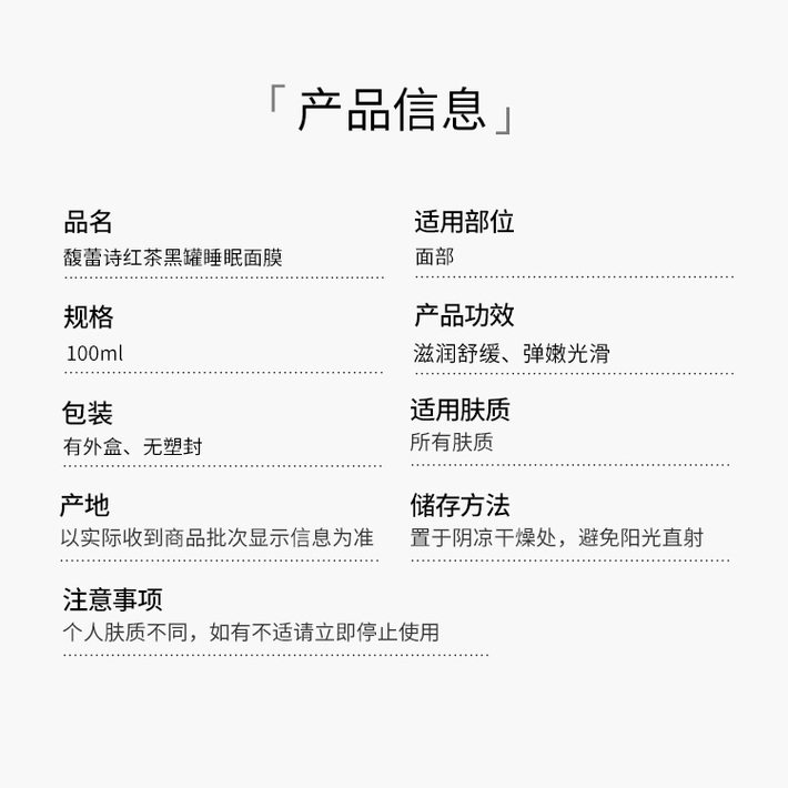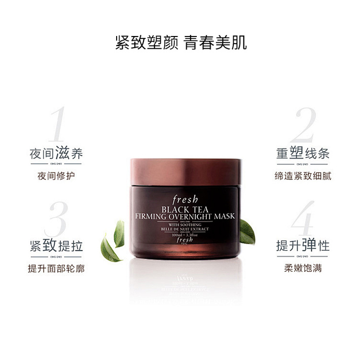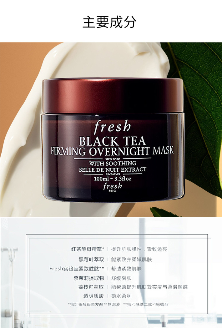 【跨境】Fresh馥蕾诗 红茶黑茶黑罐睡眠面膜100ml 新旧随机发货 塑颜紧致修护面膜夜间滋养润泽 补水免洗涂抹式面膜(效期到27年12月)