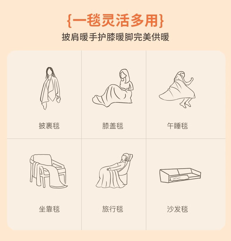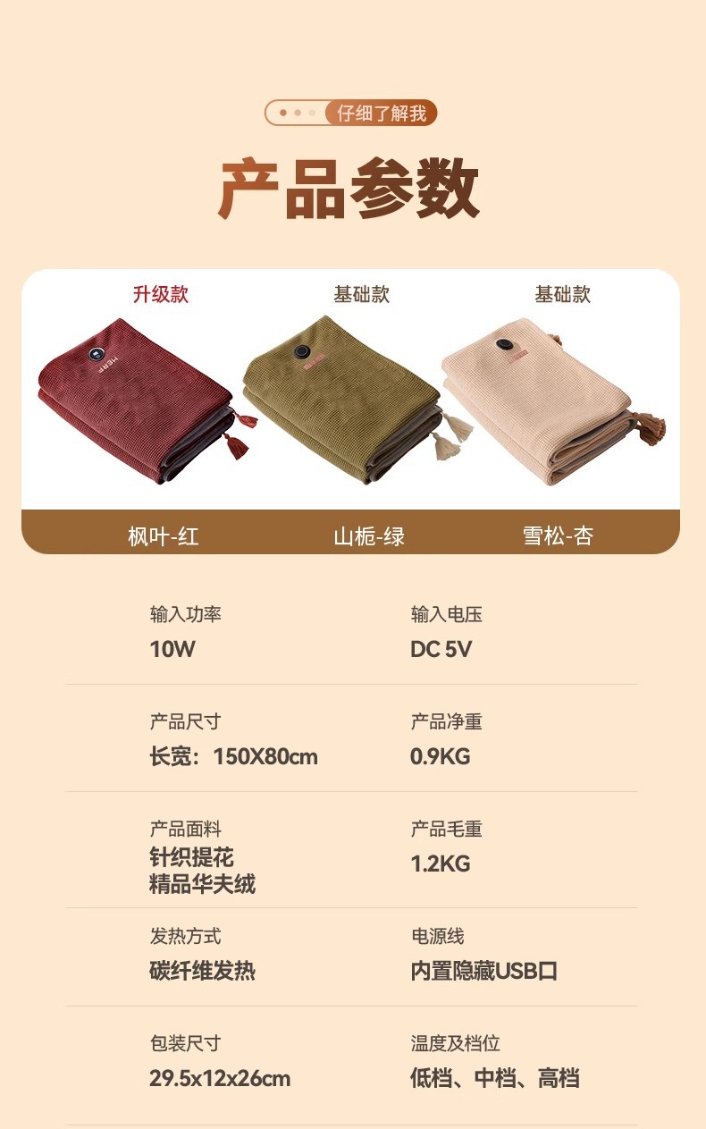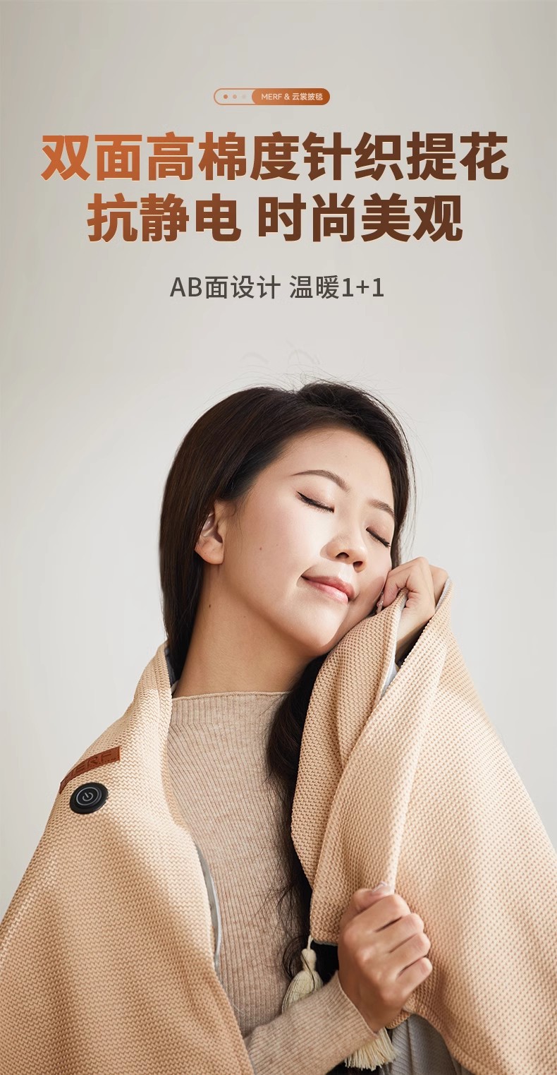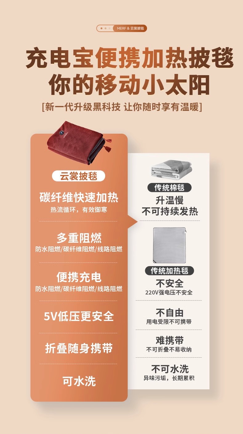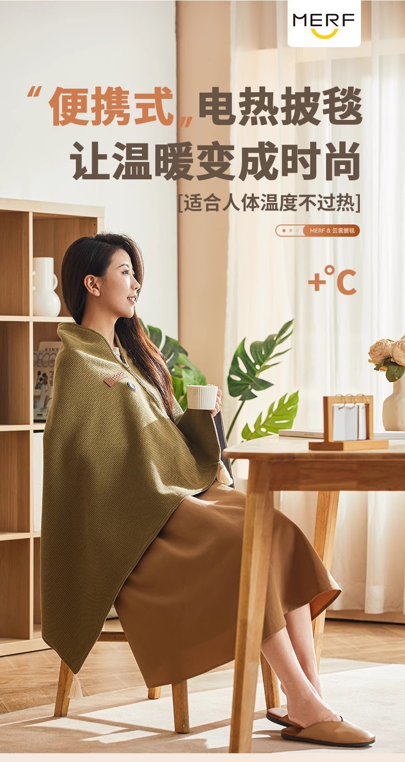 Merf云裳电热暖身毯发热暖披肩USB可水洗盖腿披肩户外家用办公室