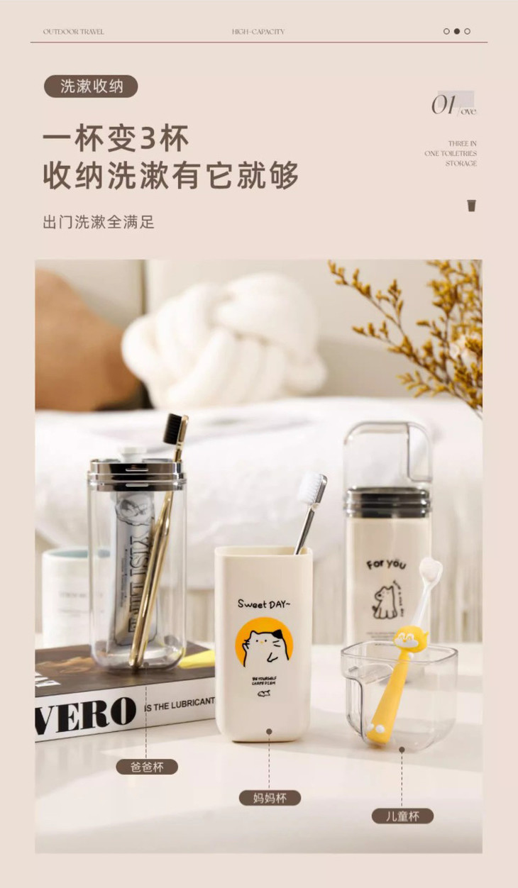 最惊艳的是它的三合一设计, 简直是 “空间魔术师”🎩 一杯能变三杯,分别是爸爸杯、妈妈杯、儿童杯, 一家人出行的洗漱杯都给安排得明明白白~ 收纳洗漱有它真的就够了, 出门洗漱的需求全满足✔️