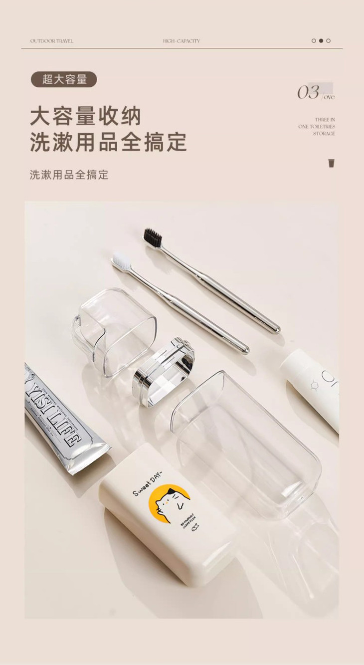 大容量收纳也是它的 “杀手锏”🔪 别看它体积小,容量可不小, 洗漱用品全搞定不在话下~牙刷、牙膏、牙线、小瓶的洗发水、沐浴露 只要不是特别大瓶的,都能妥妥收纳进去, 真的做到了 “小身材,大容量” 完美解决了旅行中洗漱用品收纳的难题💯。
