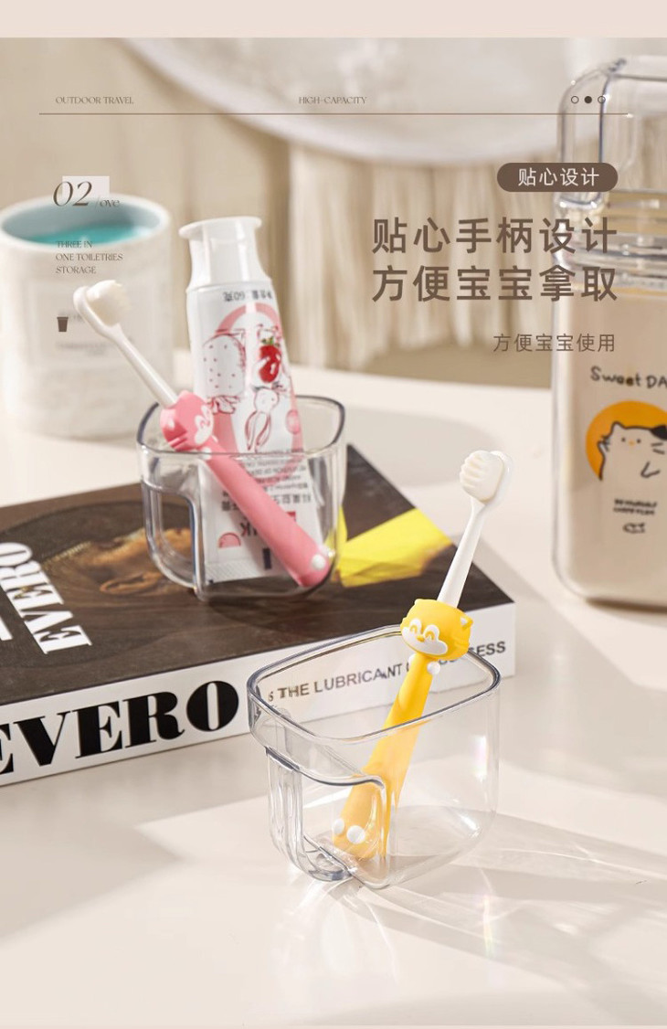 儿童杯还有贴心的手柄设计, 方便宝宝拿取使用, 带娃出行的家长们再也不用发愁 宝宝的洗漱杯不好拿啦,细节真的太到位了🥰