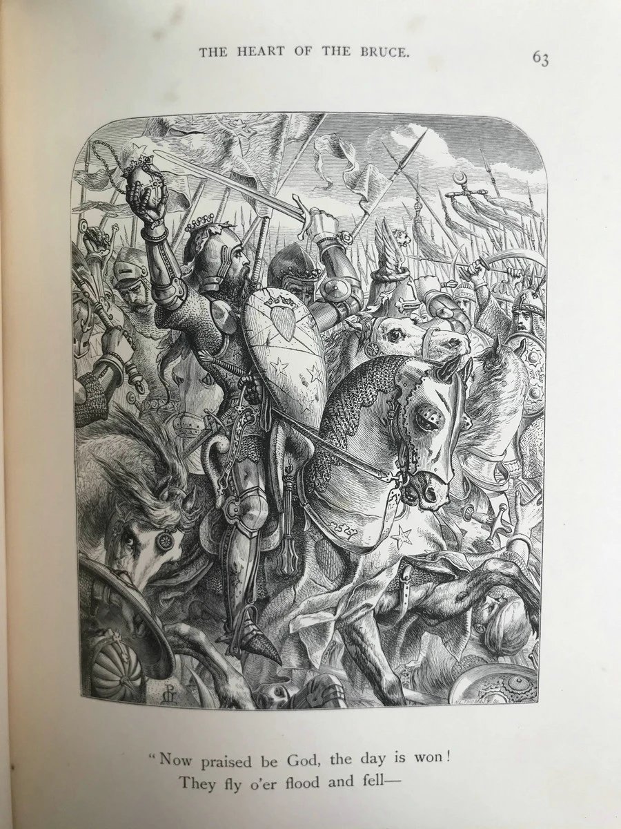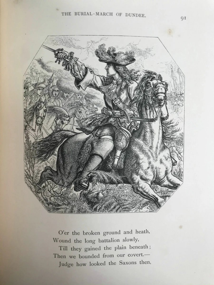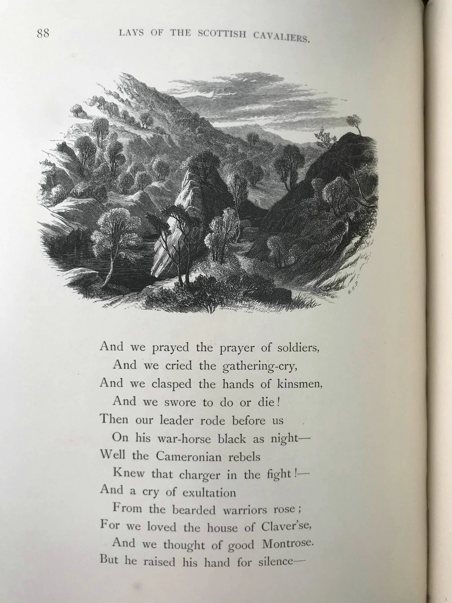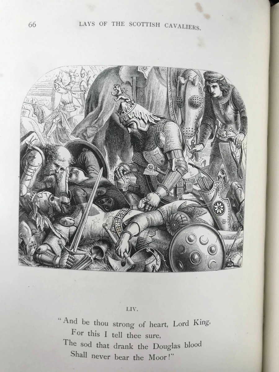 含藏书票!1863年 威廉·艾顿《苏格兰骑士短歌集》 约百幅版画插图 全真皮精装18开