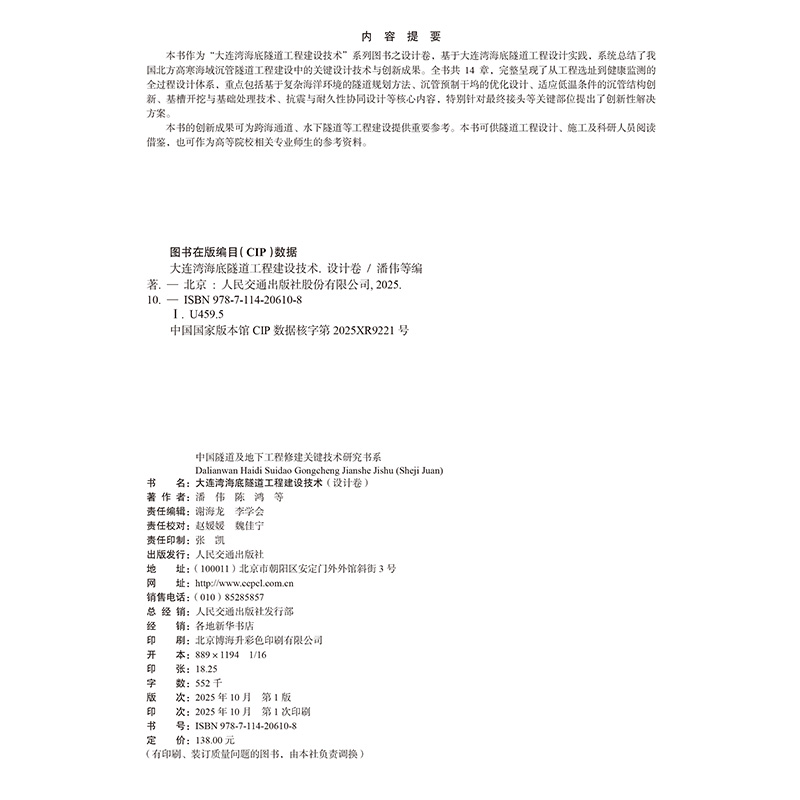 书名:大连湾海底隧道工程建设技术(设计卷)