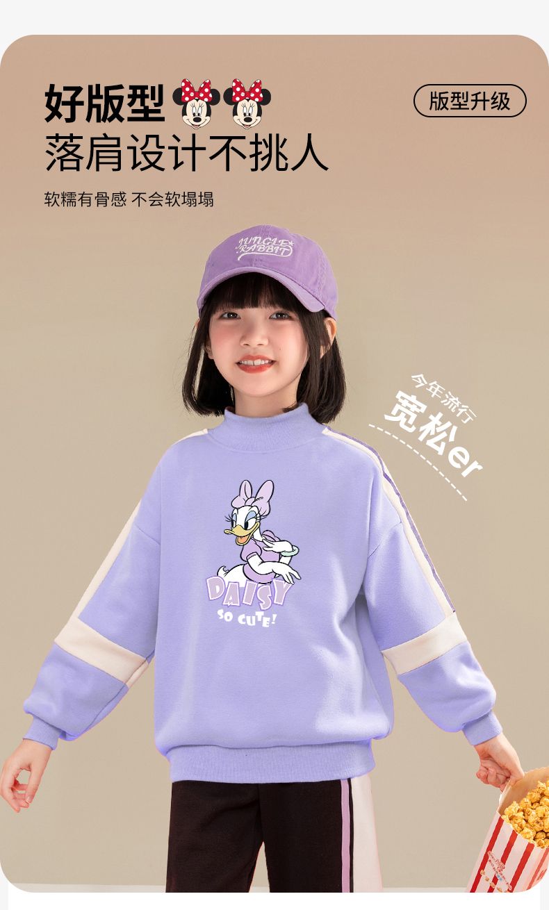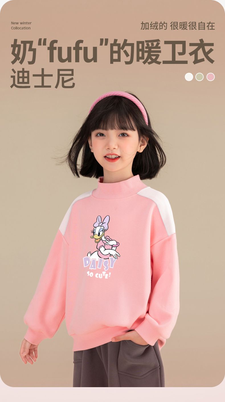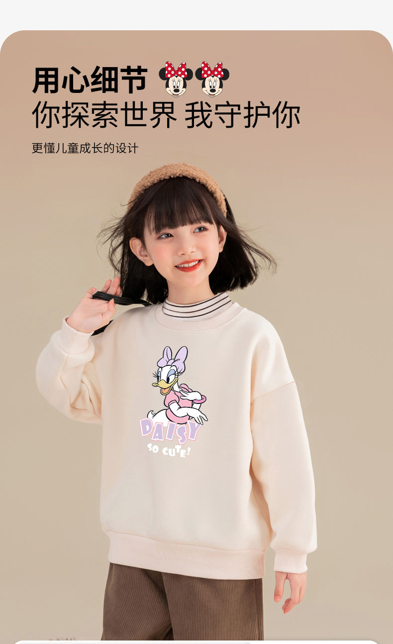 迪士尼女童加绒卫衣秋冬2023新款冬季加厚儿童上衣洋气小女孩衣服