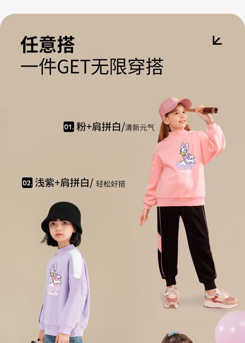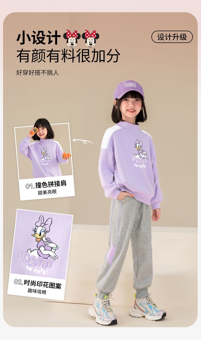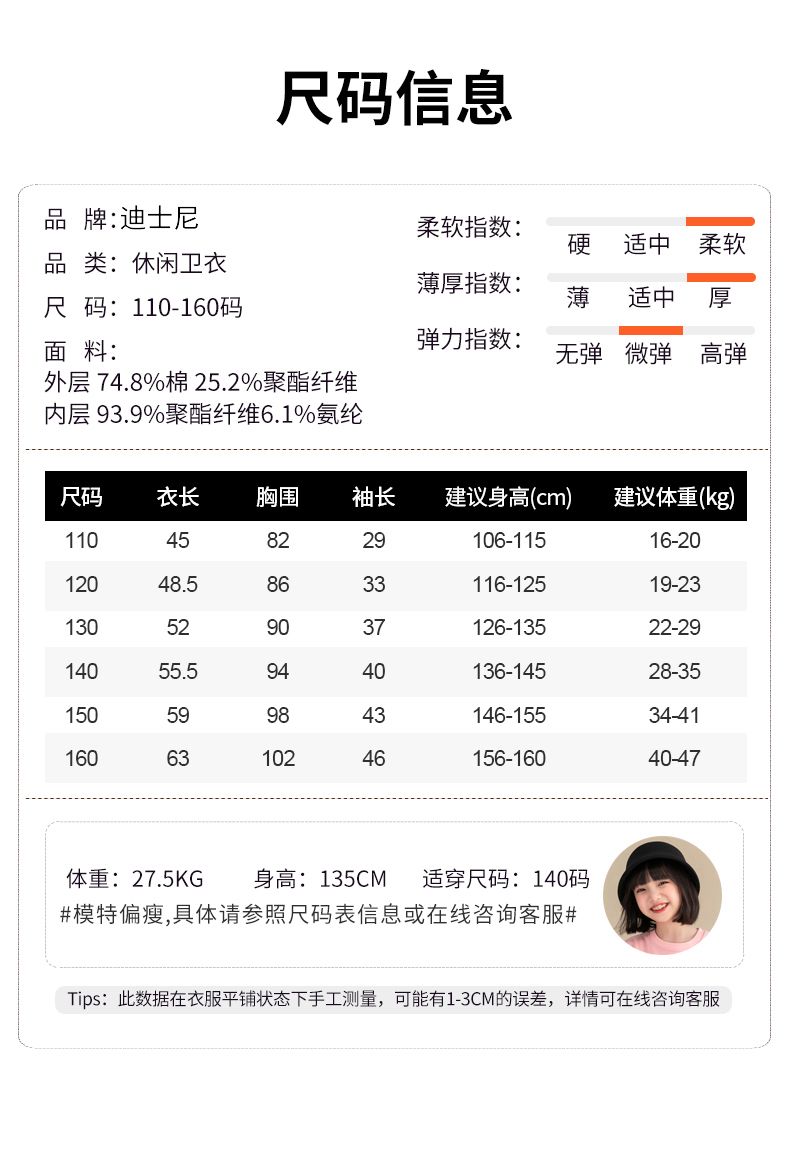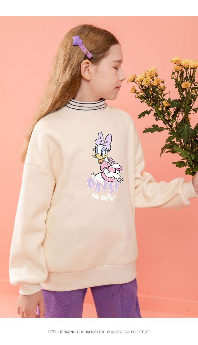 迪士尼女童加绒卫衣秋冬2023新款冬季加厚儿童上衣洋气小女孩衣服
