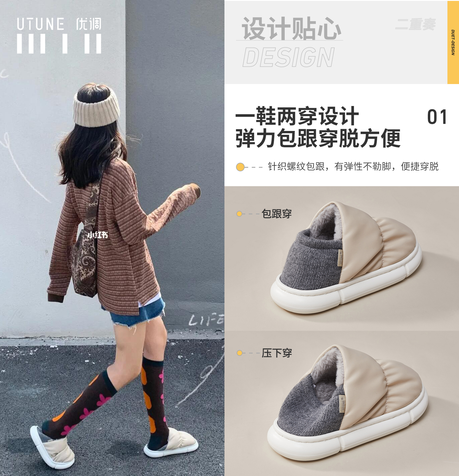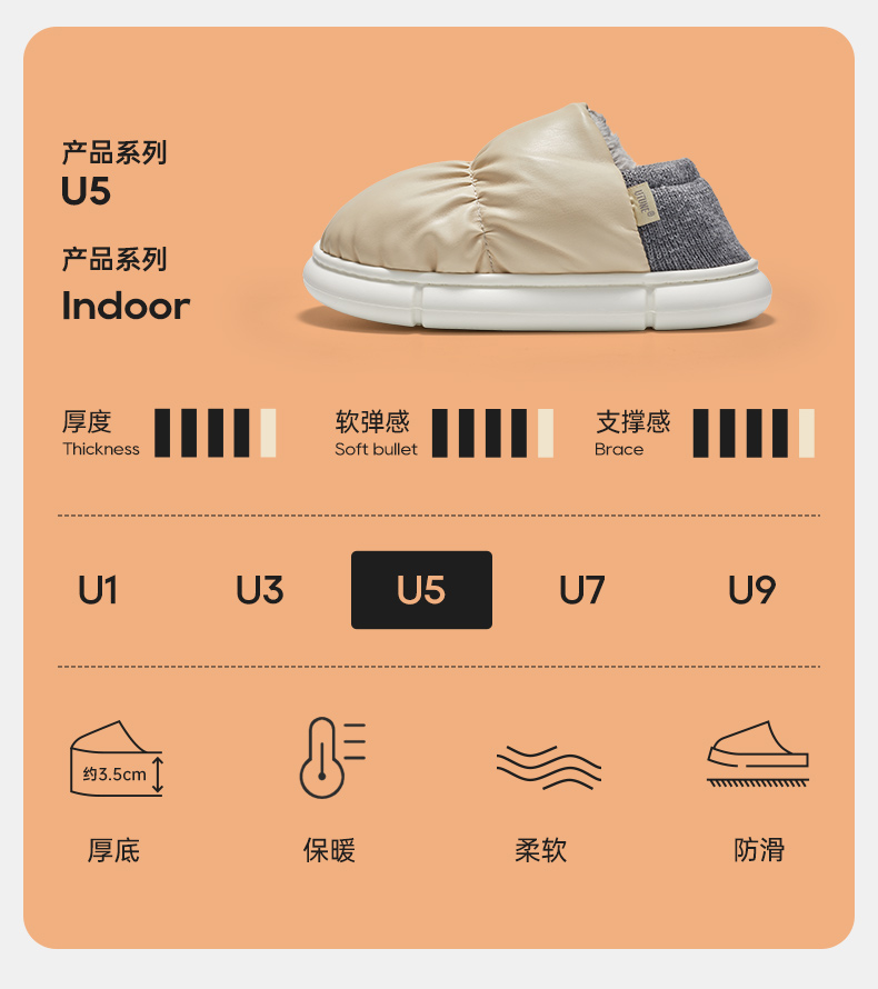 优调“小花生”锁温面包鞋家居拖鞋 DT940