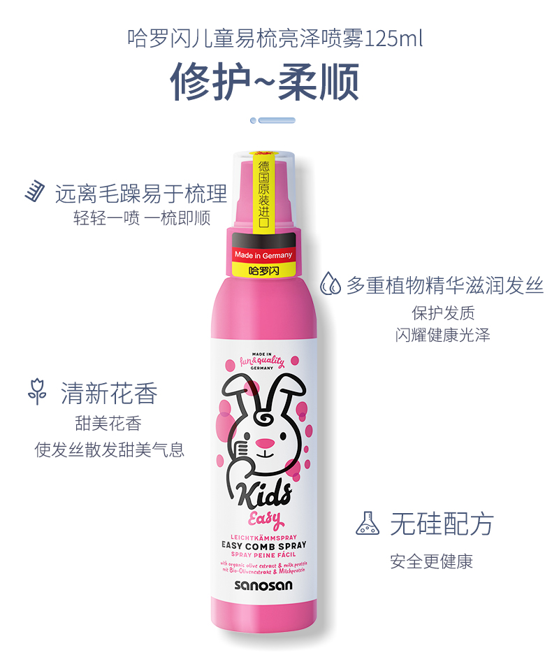 【中欧班列精选】德国哈罗闪儿童易梳亮泽喷雾 原装进口头发远离毛躁免洗护发素不打结不缠绕易梳亮泽喷雾 125ml/瓶