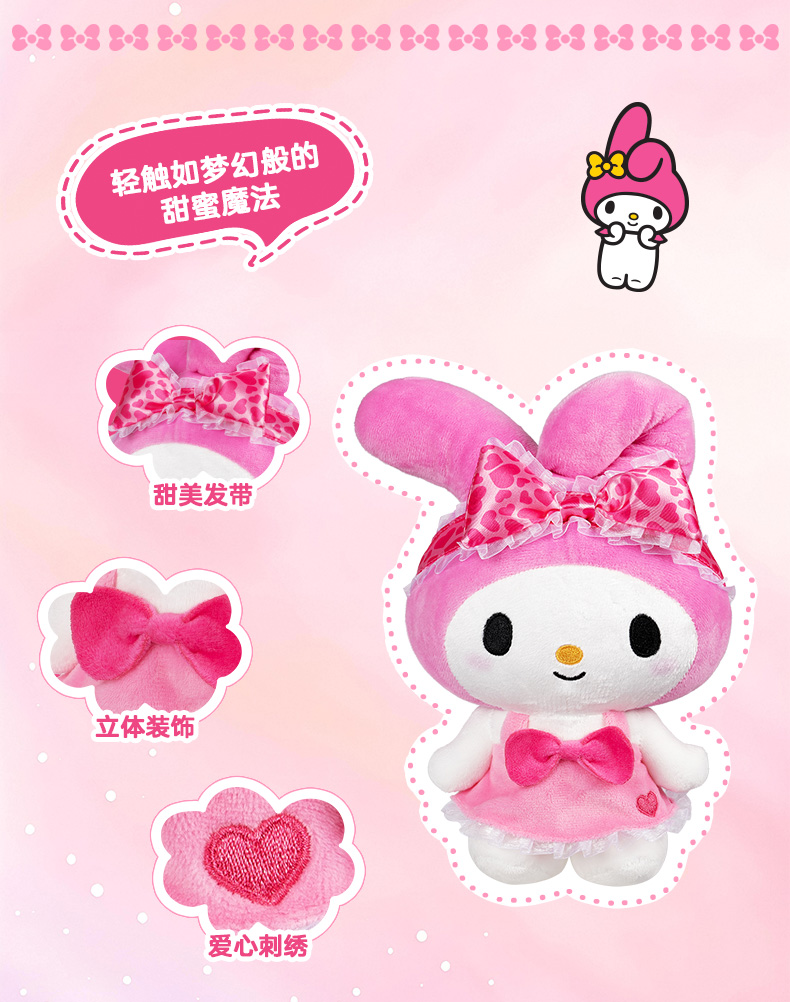 Jazwares 8英寸My Melody 美乐蒂萌趣毛绒玩偶 (心型睡裙)