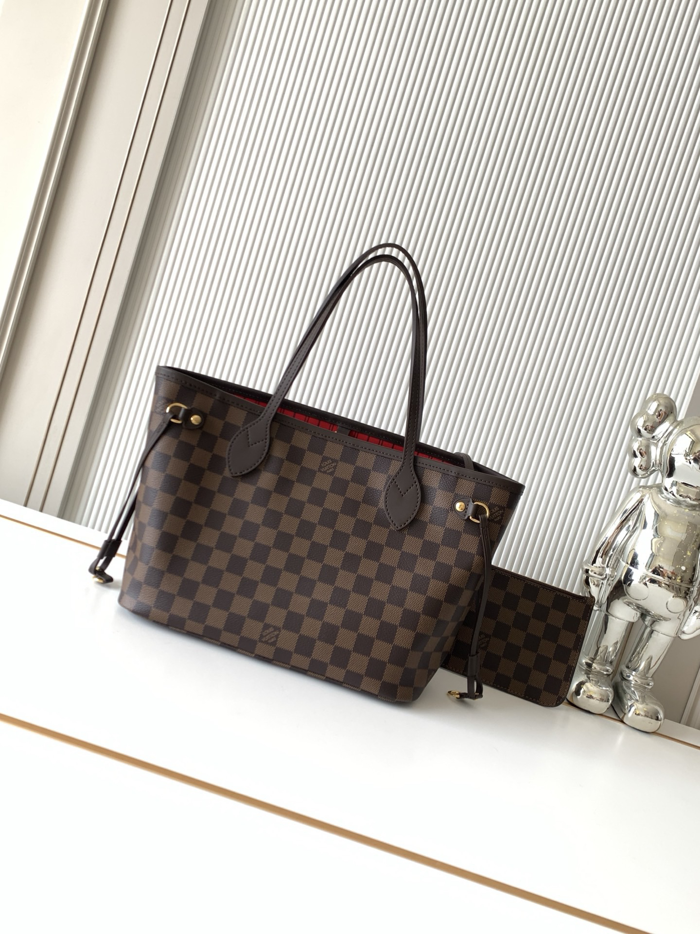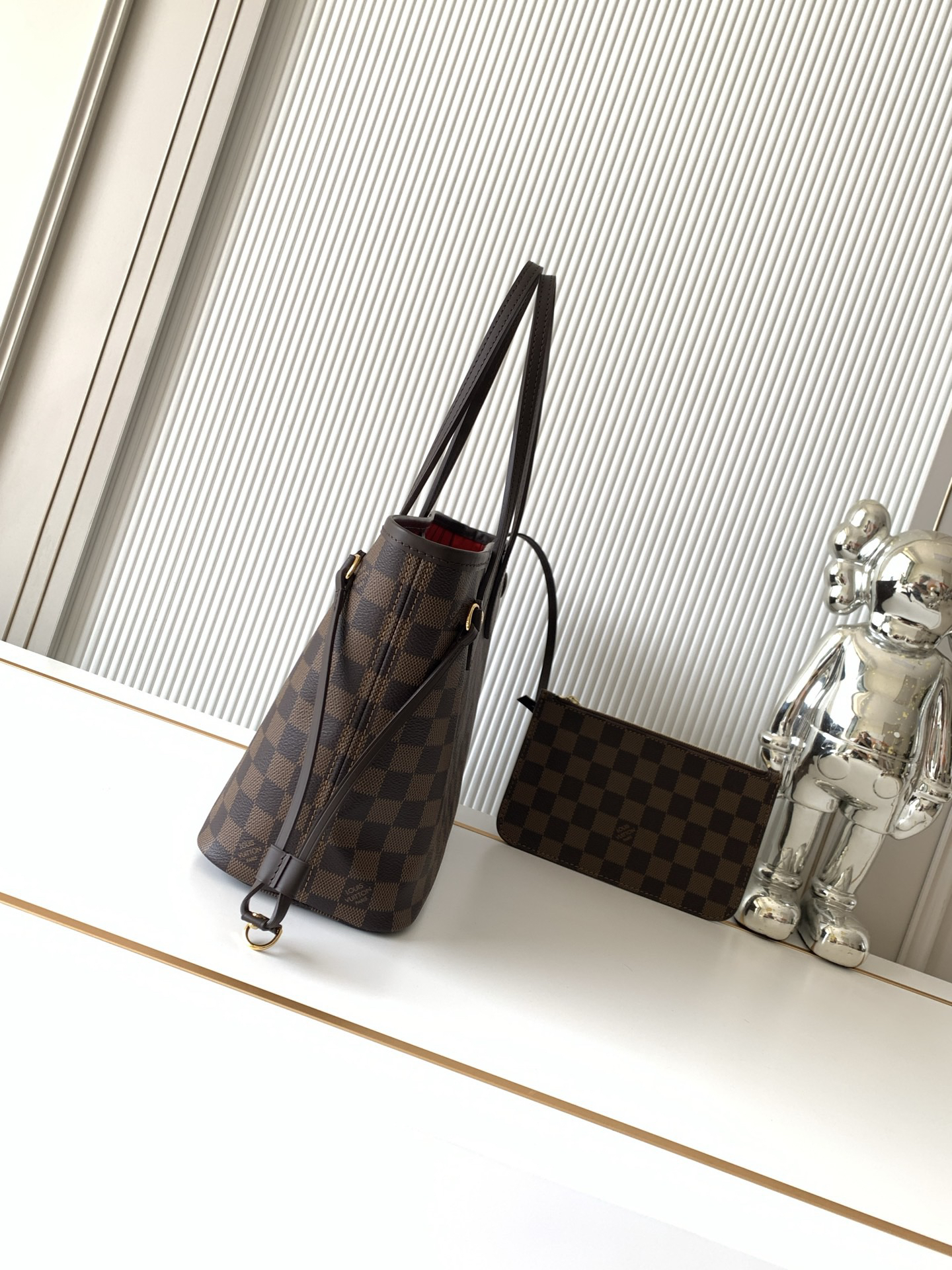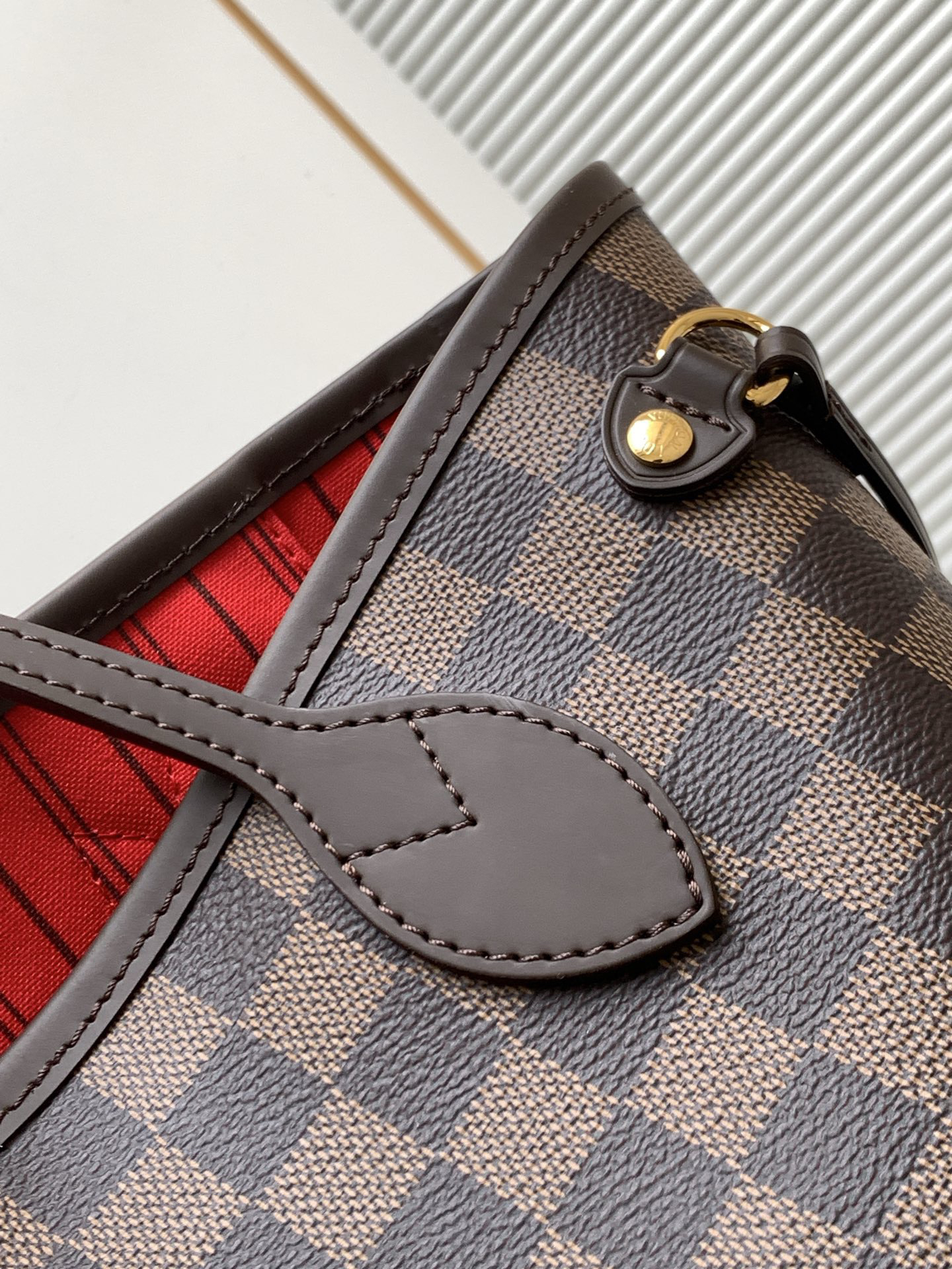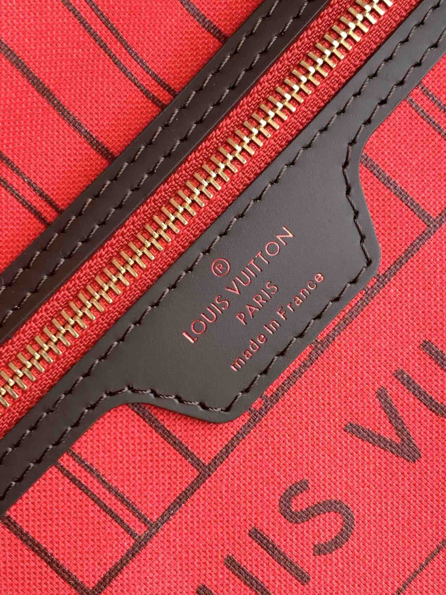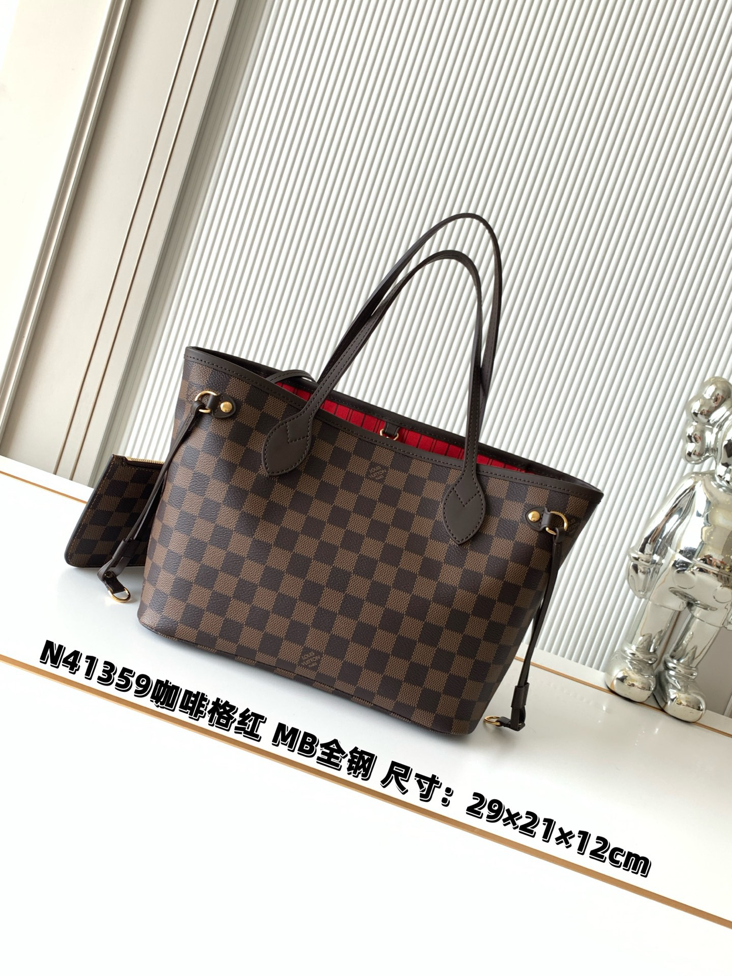 秋冬特惠💰1190 渠道级LV【全钢五金 MB163c01变码芯片】te级LV 全套包装 N41359咖啡格红内里 NEVERFULL 小号手袋 Neverfull 小号手提包