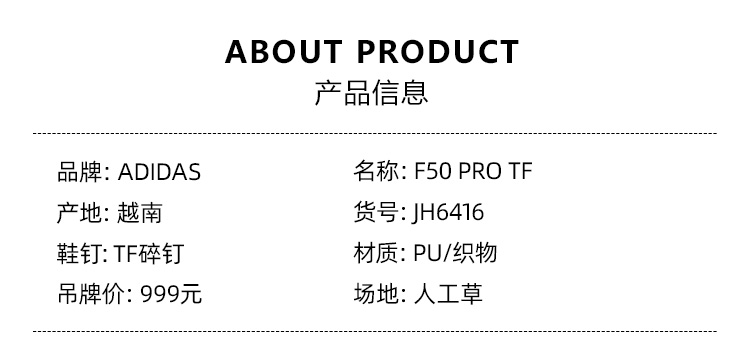 SFS阿迪达斯Adidas F50 PRO次高端TF碎钉足球鞋人草 JH6416