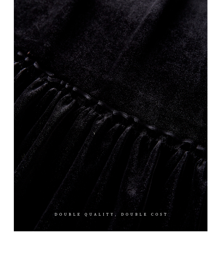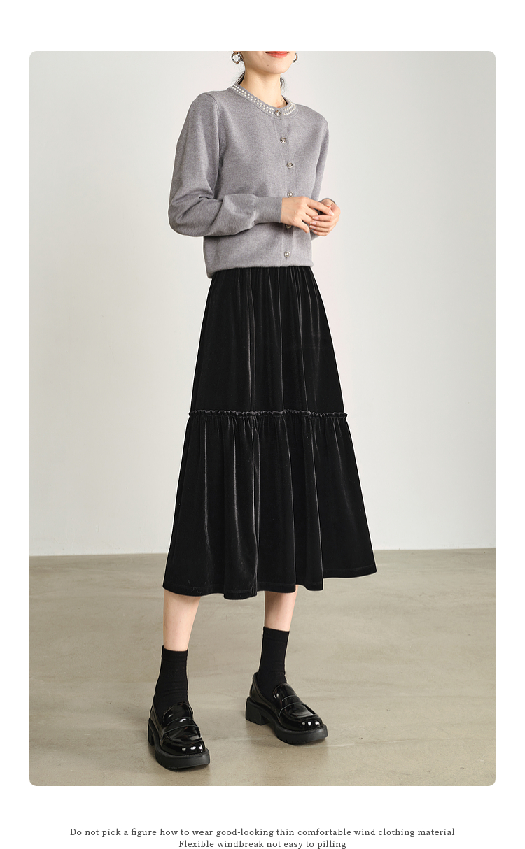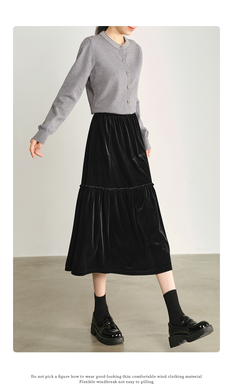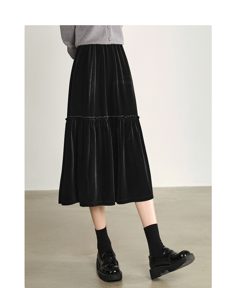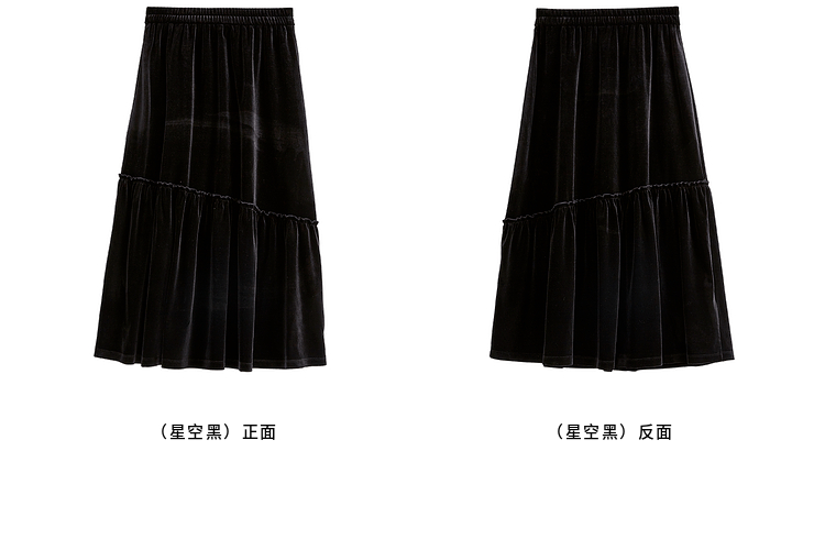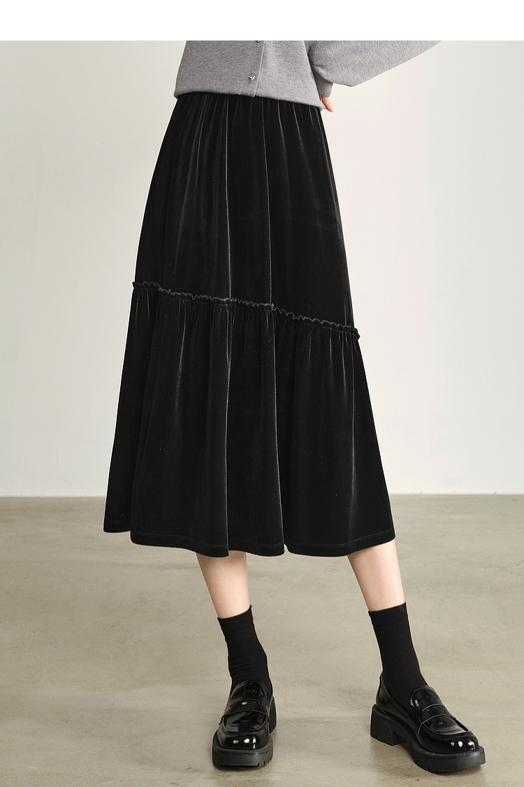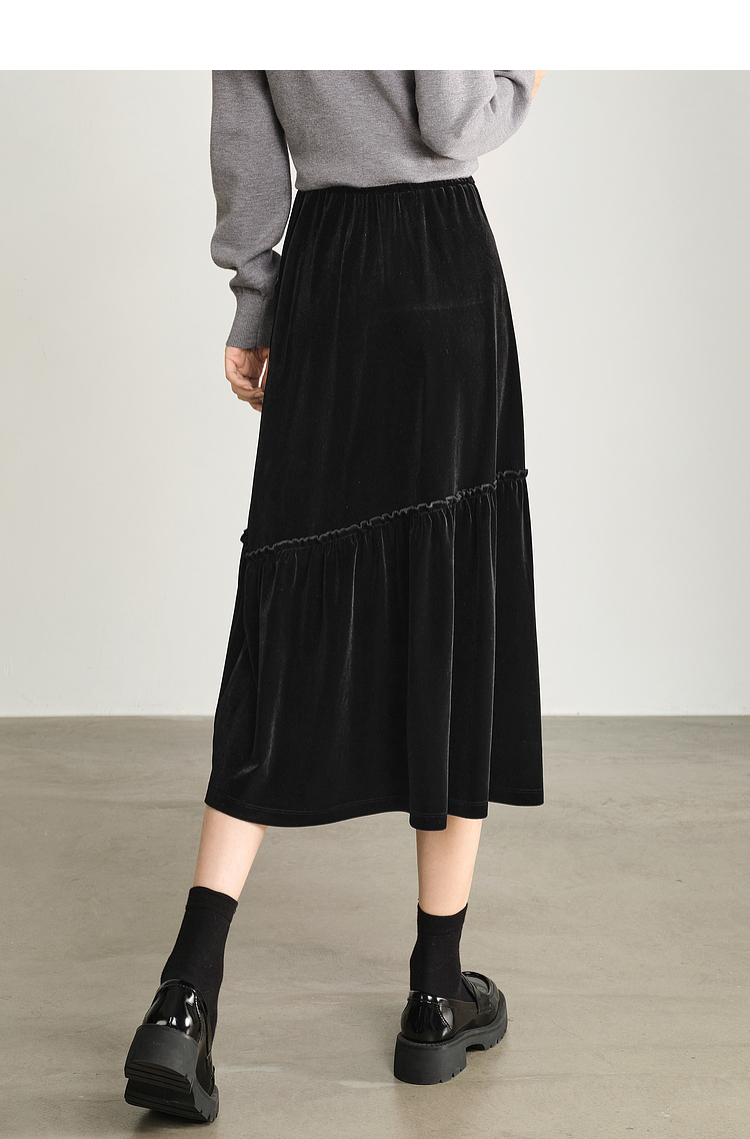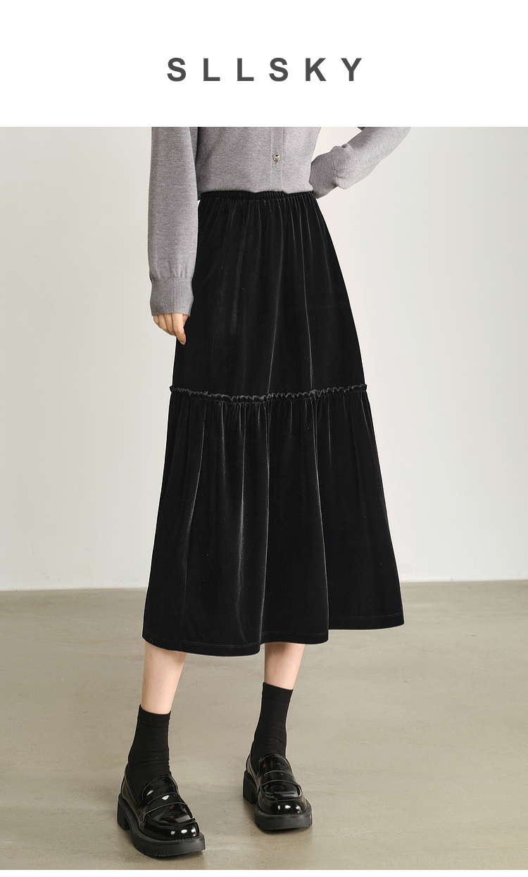【1件75折】熙世界复古黑色金丝绒半身裙女2025新款冬天配毛衣大摆a字伞裙