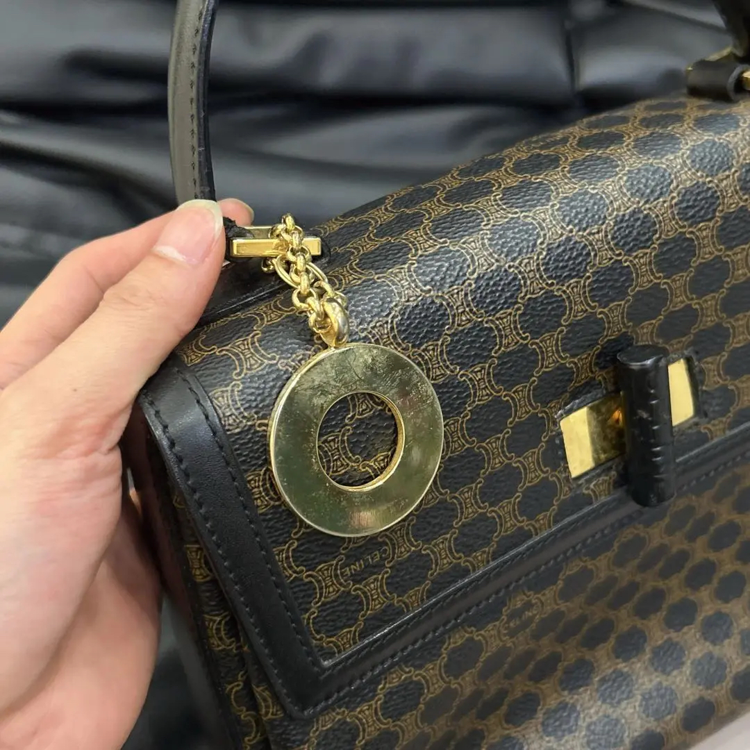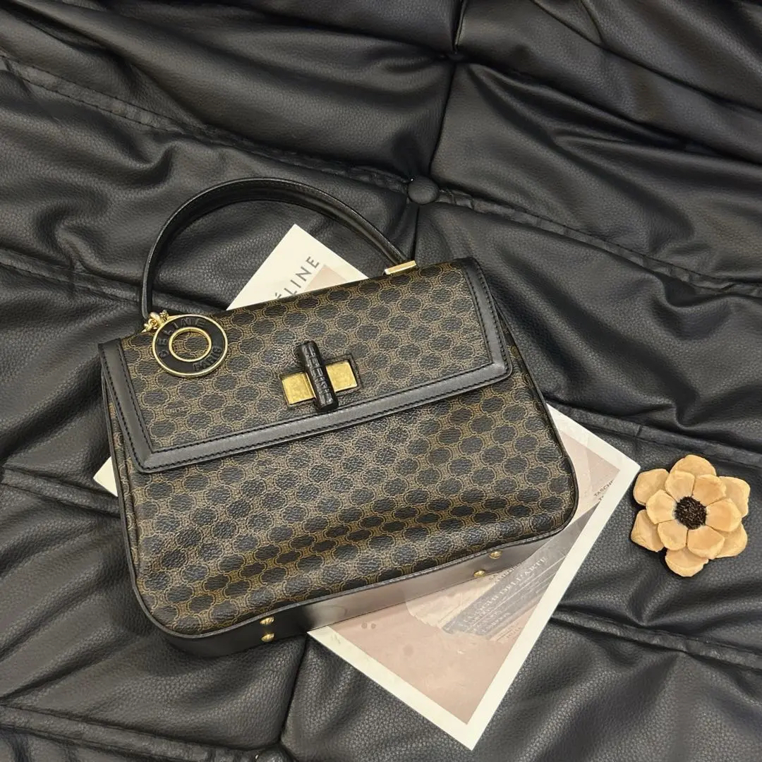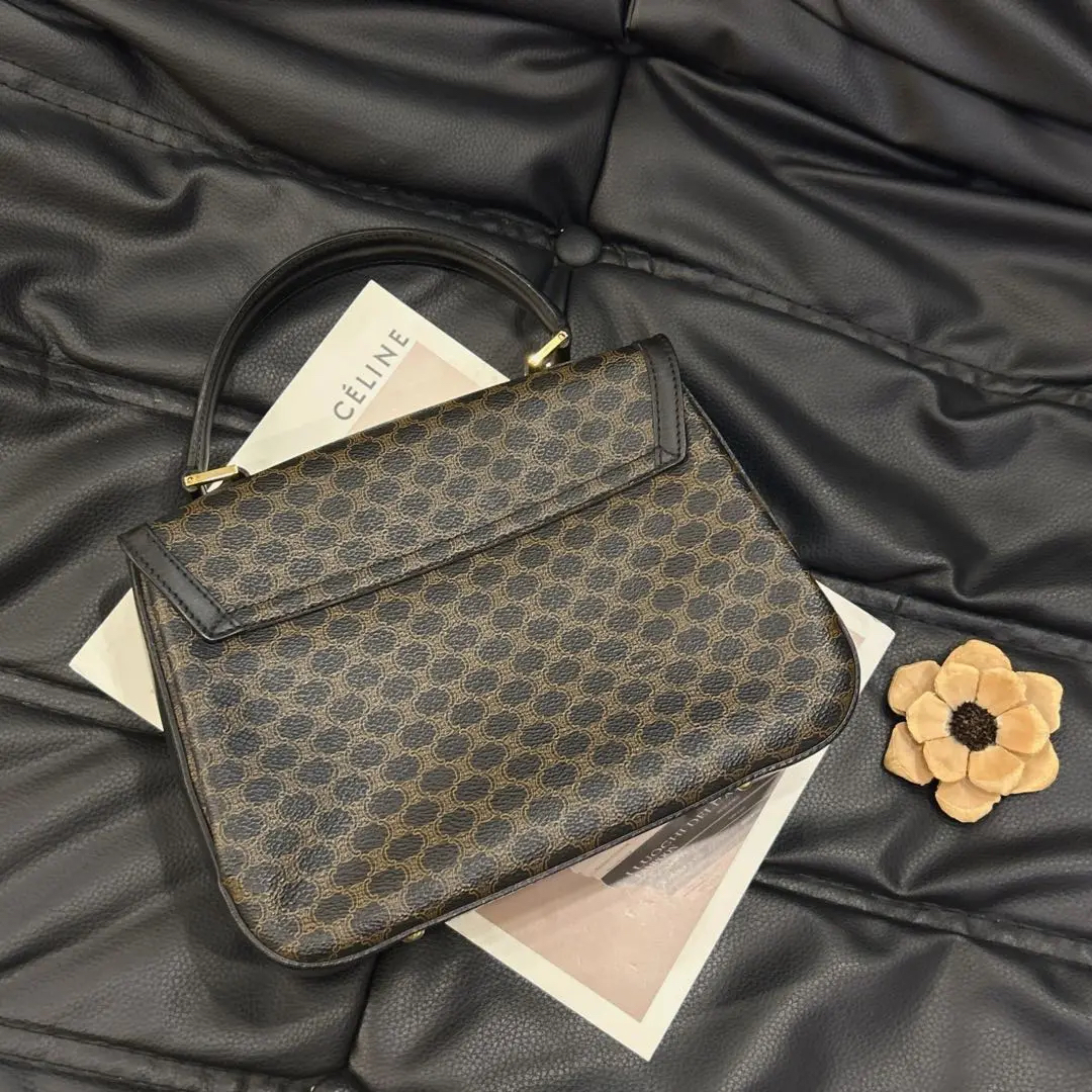 【商品详情】正品二手 Ceilne 黑花 圆环 Kelly 手提包👜95新 25*19 。包身正常使用感。耐看又高级。