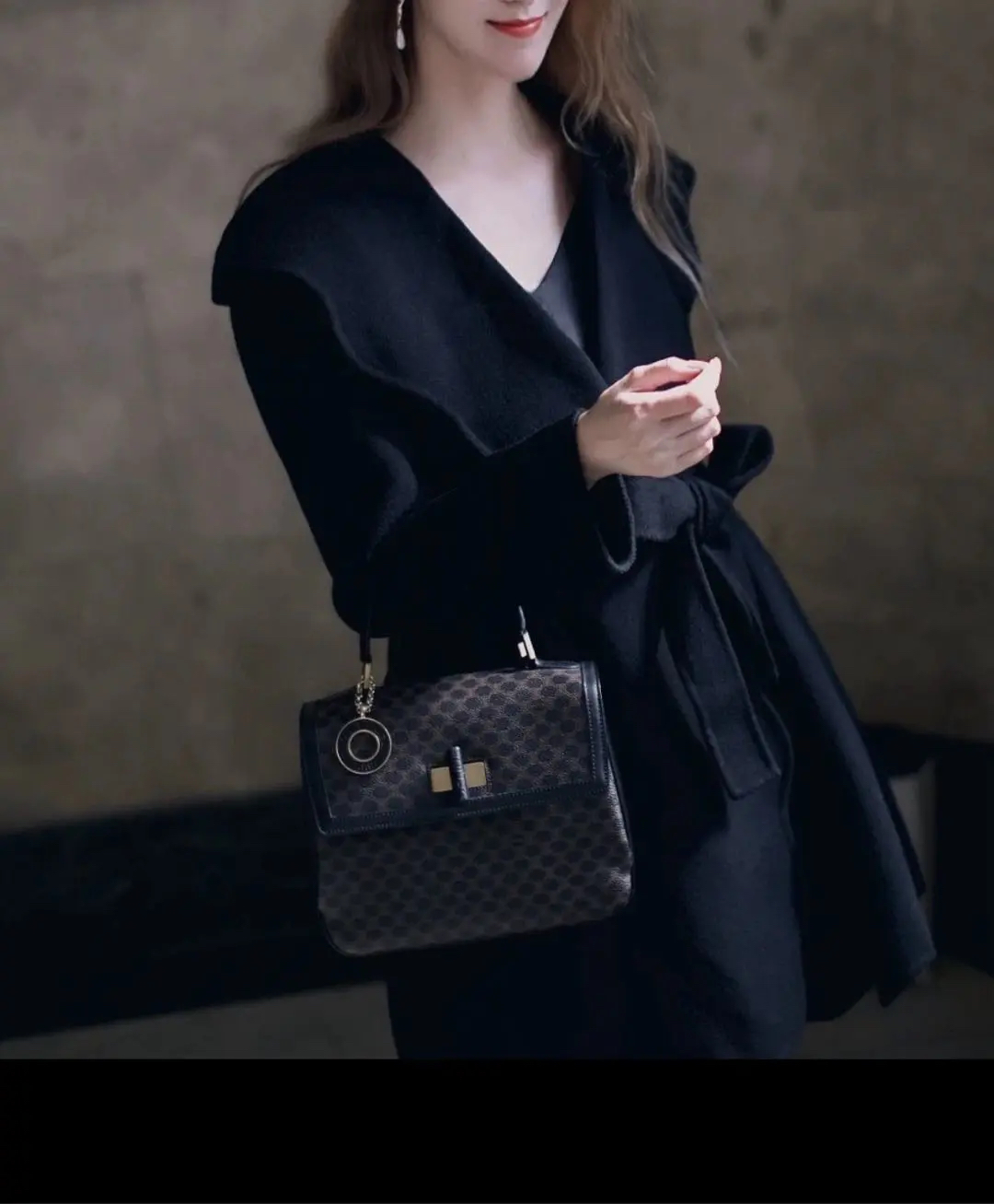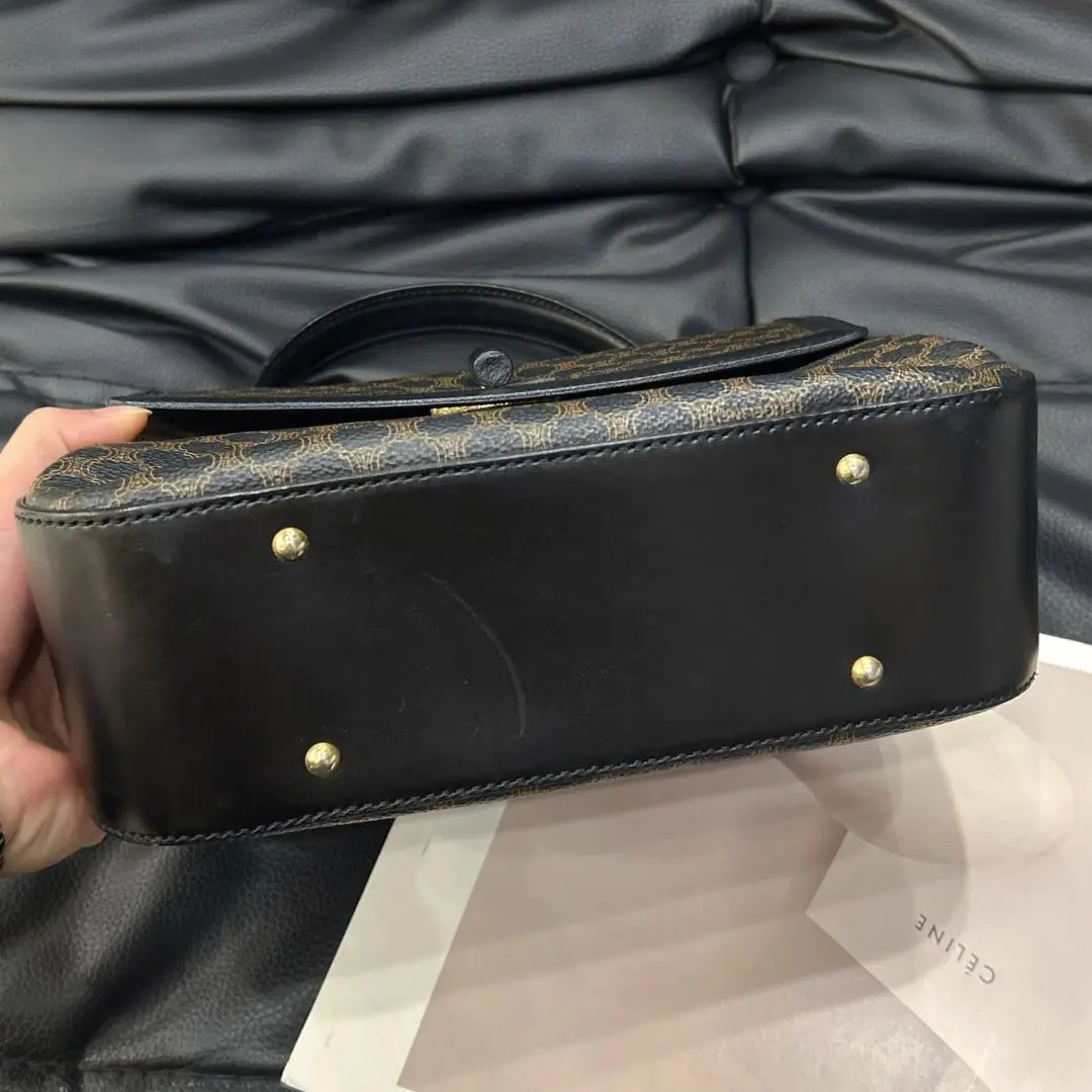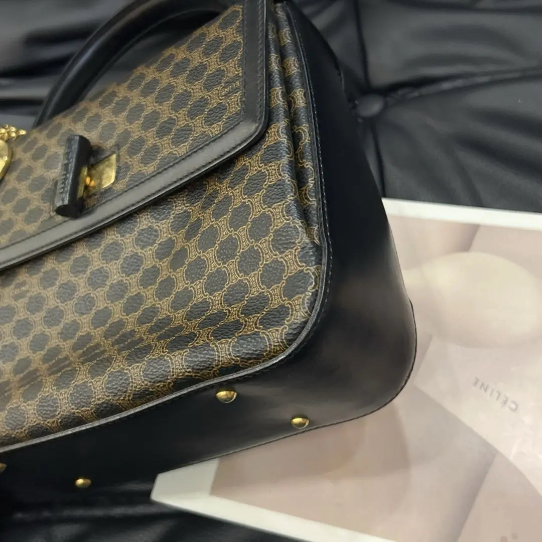 【商品详情】正品二手 Ceilne 黑花 圆环 Kelly 手提包👜95新 25*19 。包身正常使用感。耐看又高级。