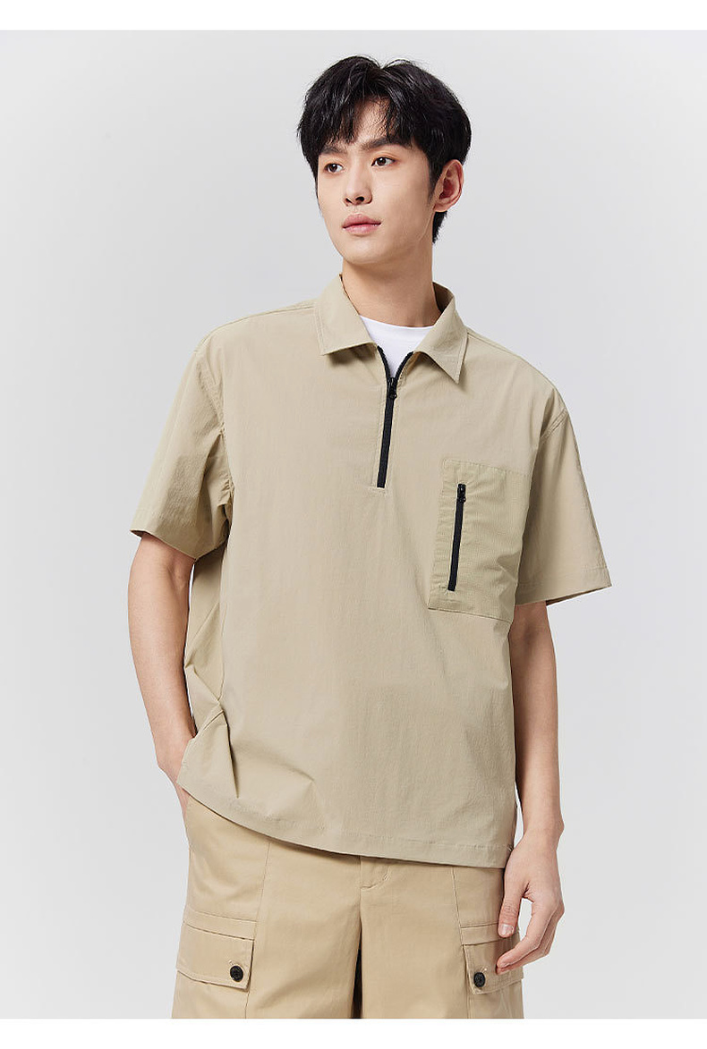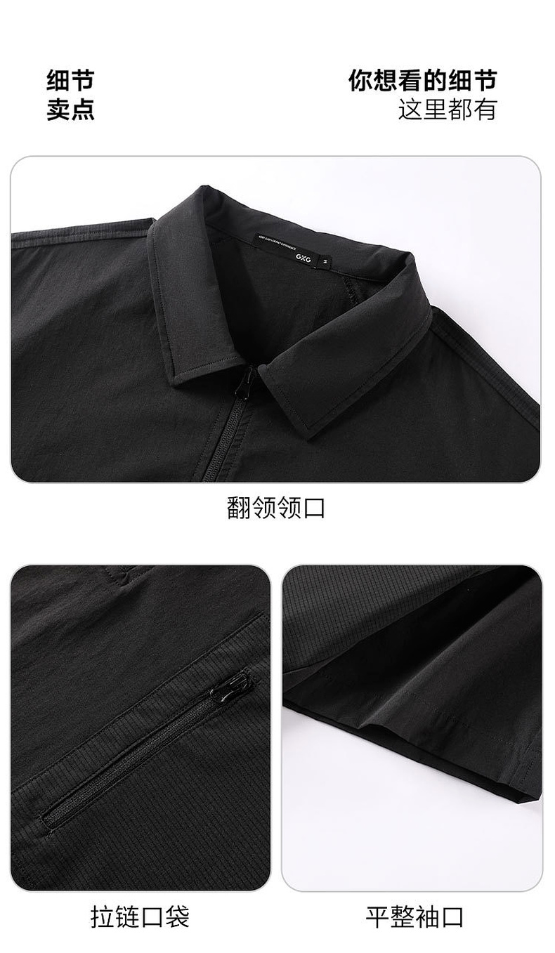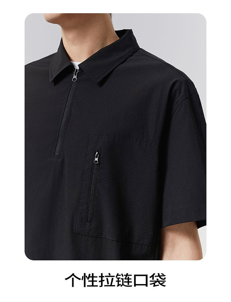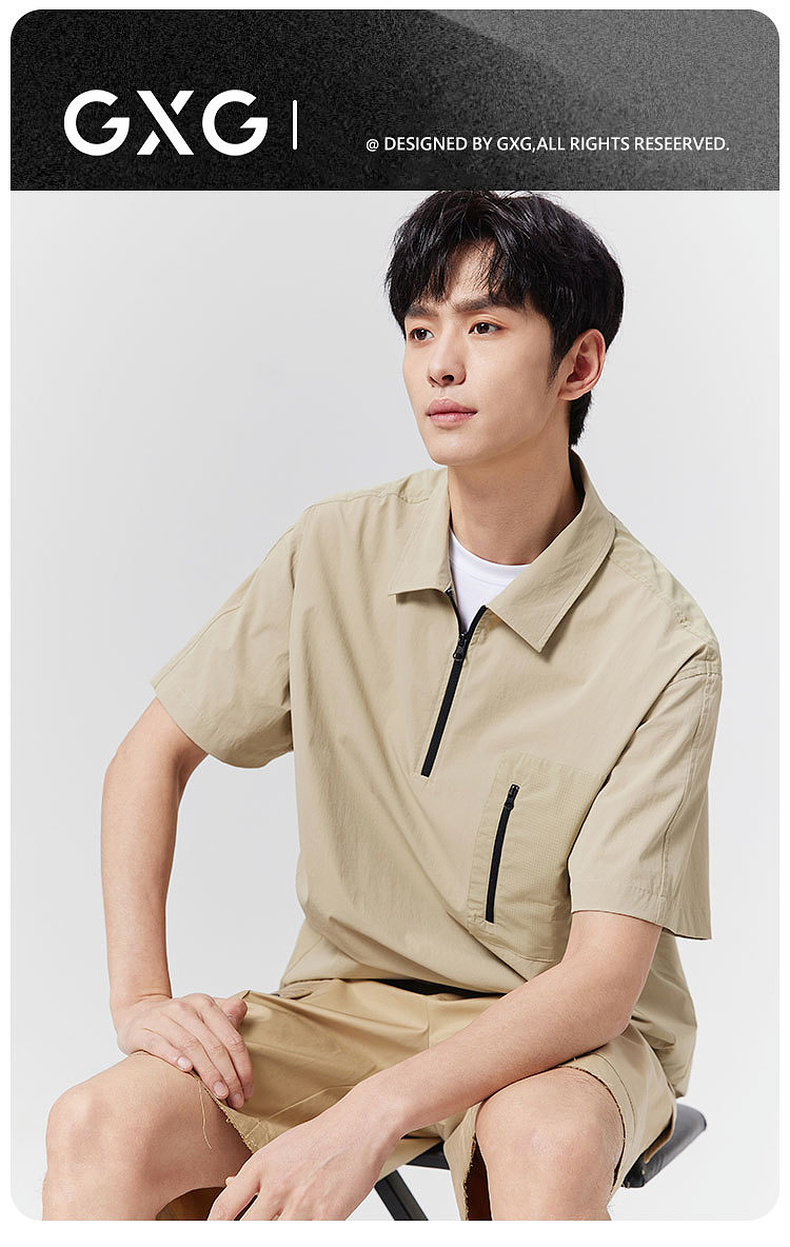 GXG男装25夏季时尚拉链口袋翻领简约通勤休闲男式短袖POLO衫K&C