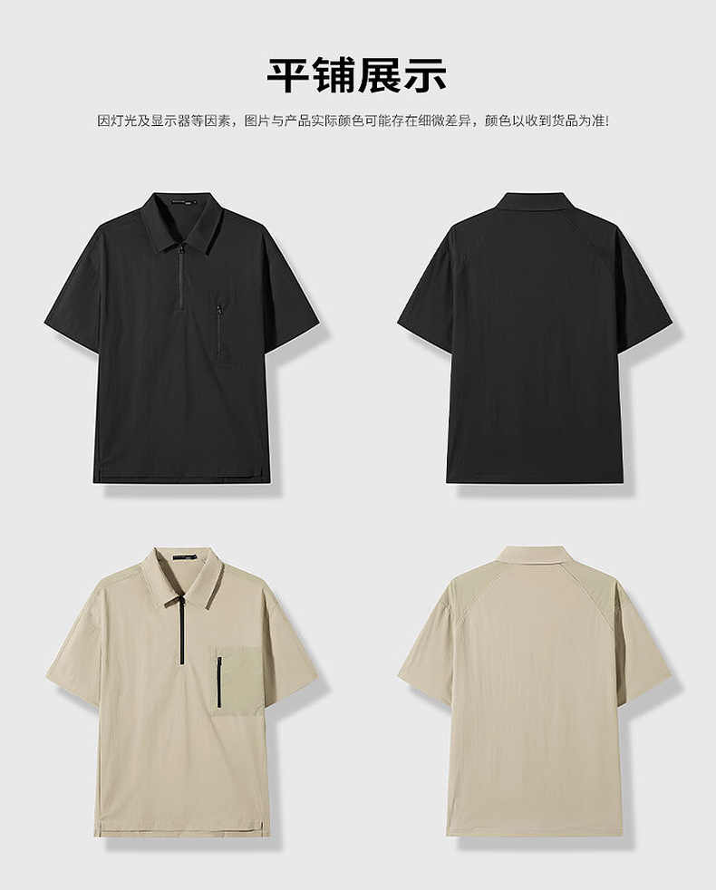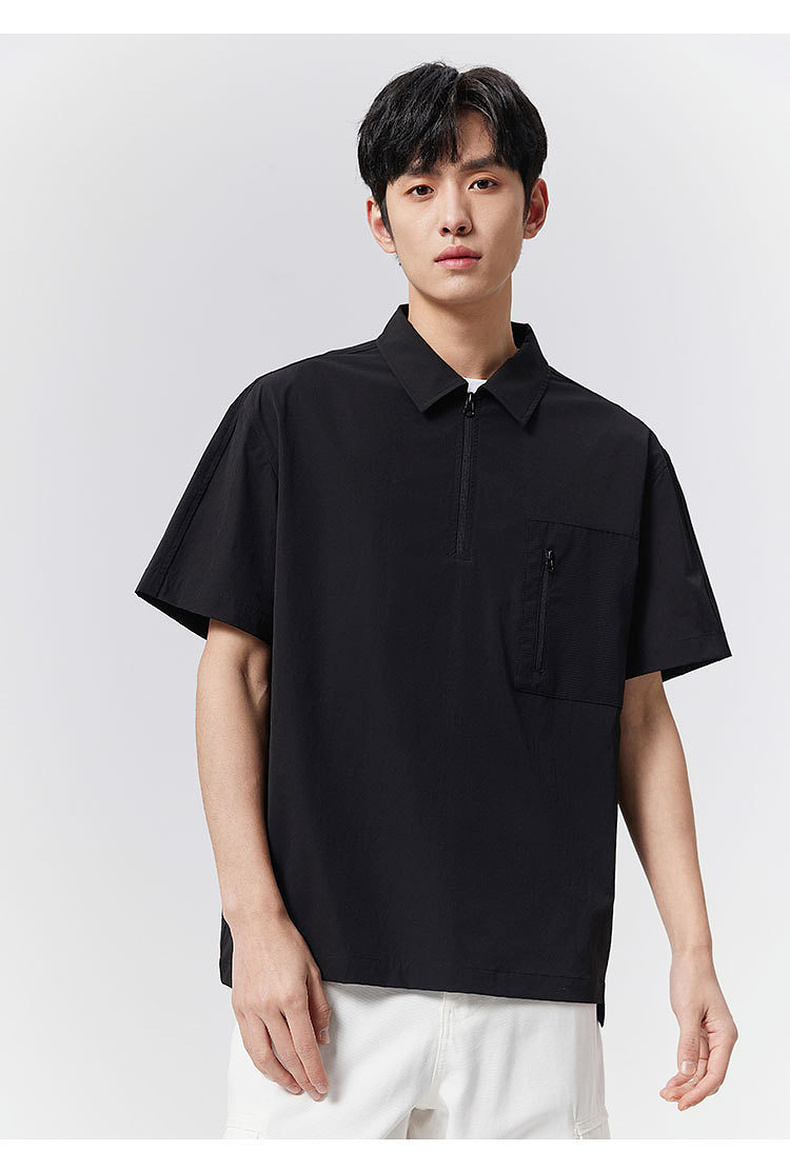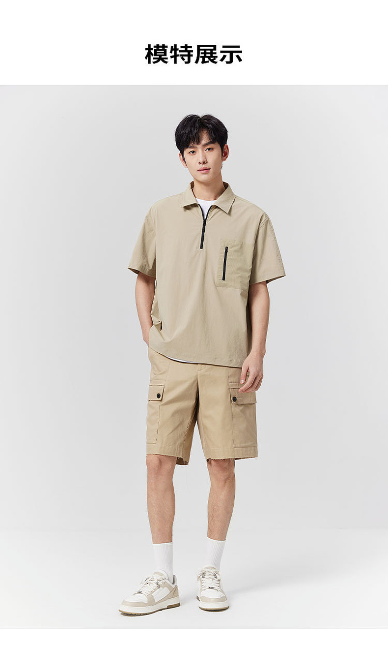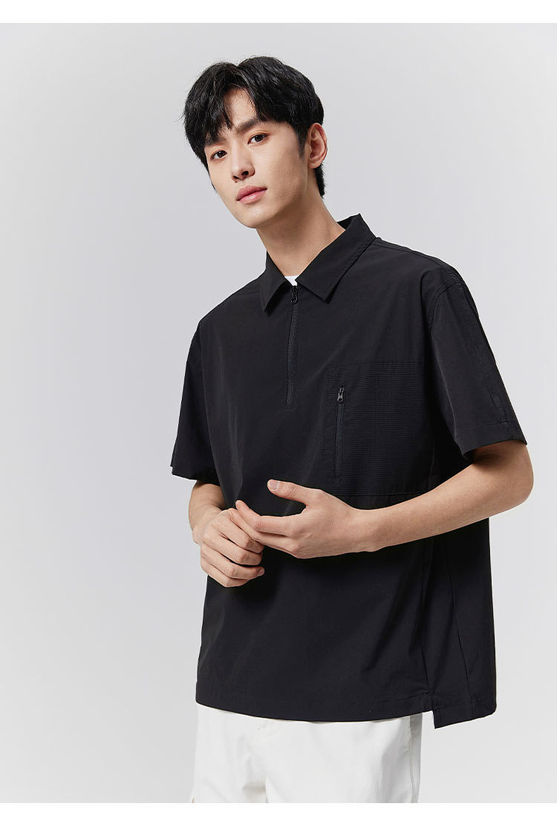 GXG男装25夏季时尚拉链口袋翻领简约通勤休闲男式短袖POLO衫K&C