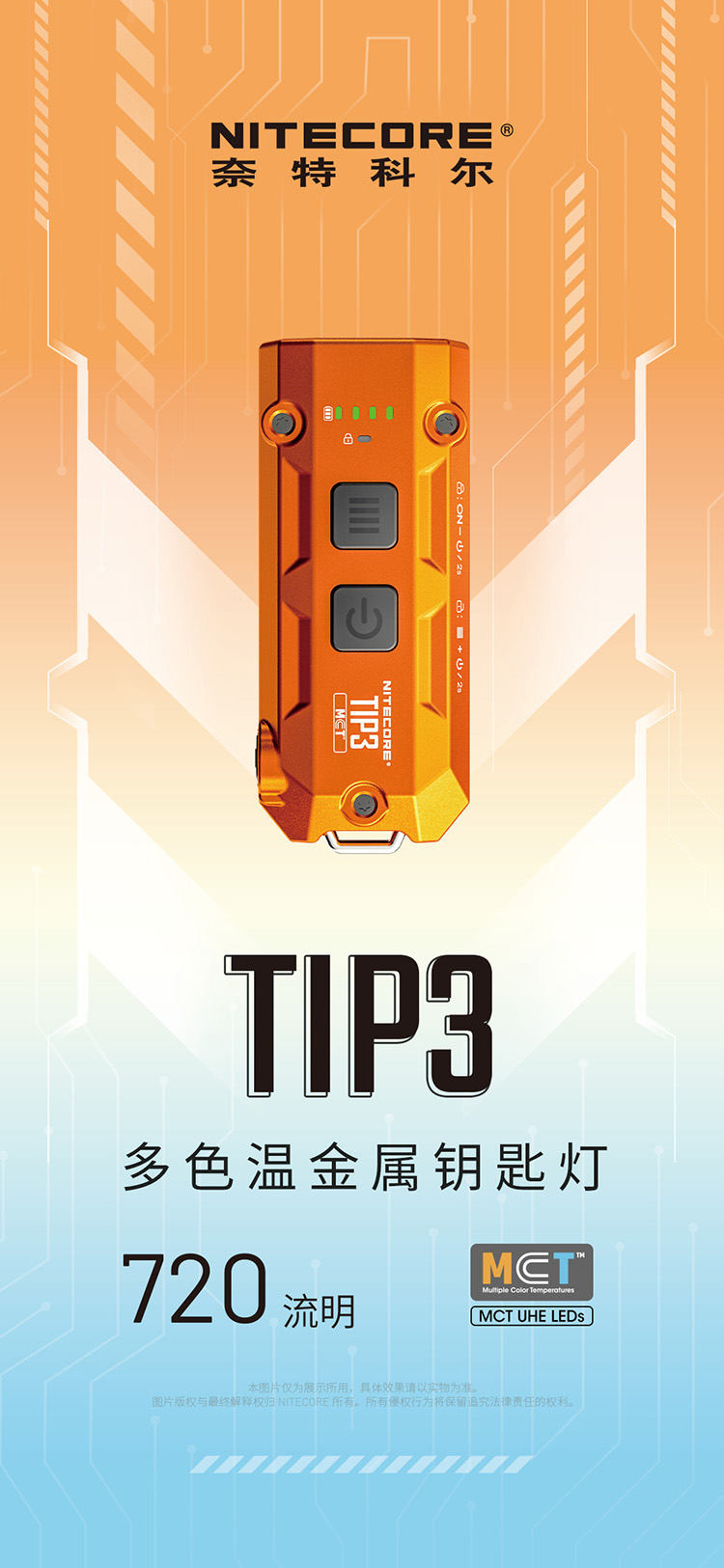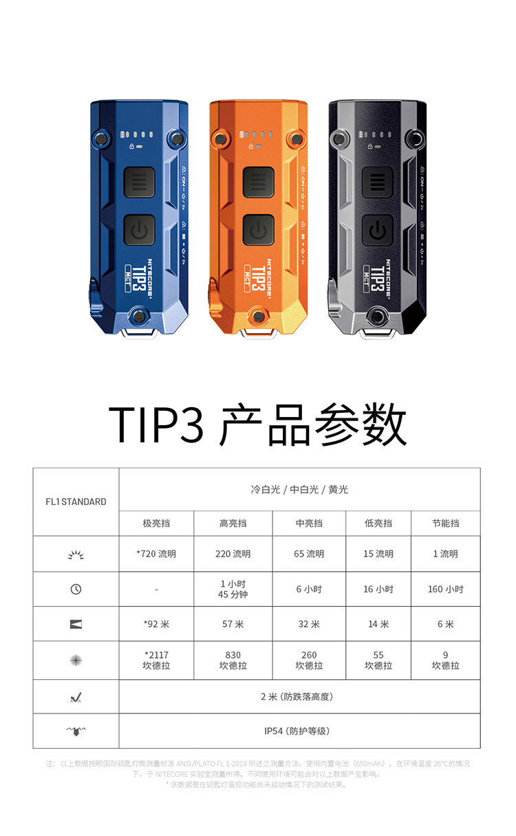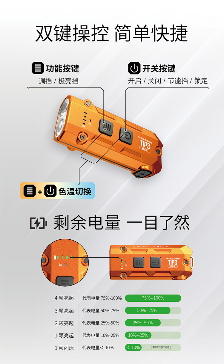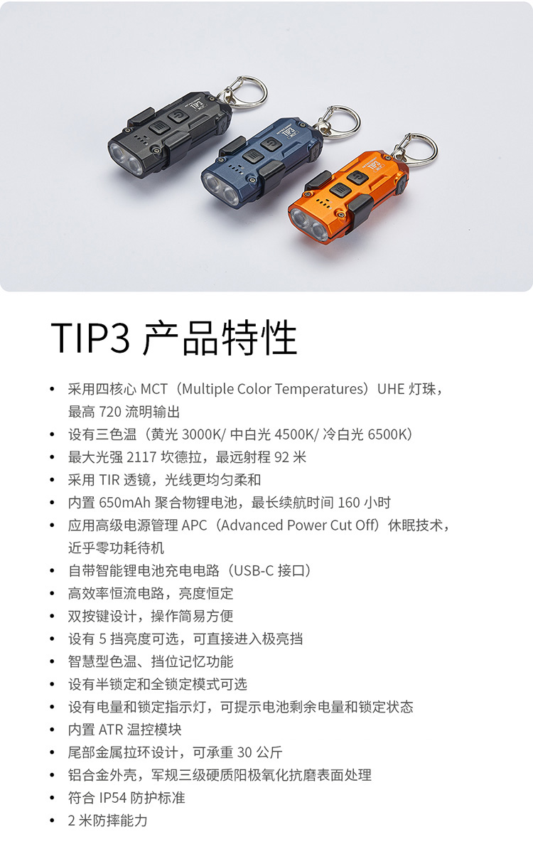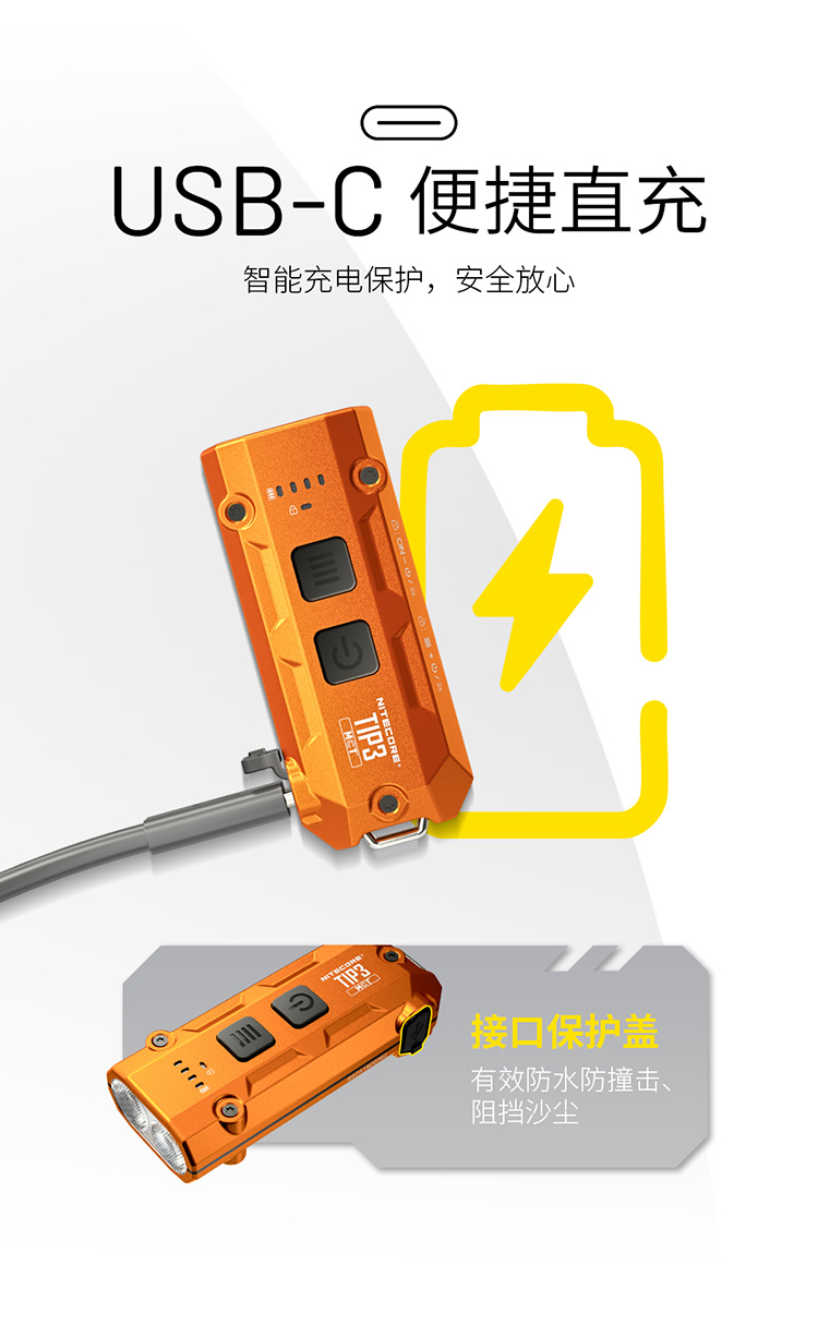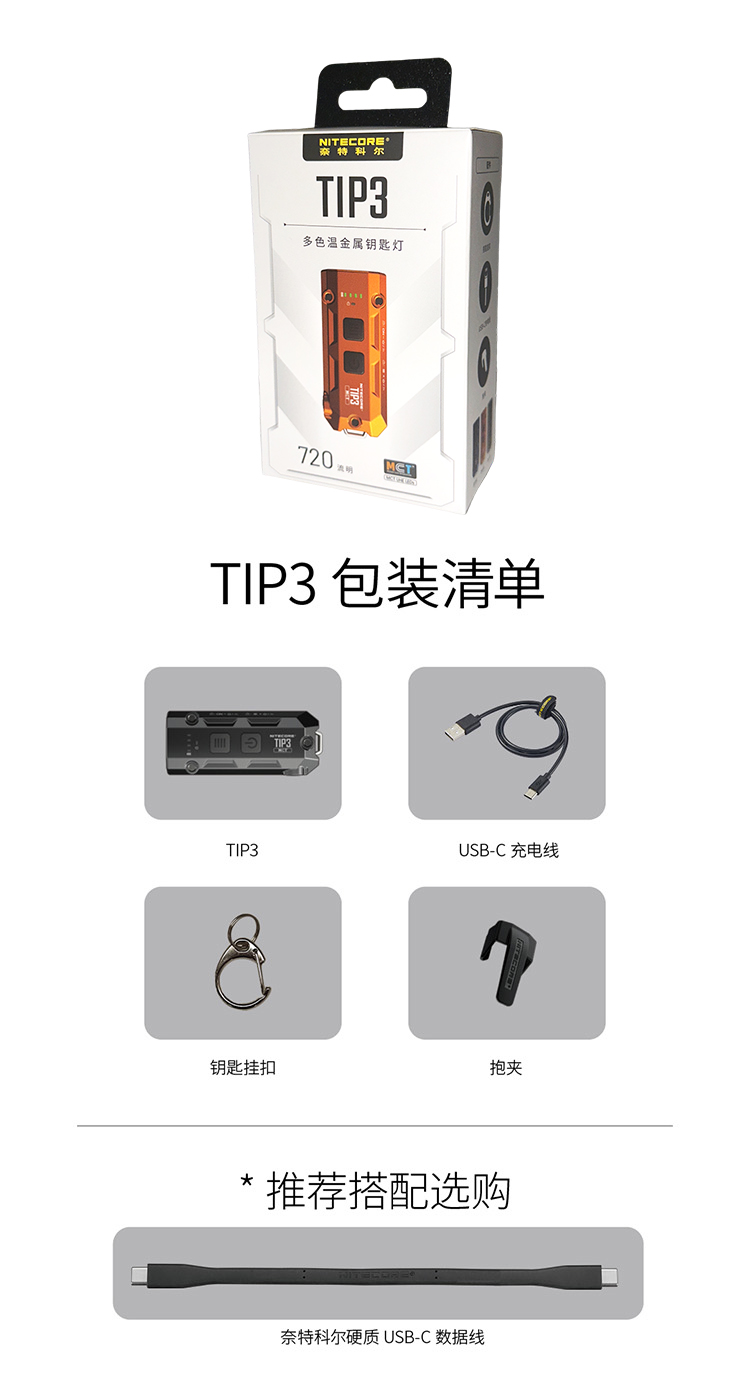 【2026新品】NITECORE奈特科尔TIP3钥匙扣灯EDC充电迷你小手电筒