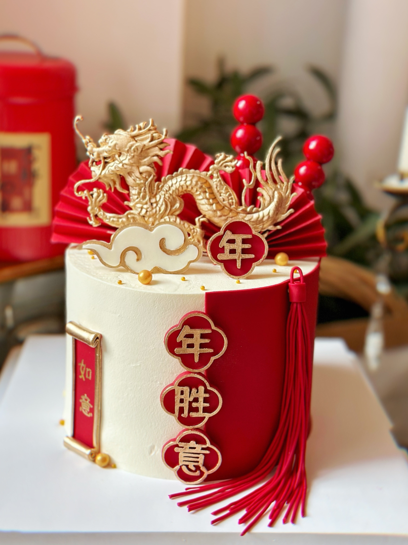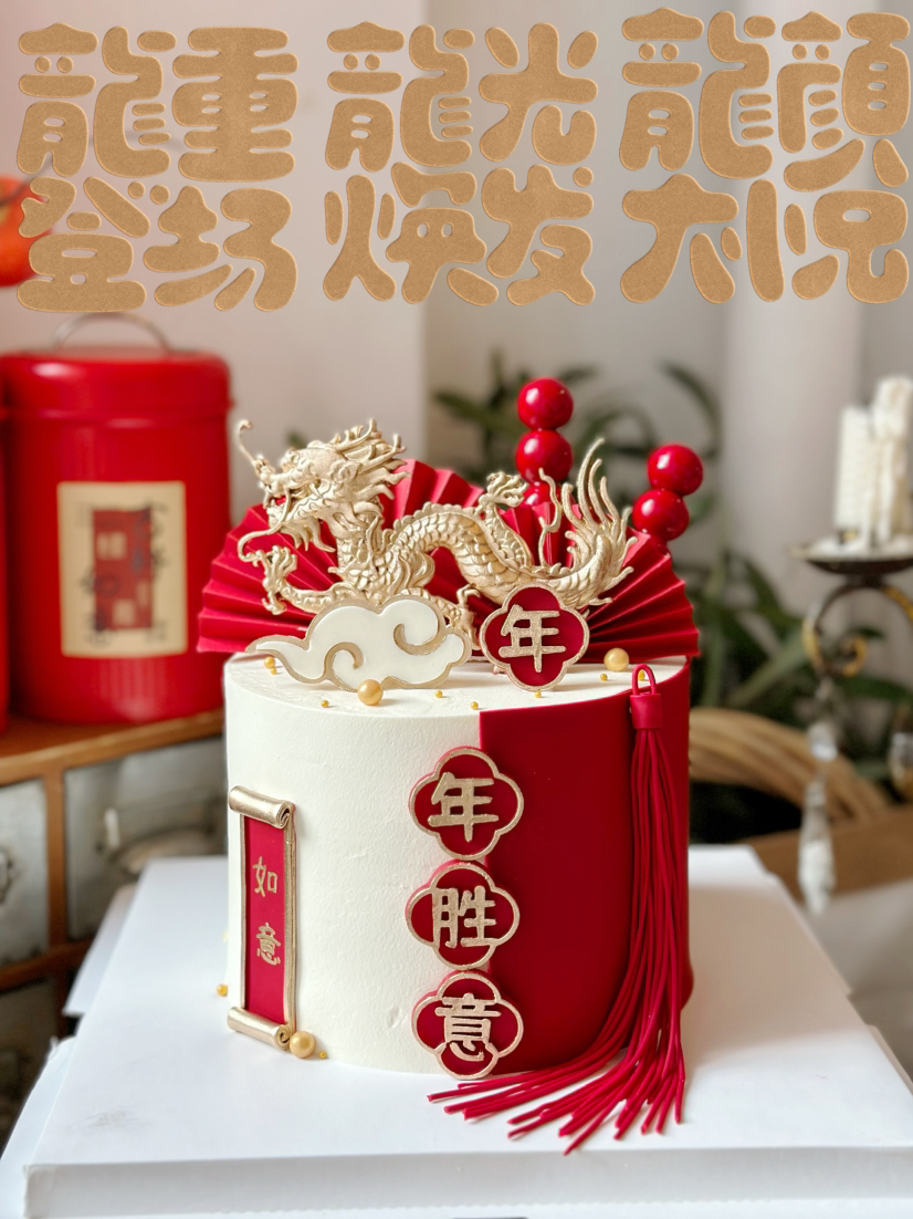 有龙则灵,龙行大运,年年胜意,请提前48小时以上预定,全部翻糖可食用装饰,12厘米小高层