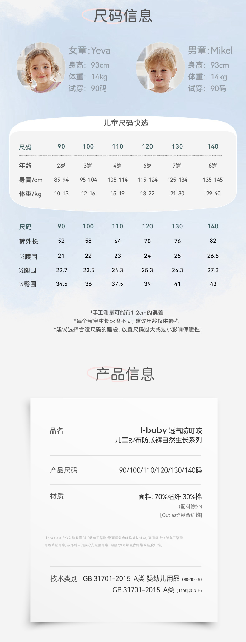 【99元任选2条】ibaby防蚊裤合集恒温儿童防蚊裤男女宝宝灯笼裤