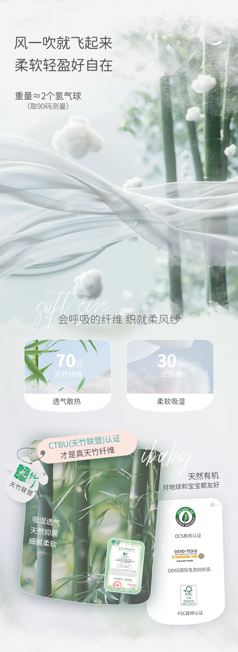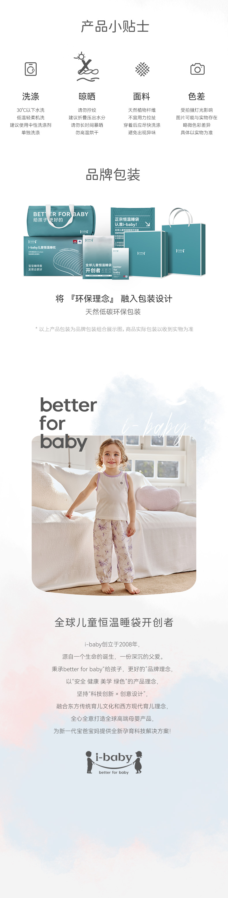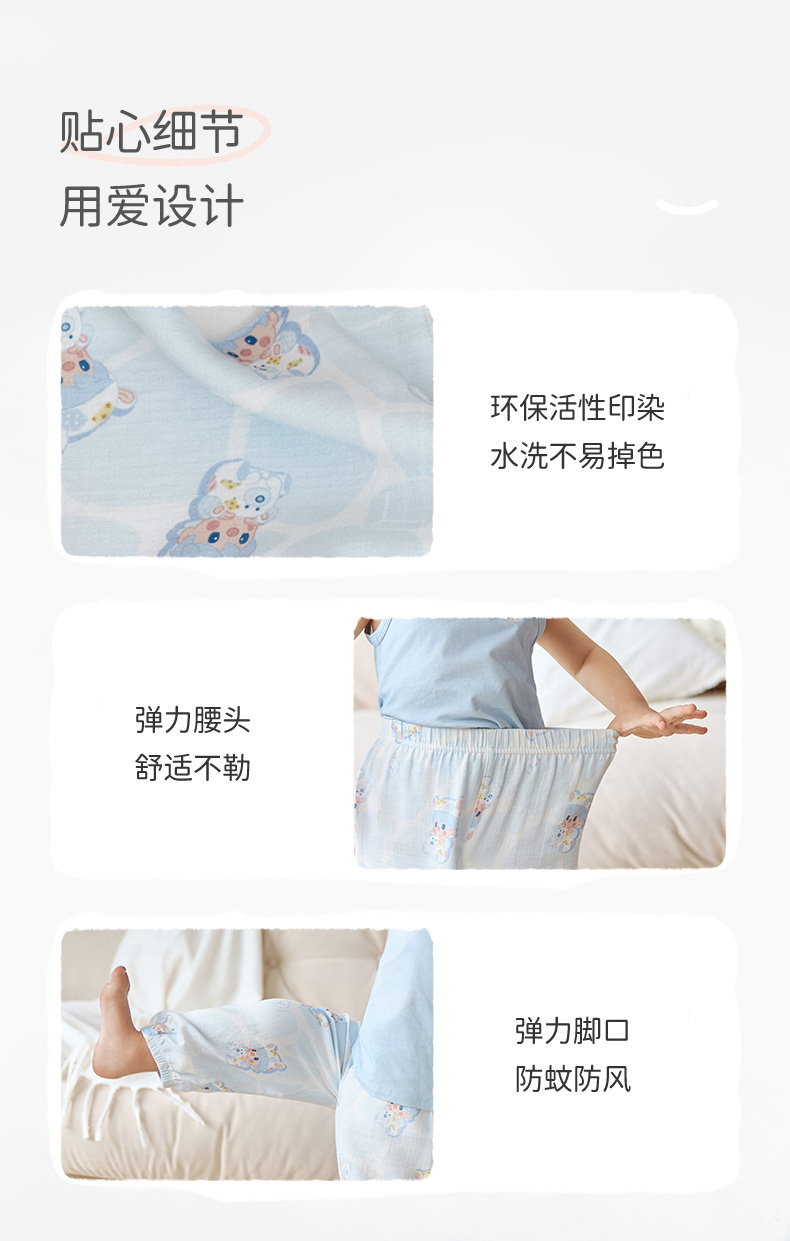 ibaby×outlast太空科技恒温宝宝家居服连体衣儿童纱布居家贴身套装 睡衣薄春夏