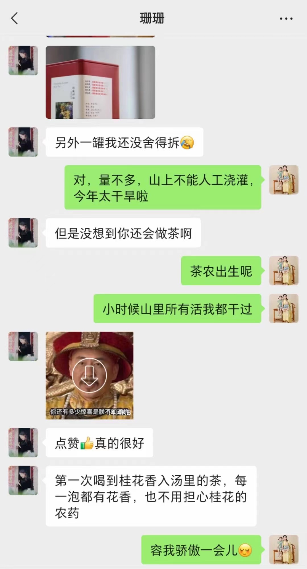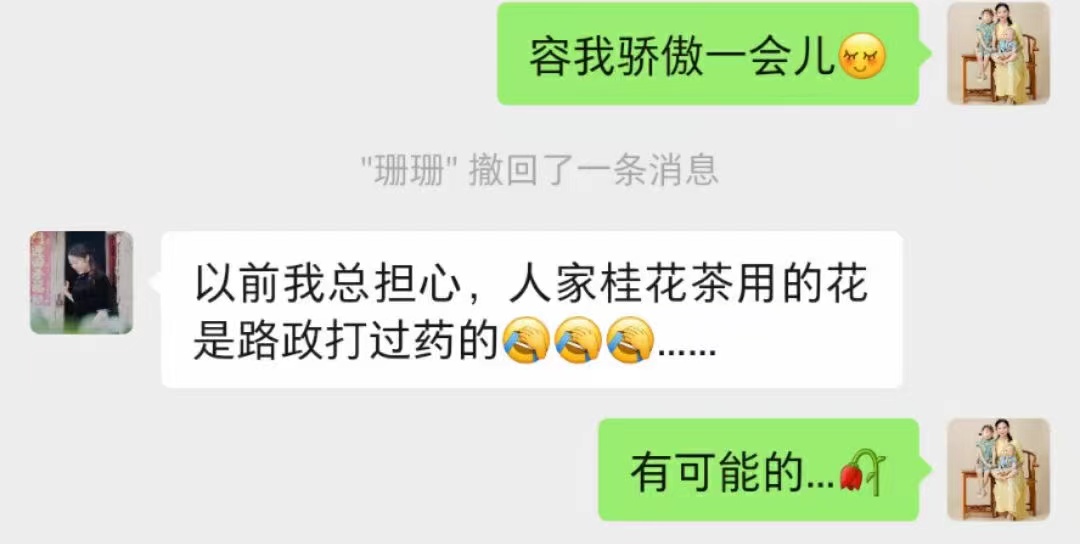 2. 问:小区里、马路上好多桂花,可以用不?答:大部分是可以食用的,但我们不用。因为跟茶一样,好的生态出好花,我们选择徽州深山里的桂花树,祖辈在茶园里零星种植的老树,树龄在几十年到100-200年间。