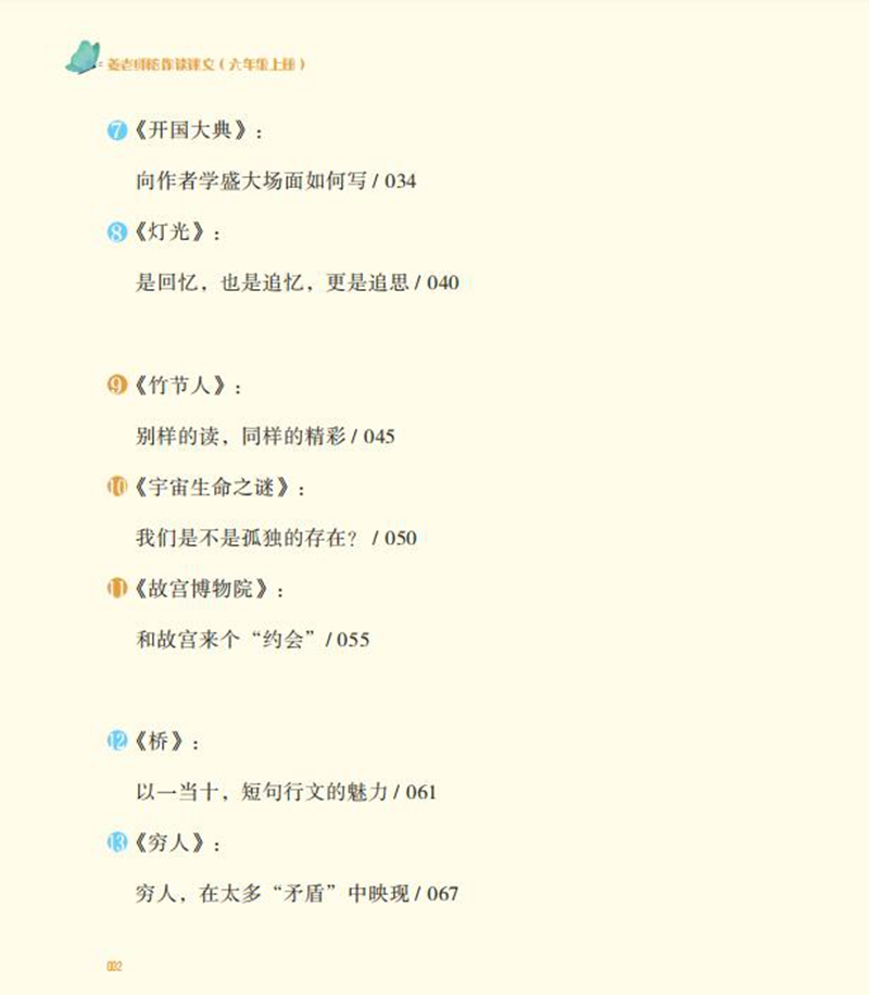 统编版小学语文教材已于2019年秋开始在全国全面使用, 为了让学生更好地理解全新教材中的全新课文, 有名特级教师姜树华老师运用语文视角, 从学生的口吻来解读每一篇课文。解读文字亲切可感, 具有独特的视角; 解读文字拥有私塾先生讲授一般强烈的“卷入感”, 实现“脑洞大开”; 每篇文章一千五百字左右, 学生通过十分钟左右的阅读, 可以生发对课文的更深刻、更独特的理解。每篇解读文字通过扫描文后二维码链接到喜马拉雅听的音频资源。本册配套统编版语文六年级上册教材。
