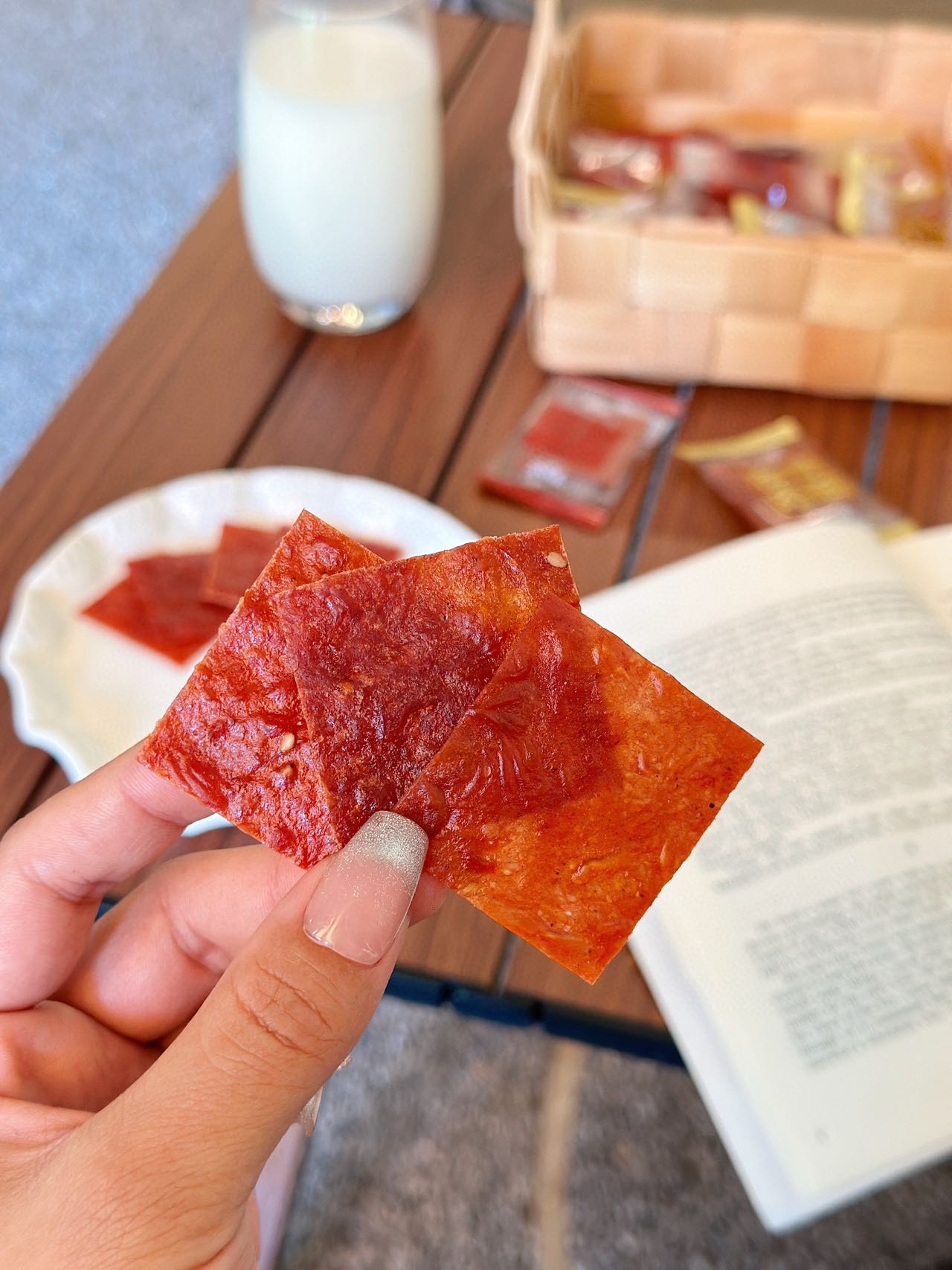 2、肉脯纹路清晰,肉质纤维粗,撕咬好嚼劲;