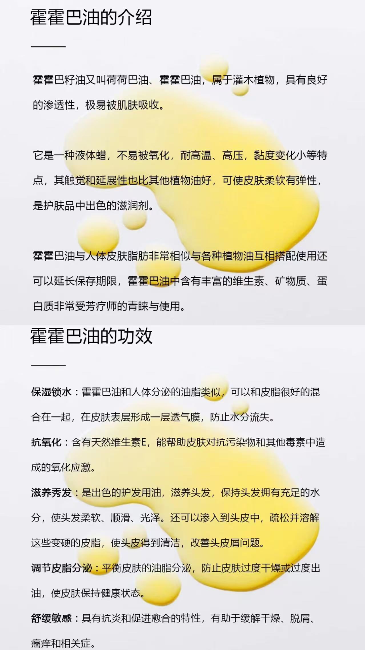 植物油里面含有丰富的养肤成分以及养肤活性物质,进入我们的肌肤,是可以被我们的肌肤食用、利用、并代谢的,是肌肤最天然友好营养的食品