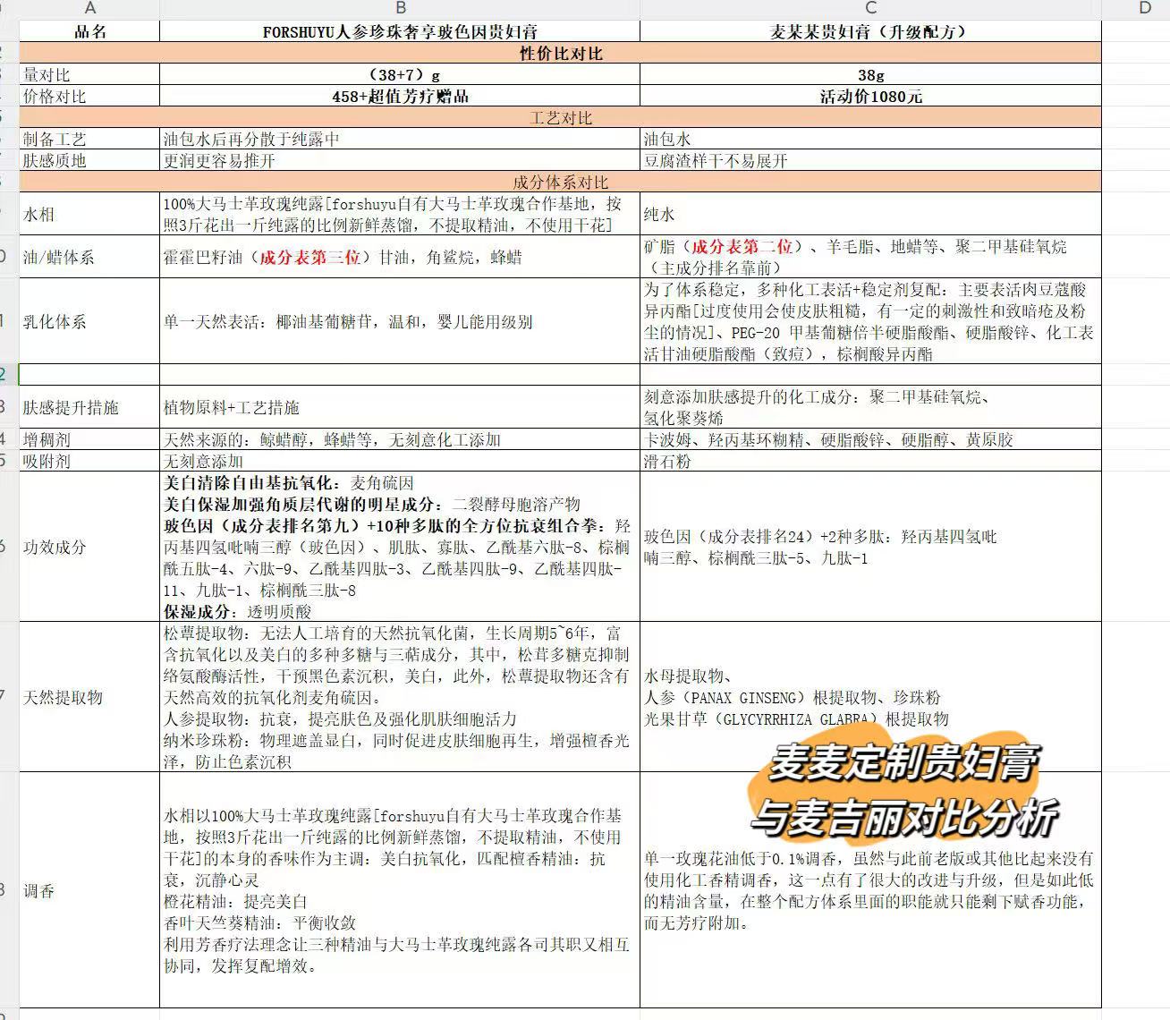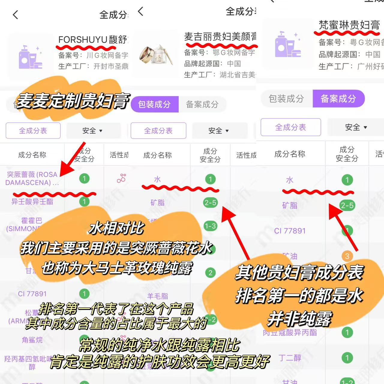 麦麦定制的贵妇膏,我们做的是无水配方,与市面上其他大牌常规日化线的贵妇膏使用方法及使用目的一样,都是为了遮瑕和美白,但是我们在成分和设计理念上又和它们有着很大的区别: