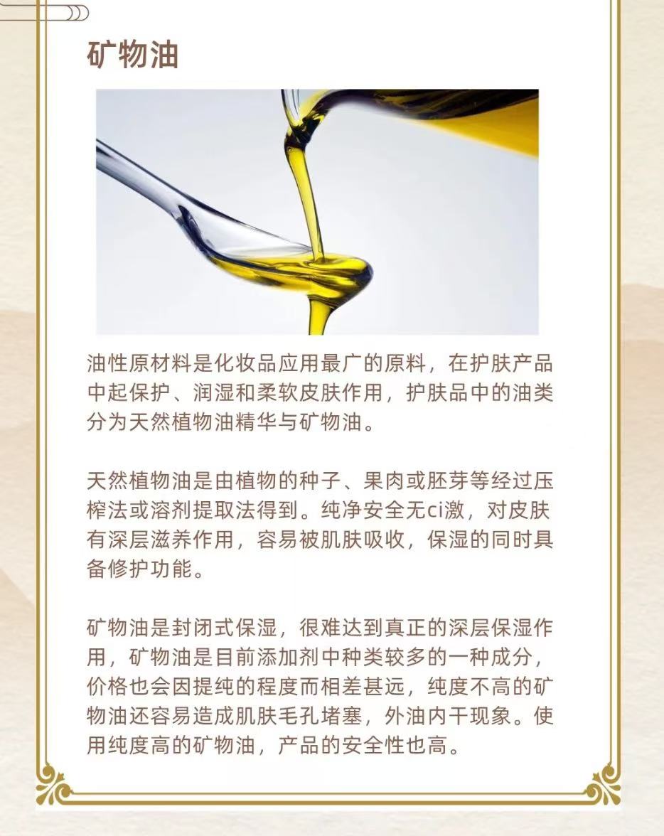 而矿物油矿物脂,除了能给品牌降低成本,给肌肤带来表现的呈现,但是我们也要关注它背后会给我们皮肤带来的隐患,尽量选择高品质的,或者植物精油...