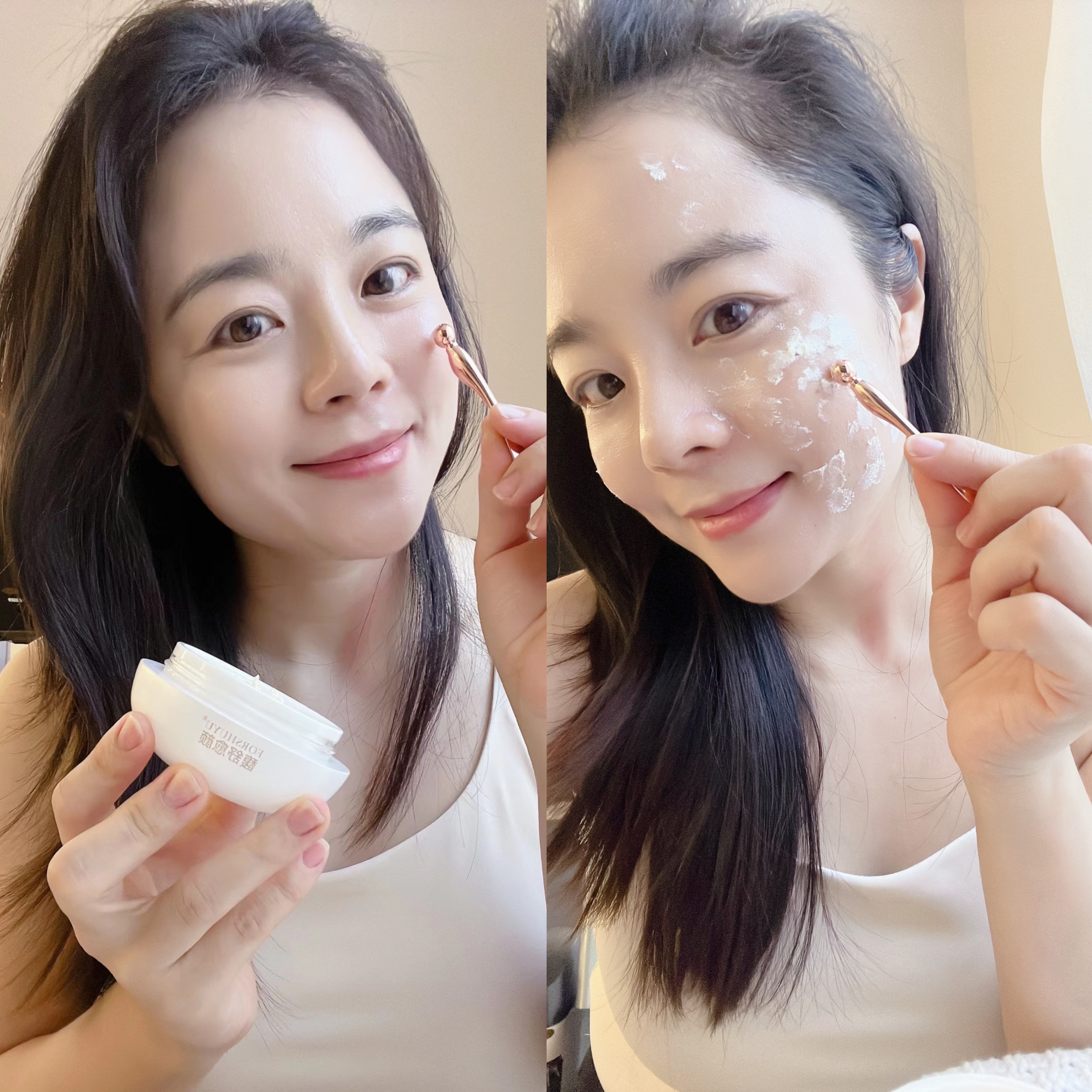 因为我们唐老师研发的美颜霜和粉底液的使用肤感已经特别好了,所以一开始我只是出于礼貌试试这个贵妇膏,但却没想到这么好~~