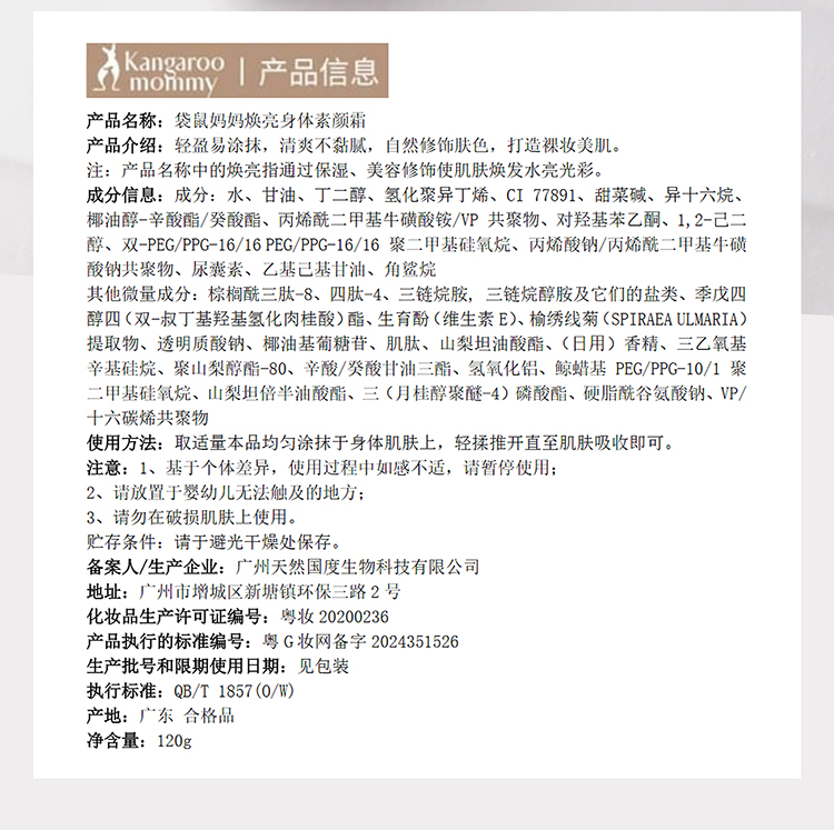 【身体素颜霜】自然修饰肤色 打造裸妆美肌 身体素颜霜120g