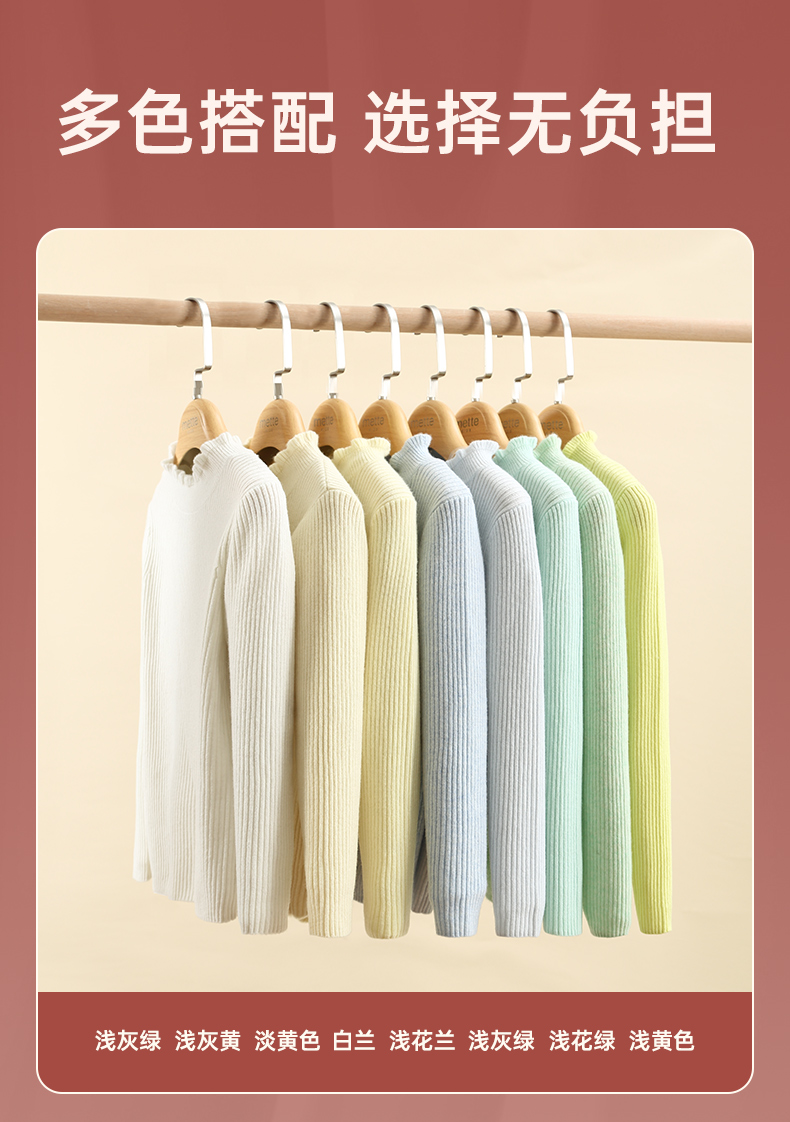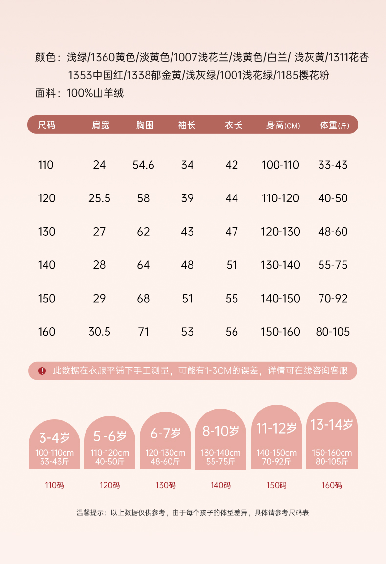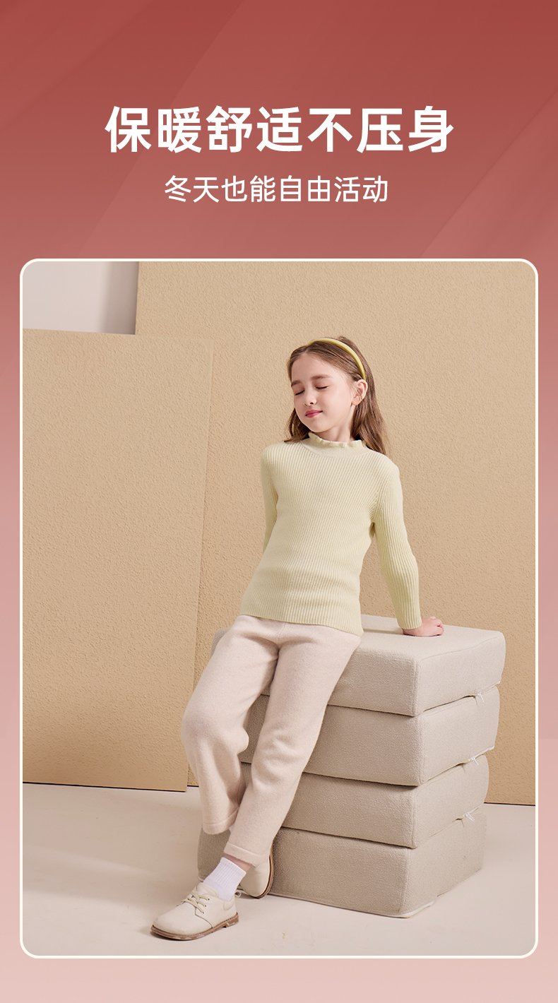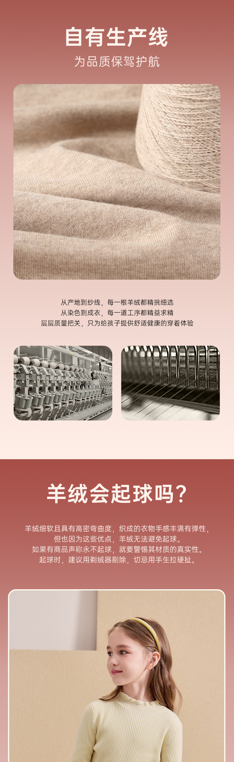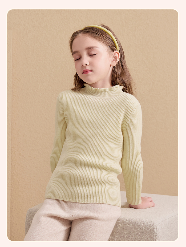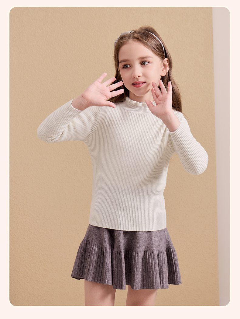 儿童100%羊绒衫女童毛衣粉色半高领秋冬花边领中大童打底衫针织衫