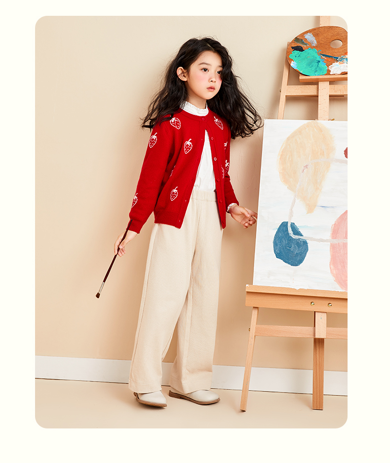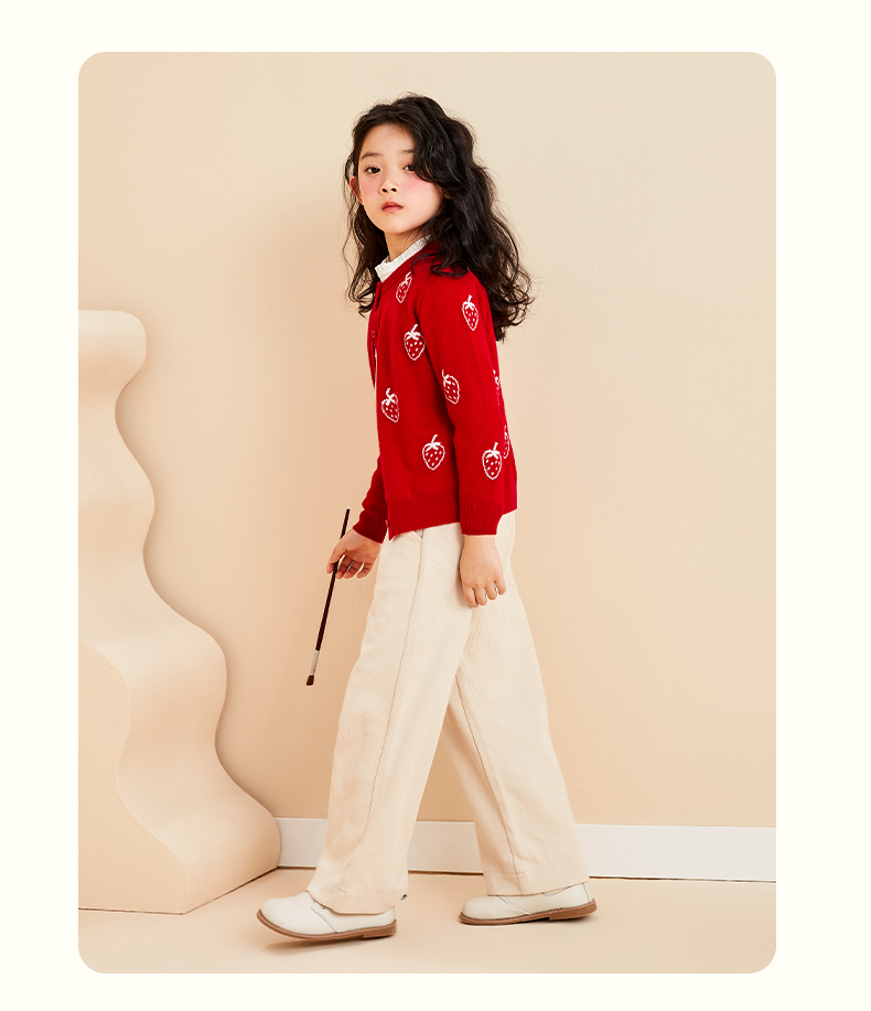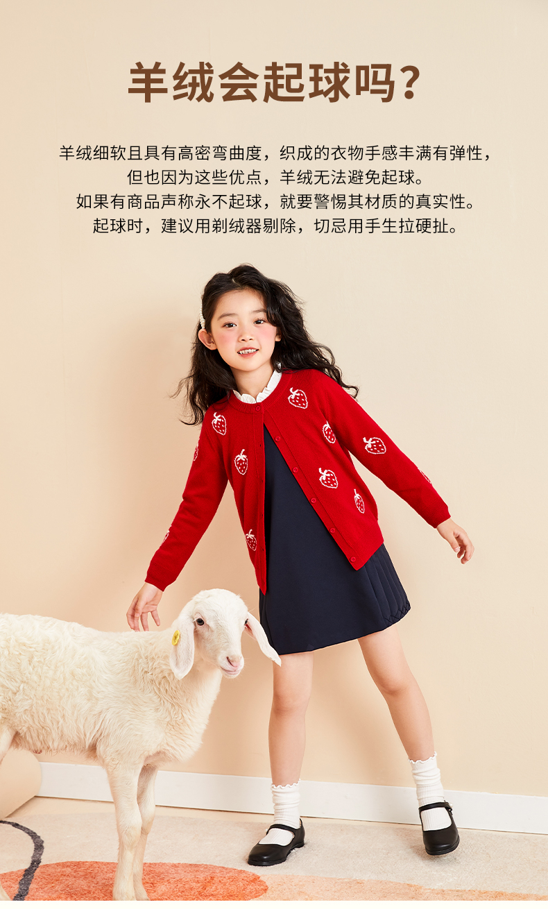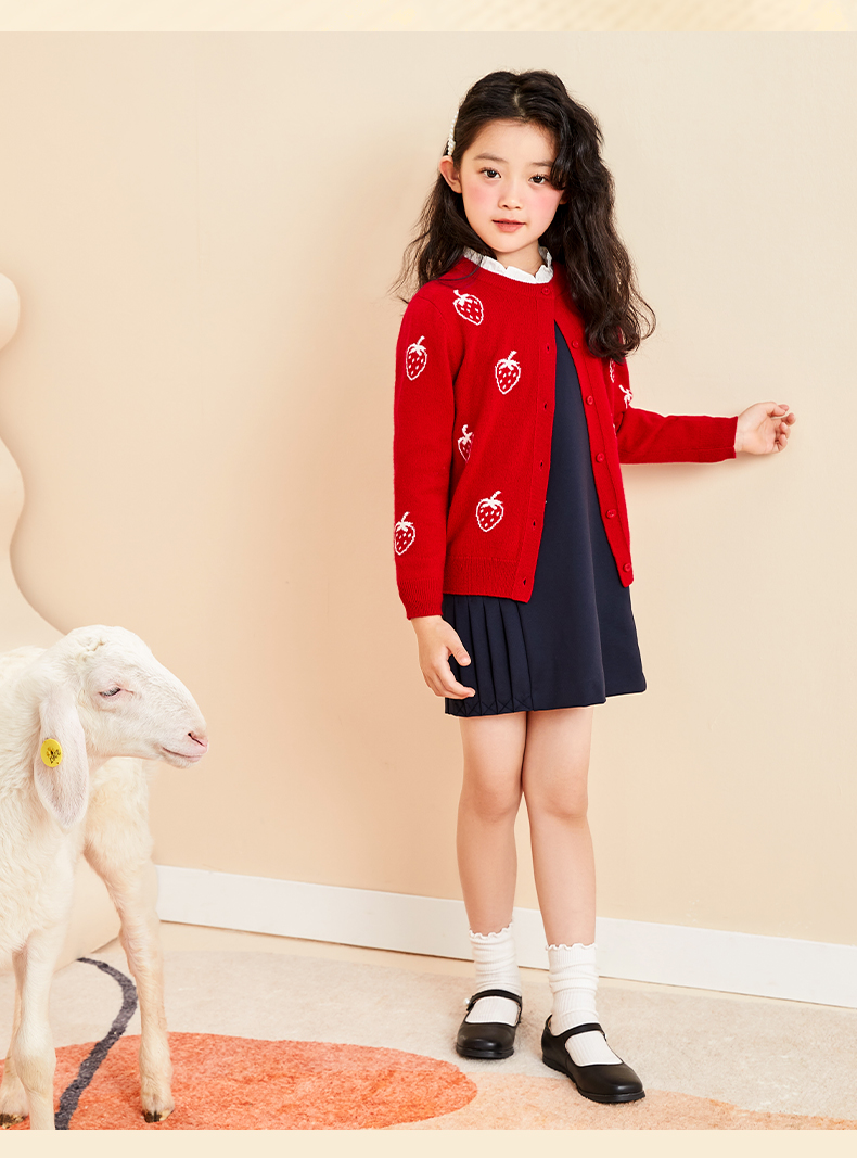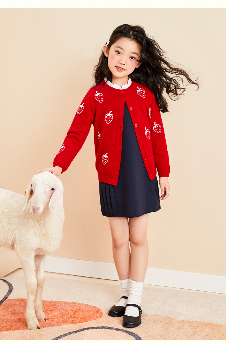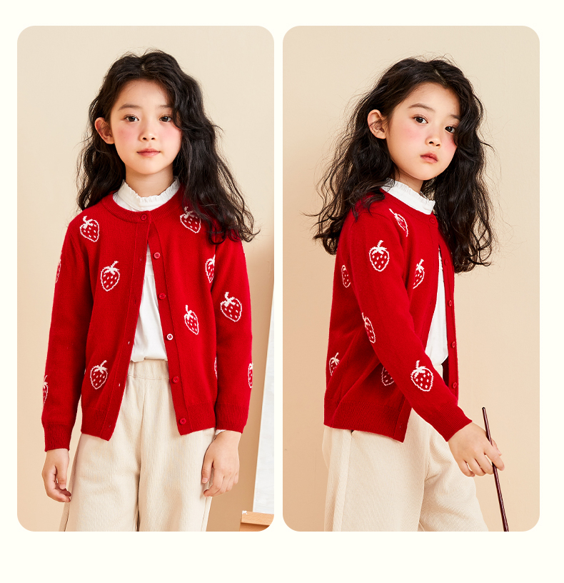 mettekids儿童羊绒衫春秋轻薄款打底针织衫草莓大童毛衣女童开衫