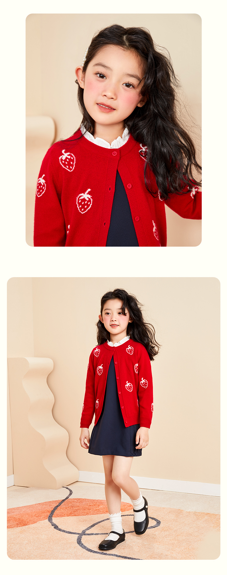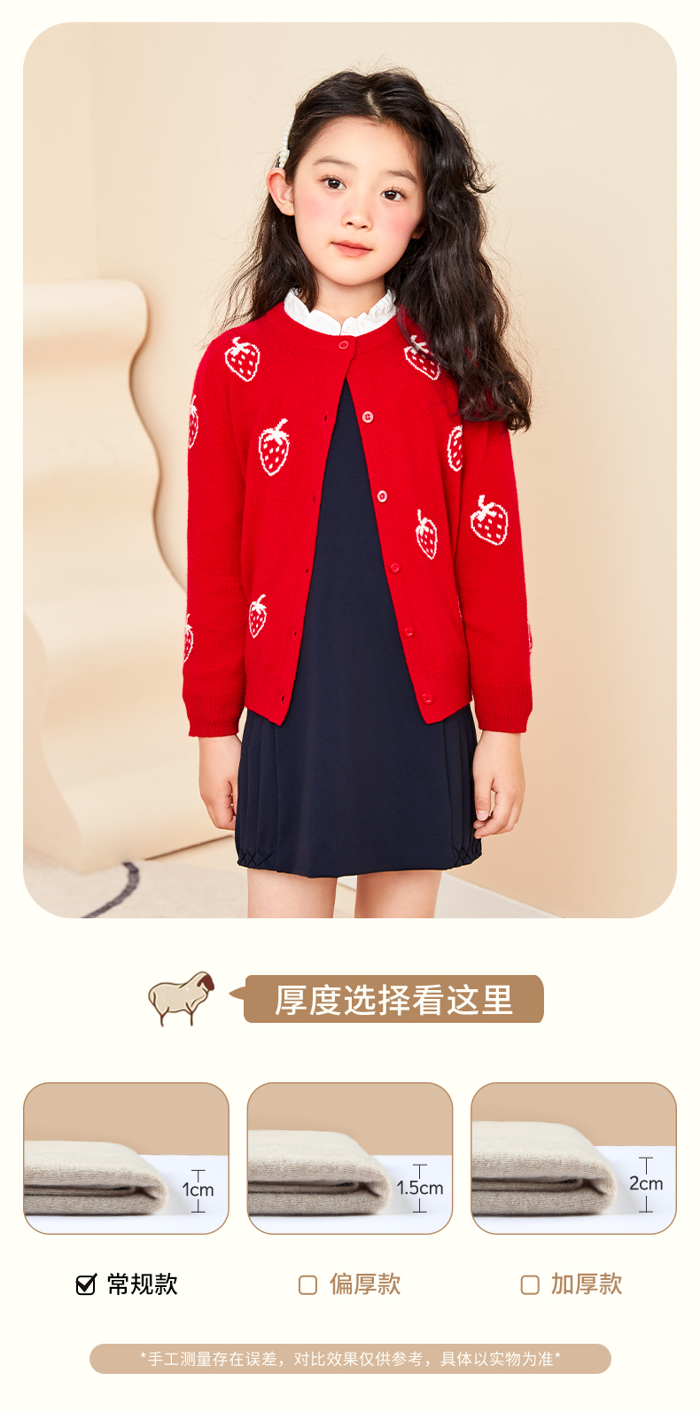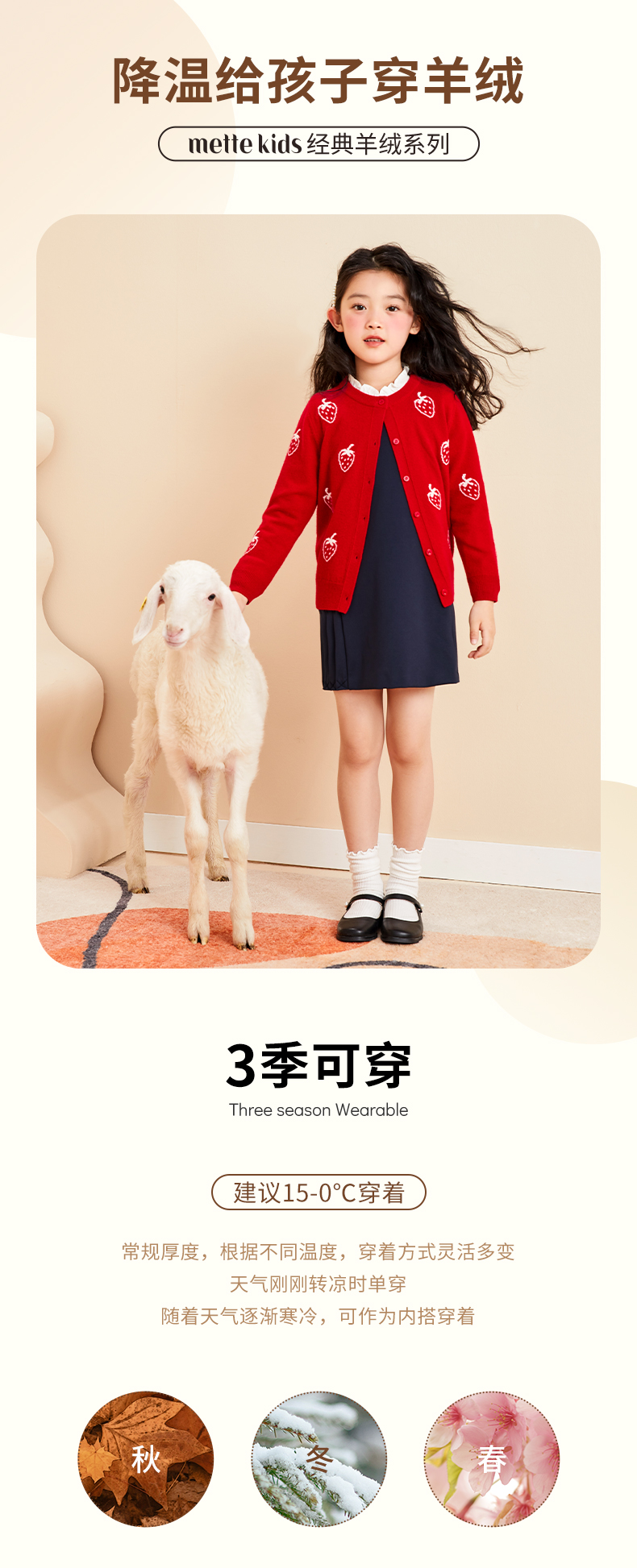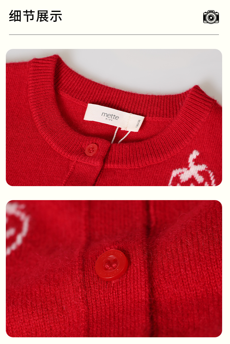 mettekids儿童羊绒衫春秋轻薄款打底针织衫草莓大童毛衣女童开衫