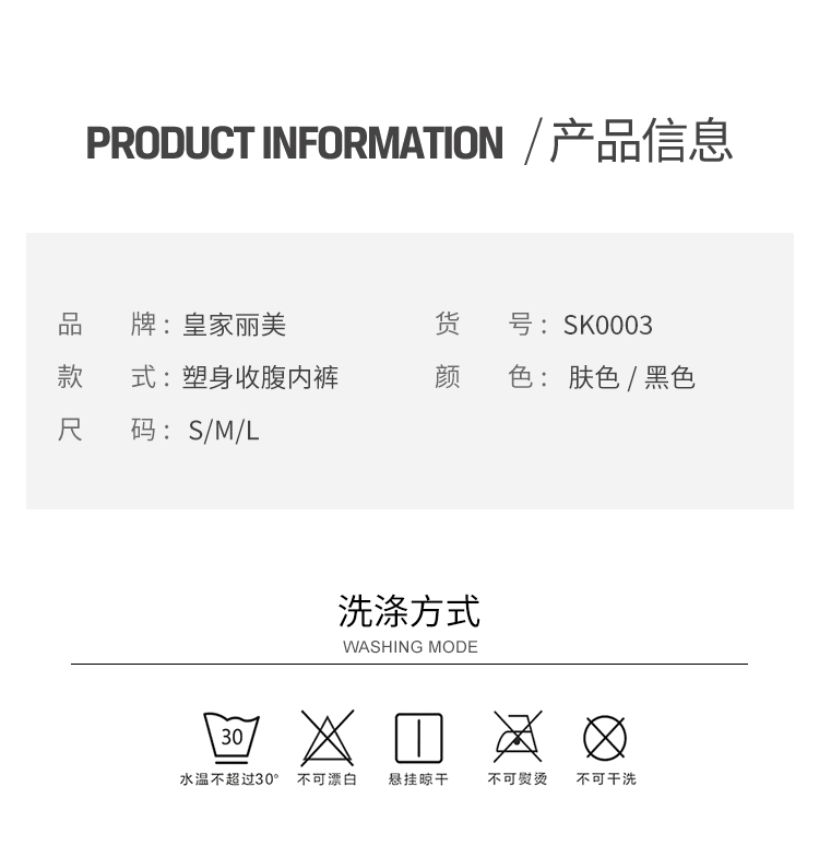 【45元5条,下单拍5!】皇家丽美收腹提臀塑身内裤SK0003