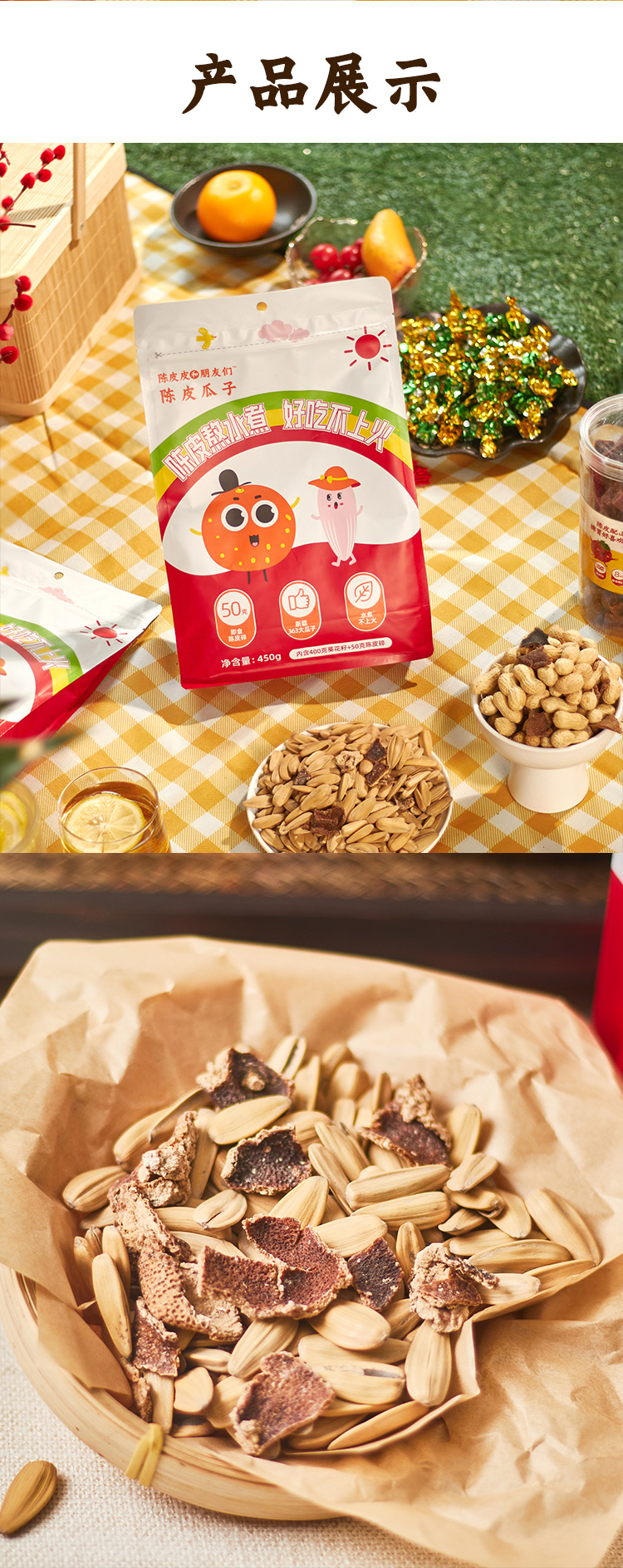 精选新疆葵花籽 脱皮瓜子不脏手 含50克即食陈皮碎 450克/包*2包