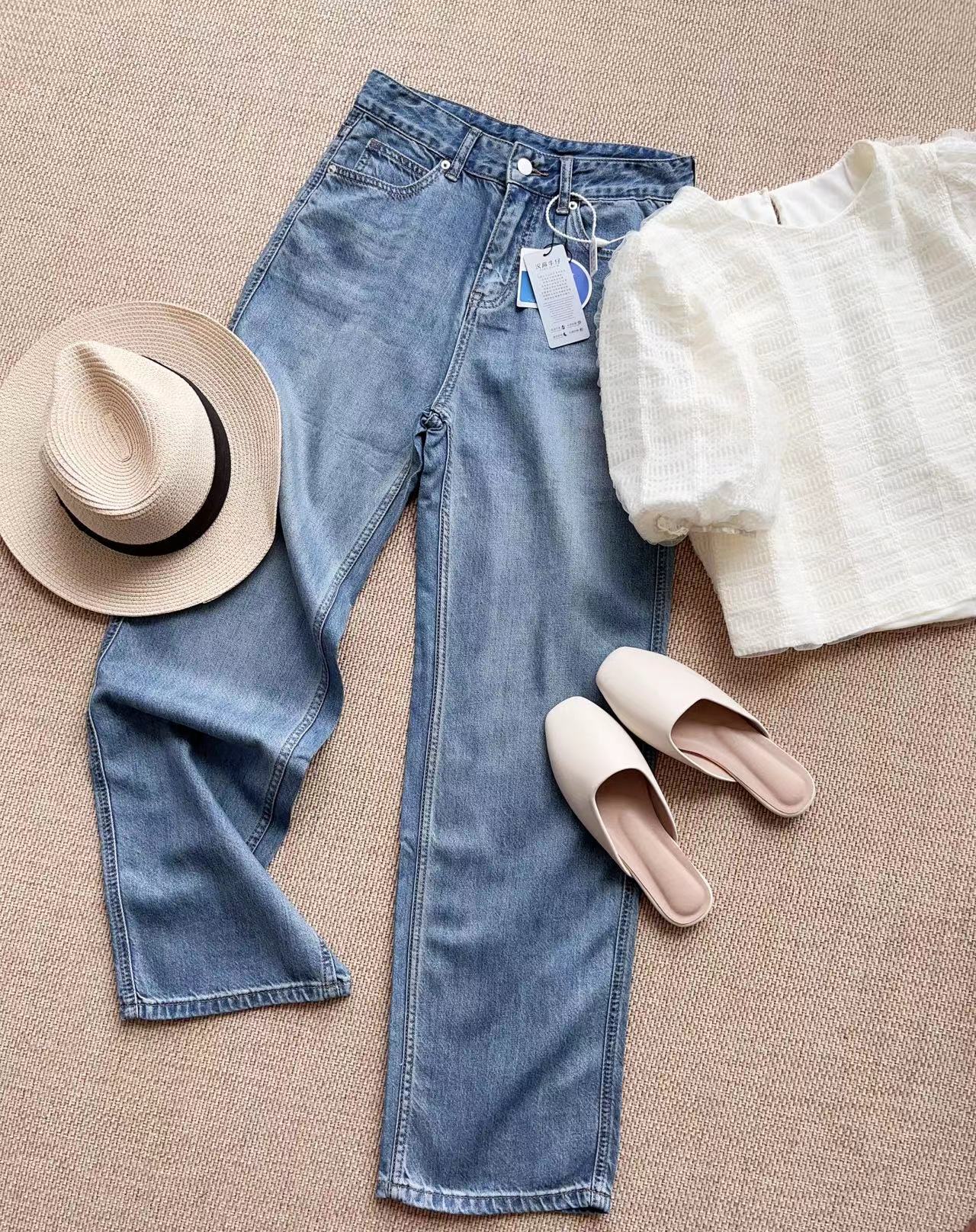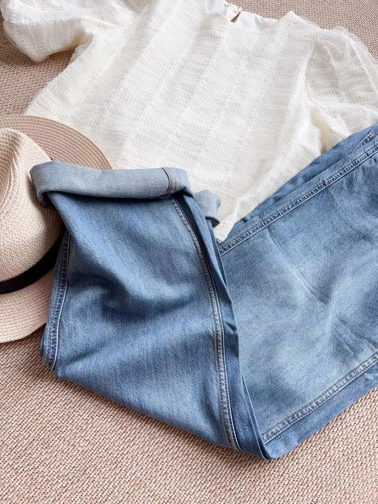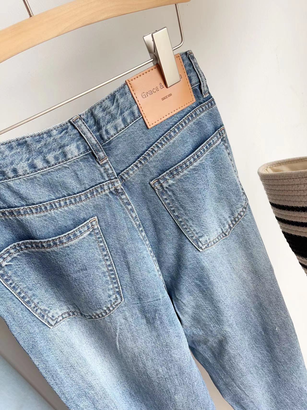 老米优品/bi须夸一夸的汉麻天丝牛仔裤!《宝藏款~~夏日降温拖地牛仔裤》直筒版型巨显高!复古磨白水洗蓝~~YYDS !K230731A