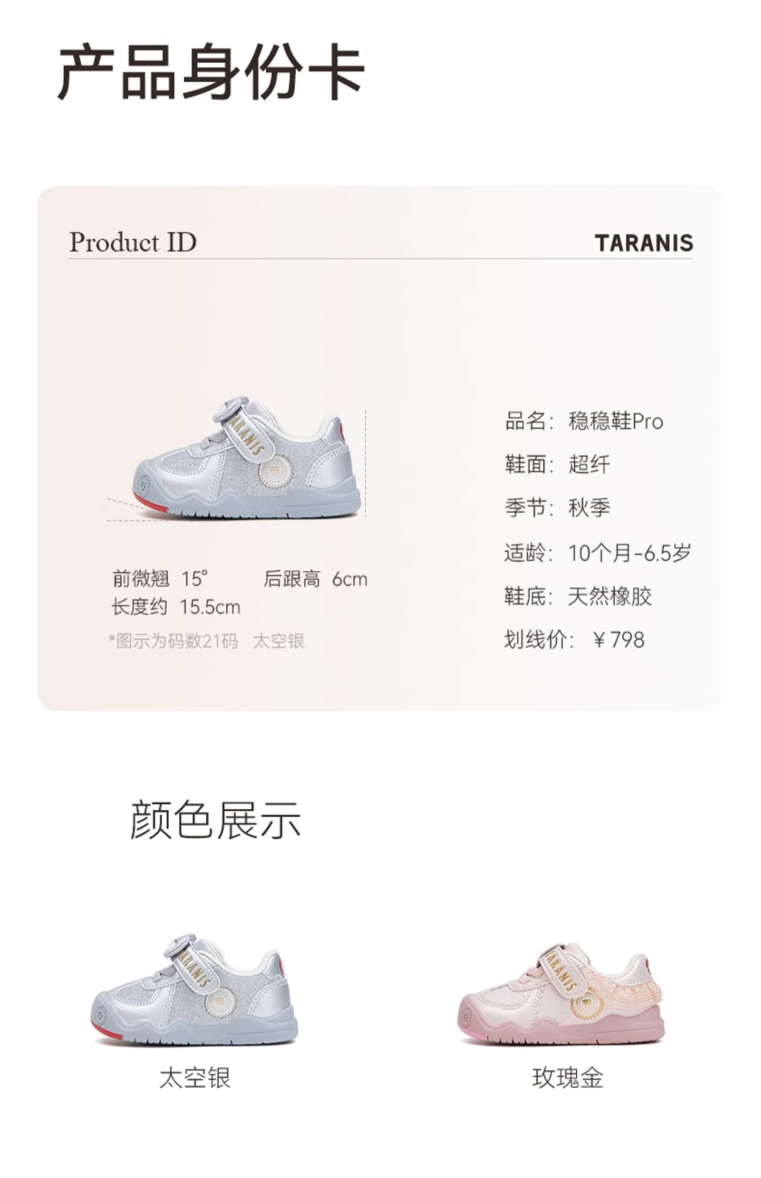 泰兰尼斯稳稳鞋Pro吉娜联名款春秋新款学步鞋礼盒装女童鞋送礼款T26T4C5647